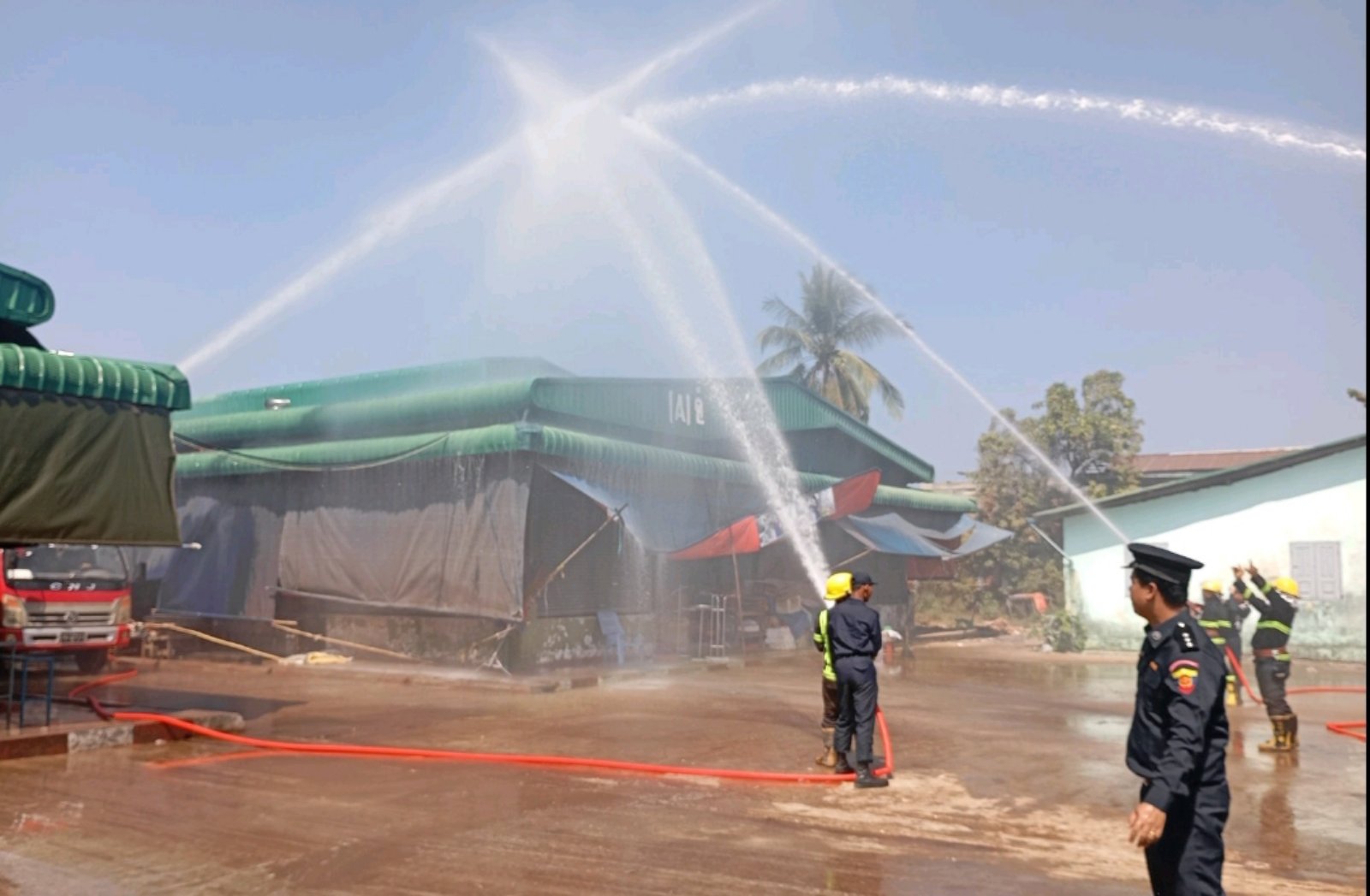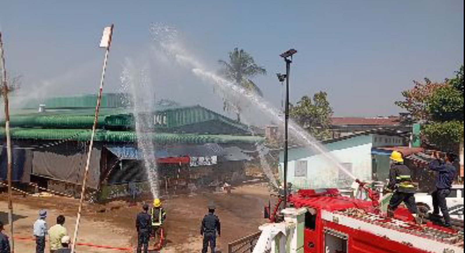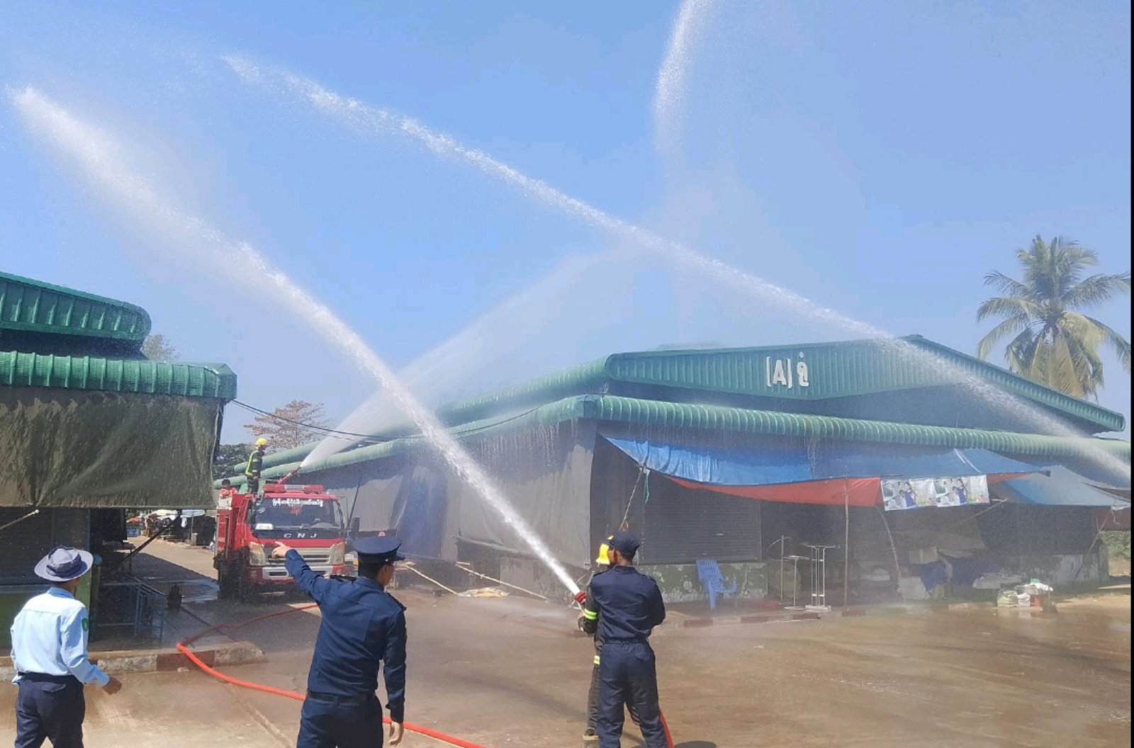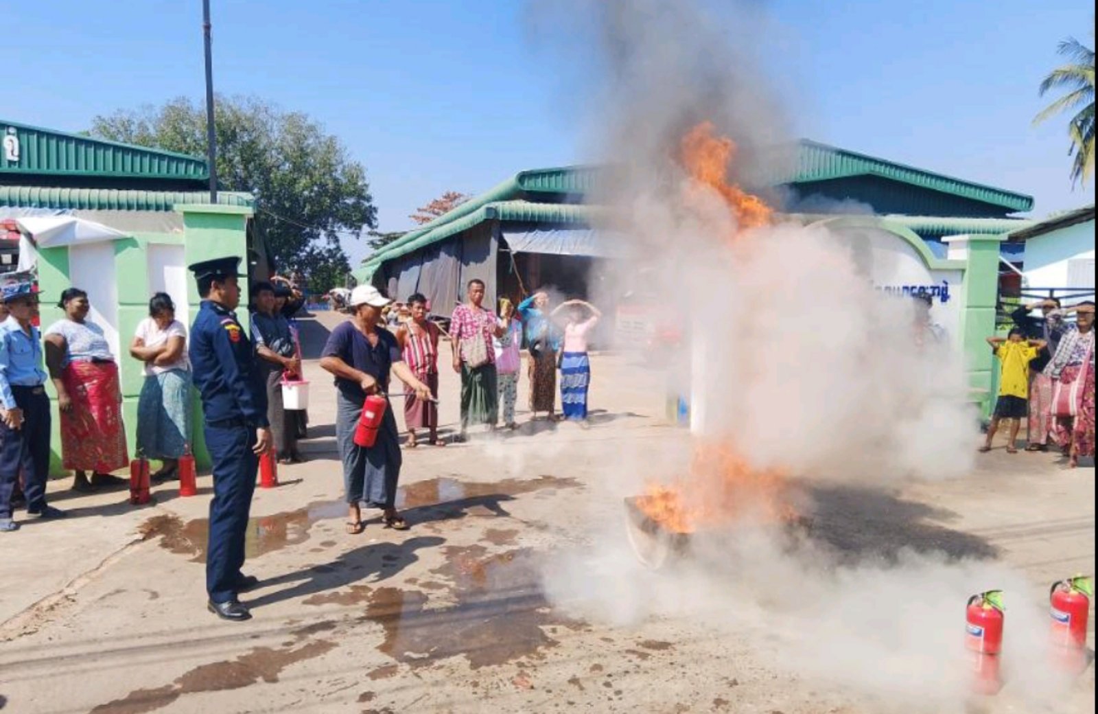 ထို့နောက် ဈေးသူ၊ဈေးသားများအား မီးသတ်ဆေးဘူးအသုံးပြုပုံ၊ မီးငြှိမ်းသတ်နည်းများကို လက်တွေ့ဆောင်ရွက်စေခဲ့ကြပြီးနောက် ဈေးသီးသန့်မီးသတ်တပ်ဖွဲ့ဝင်အင်အားတို့နှင့်အတူ မီးသတ်ရေယာဉ်မှ ရေပိုက်များဖြင့် မီးငြှိမ်းသတ်နည်းတို့ကို ဇာတ်တိုက်လေ့ကျင့်ခဲ့ကြကြောင်း သိရသည်။