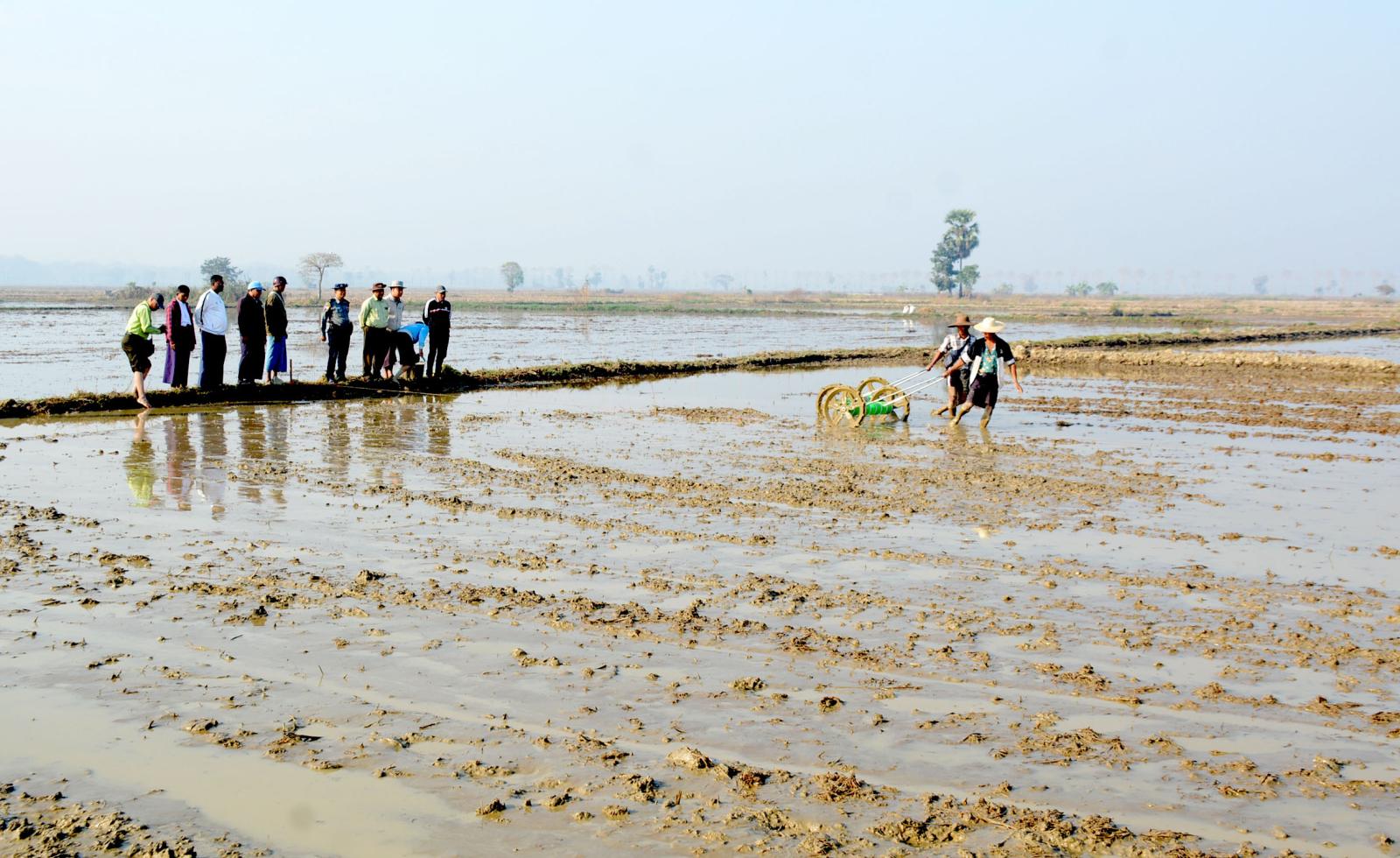 ဧရာဝတီတိုင်းဒေသကြီး၊ မြန်အောင်ခရိုင်၊ ကြံခင်းမြို့နယ်၊ တလိုင်းကွင်းအုပ်စု၊ အောင်မြင်ကိုင်းအနောက်တွင် ယနေ့နက်ပိုင်းက ပခမ်းနွေစပါးအား (Drum Seeder) ဖြင့် စိုက်ပျိုးသရုပ်ပြသခြင်းကို မြို့နယ်စီမံခန့်ခွဲရေးနှင့်အုပ်ချုပ်ရေးကော်မတီဥက္ကဋ္ဌနှင့်အဖွဲ့ဝင်များ၊ မြို့နယ်စိုက်တိုးမြှင့်အဖွဲ့ဝင်များ၊ မြို့နယ်စိုက်ပျိုရေးဦးစီးဌာနမှ ဝန်ထမ်းများ၊ တောင်သူများ တက်ရောက်ကြသည်။