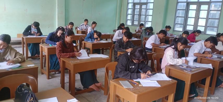 စာမေးပွဲဖြေဆိုရာ၌ ကျောင်းသားကျောင်းသူများ စိတ်ချမ်းမြေ့အဆင်ပြေစွာဖြေဆိုနိုင်ရန် ကျောင်းအုပ်ဆရာကြီး၊ ဆရာမကြီးများနှင့် ဆရာဆရာမများက စနစ်တကျ ကြီးကြပ်ကျင်းပပေးလျက်ရှိကြောင်း သိရသည်။