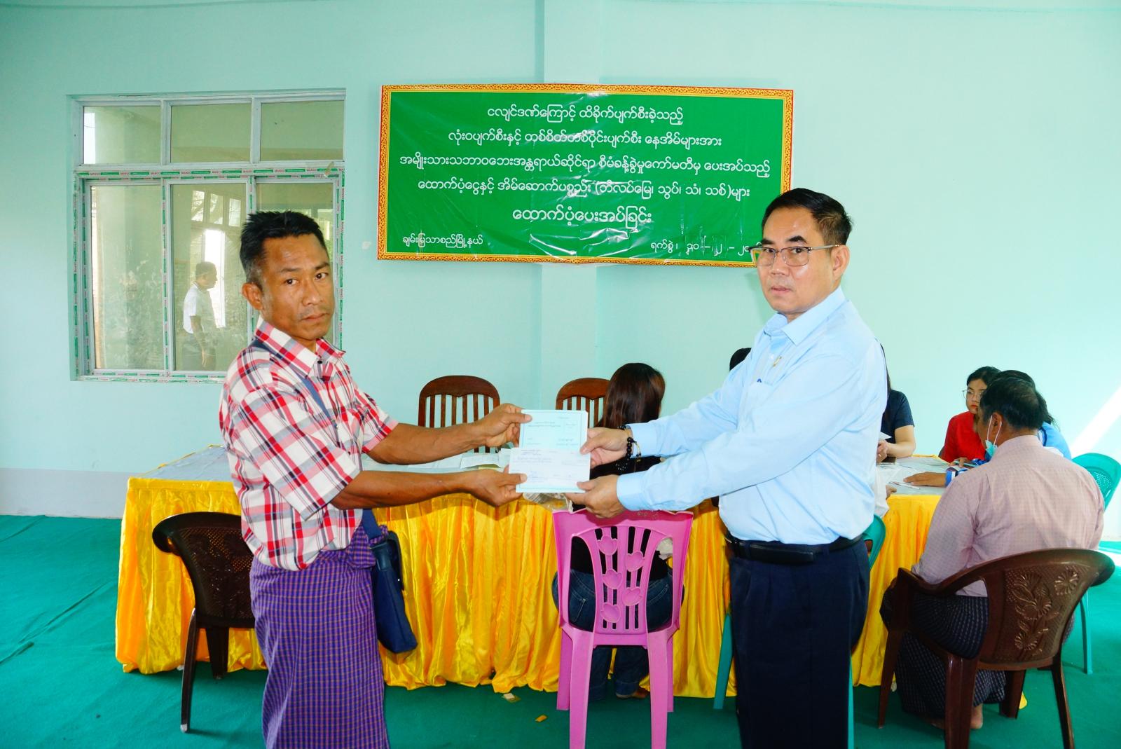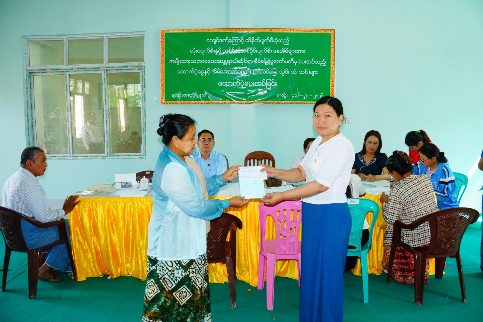 မန္တလေးတိုင်းဒေသကြီး မဟာအောင်မြေခရိုင် ချမ်းမြသာစည်မြို့နယ်၌ အမျိုးသားသဘာဝဘေးအန္တရာယ်ဆိုင်ရာစီမံခန့်ခွဲမှုကော်မတီမှ ငလျင်ဒဏ်ကြောင့်ထိခိုက်ပျက်စီးခဲ့သည့် လုံးဝပျက်စီးနှင့် တစ်စိတ်တစ်ပိုင်းပျက်စီးမှု နေအိမ်များအား ပြုပြင်နိုင်ရန် ငွေနှင့် အိမ်ဆောက်ပစ္စည်း(ဘိလပ်မြေ၊ သွပ်၊ သံ၊ သစ်)များပေးအပ်ခြင်းကို ဖေဖော်ဝါရီ ၁၀ ရက် နံနက် ၉ နာရီခွဲက မြို့နယ်အထွေထွေအုပ်ချုပ်ရေးဦးစီးဌာန အစည်းအဝေးခန်းမတွင် ကျင်းပသည်။