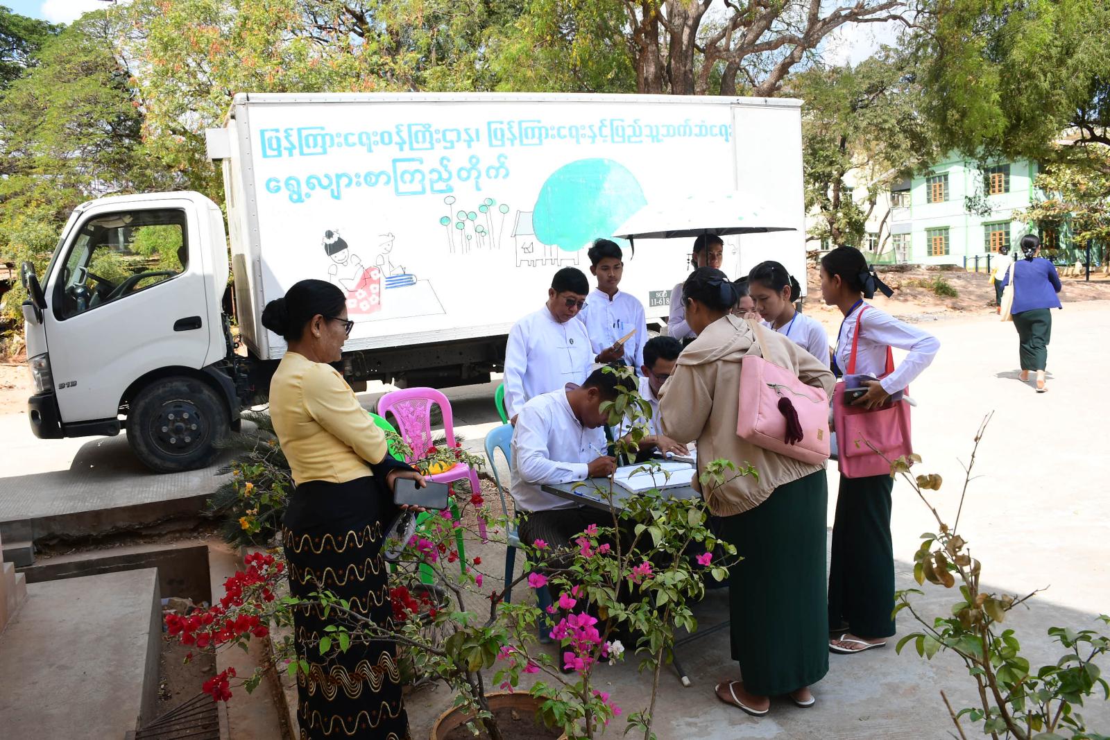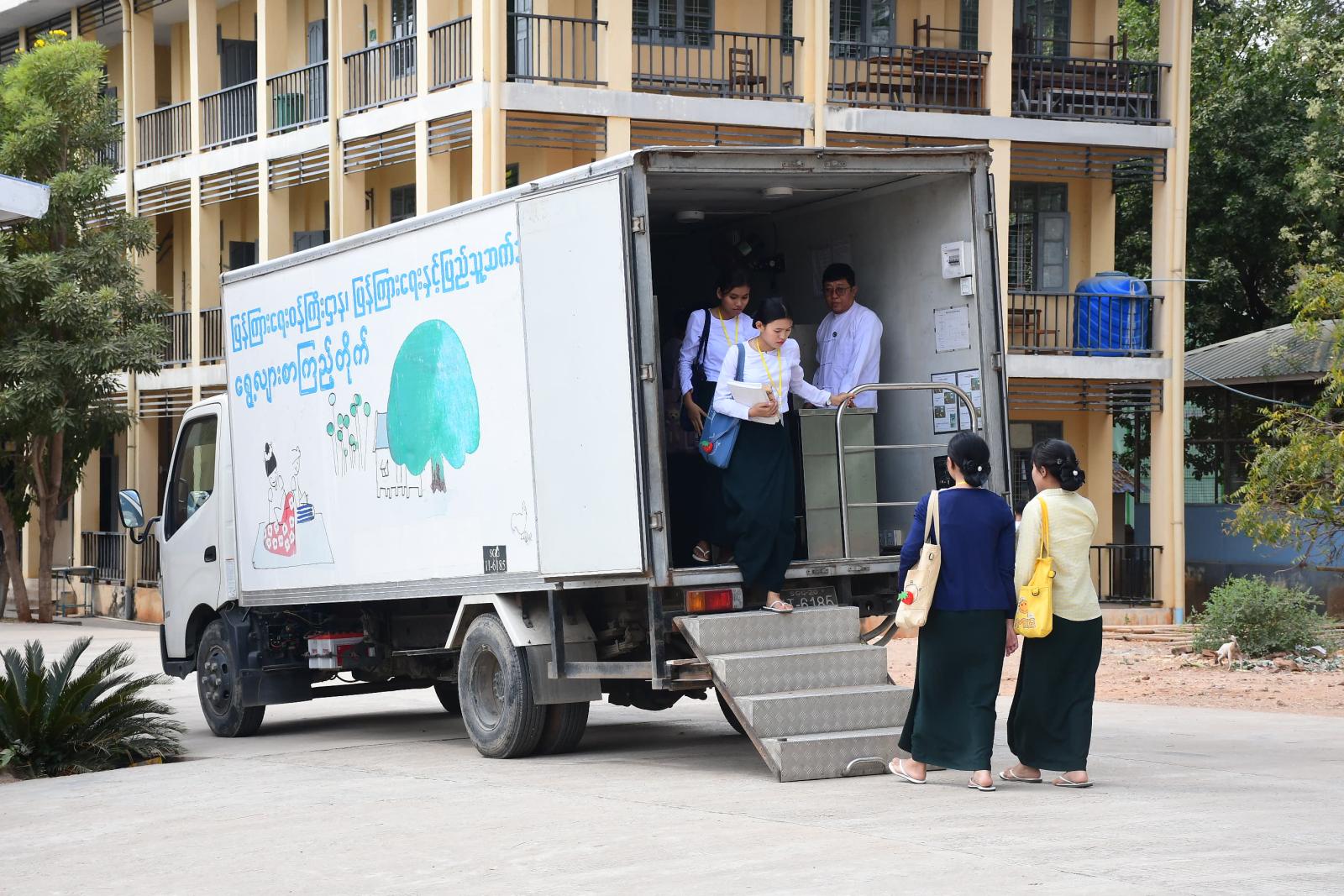 မန္တလေးတိုင်းဒေသကြီး မိတ္ထီလာမြို့ မိတ္ထီလာပညာရေးဒီဂရီကောလိပ်၌ သင်တန်းသား၊ သင်တန်းသူများကို ရွေ့လျားစာကြည့်တိုက်ယာဉ်ဖြင့် စာအုပ်စာစောင်များငှားရမ်းပေးခြင်းကို ယမန်နေ့က ခရိုင်ပြန်ကြားရေးနှင့်ပြည်သူ့ဆက်ဆံဦးစီးဌာနမှ တာဝန်ရှိသူနှင့် ဝန်ထမ်းများက ဆောင်ရွက်ခဲ့ကြောင်းသိရသည်။