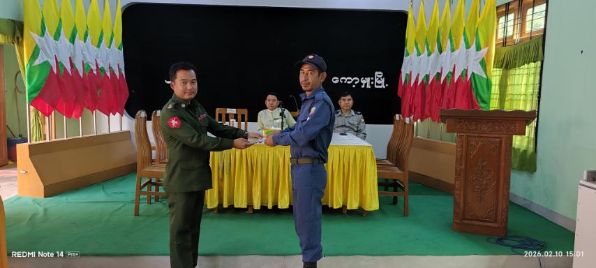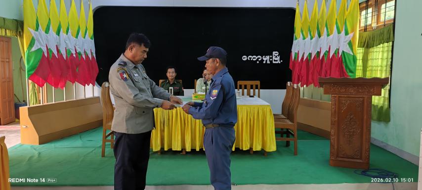 ရန်ကုန်တိုင်းဒေသကြီး၊ တွံတေးခရိုင် ကော့မှူးမြို့နယ်အတွင်းရှိ ပြည်သူ့လုံခြုံရေးနှင့် အကြမ်းဖက်နှိမ်နင်းရေးအဖွဲ့ဝင်များအား ၂/၂၀၂၆ လအတွက် နေ့တွက်စရိတ်နှင့် ရိက္ခာစိုငွေများ ပေးအပ်ပွဲကို အခမ်းအနားကို ယမန်နေ့ ညနေပိုင်းက တောင်ပိုင်းရပ်ကွက် မြို့နယ်အထွေထွေအုပ်ချုပ်ရေးဦးစီးဌာန အစည်းအဝေးခန်းမ၌ ကျင်းပခဲ့ကြောင်း သိရသည်။