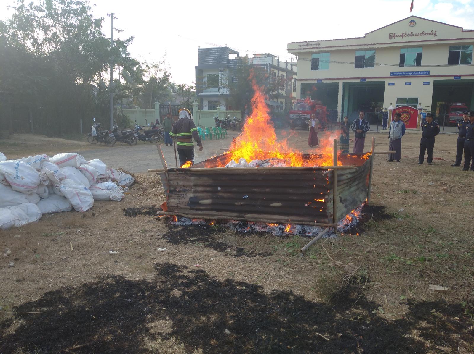 မန္တလေးတိုင်းဒေသကြီး၊ တံတားဦးမြို့နယ်တွင် ၂၀၂၀ ပြည့်နှစ်၊ ပါတီစုံဒီမိုကရေစီအထွေထွေရွေးကောက်ပွဲတွင် အသုံးပြုခဲ့သည့် ဆန္ဒမဲလက်မှတ်များနှင့် မလိုအပ်သောစာရွက်စာတမ်းများ၊ စနစ်တကျမီးရှို့ဖျက်ဆီးခြင်းကို ယနေ့နံနက် ၇ နာရီက တံတားဦးမြို့ အမှတ်(၃) ရပ်ကွက်၊ မကျည်းတောရပ် မီးသတ်ရုံးရှေ့၌ ဆောင်ရွက်ကြသည်။