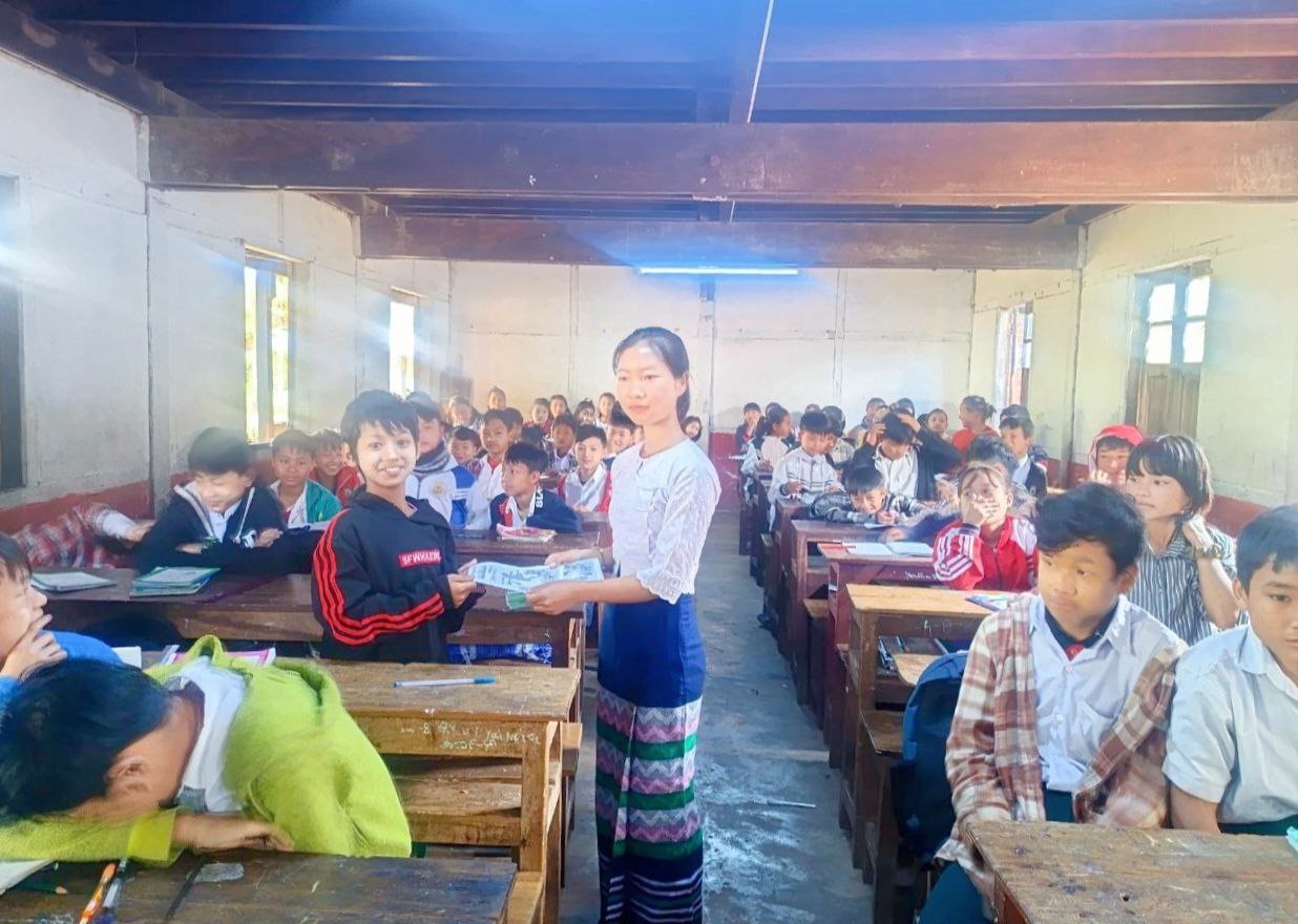 ကရင်ပြည်နယ်၊ သံတောင်ကြီးမြို့နယ်၊ လိပ်သိုမြို့ပြန်ကြားရေးနှင့်ပြည်သူ့ဆက်ဆံရေးဦးစီးဌာနမှ ၂၀၂၆ ခုနှစ်၊ ဖေဖော်ဝါရီလ ၁၂ ရက်နေ့တွင်ကျရောက်မည့် (၇၉) နှစ်မြောက် ပြည်ထောင်စုနေ့အထိမ်းအမှတ် သတင်းစကားလက်ကမ်းစာစောင်များကို ယမန်နေ့နံနက် ၉ နာရီက လိပ်သိုမြို့ အခြေခံပညာအထက်တန်းကျောင်းတွင် အခမဲ့ ဖြန့်ဝေပေးခဲ့သည်။