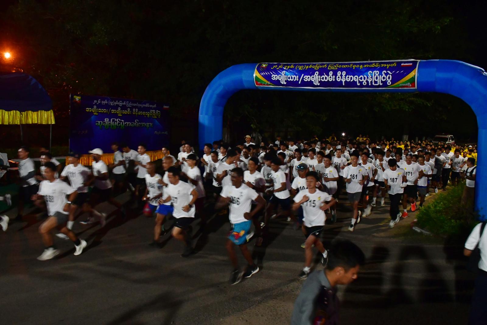 ဦးစွာ ကရင်ပြည်နယ်အစိုးရအဖွဲ့ လူမှုရေးရာဝန်ကြီးဦးစောထွန်းအောင်က (၇၉)နှစ်မြောက် ပြည်ထောင်စုနေ့ အထိမ်းအမှတ် အမျိုးသား/အမျိုးသမီး မီနီမာရသွန်ပြိုင်ပွဲကို သေနတ်ပစ်ဖောက်တာလွှတ်ပေးခဲ့ရာ အမျိုးသမီးအပြေး ပြိုင်ပွဲတွင် ဘားအံမြို့အားပတ်၍ ၁၀ ဒဿမ ၄၅ ကီလိုမီတာ၊ အမျိုးသားအပြေးပြိုင်ပွဲတွင် ၁၆ ဒဿမ ၉၃ ကီလိုမီတာ အကွာအဝေးတွင် ပြန်လည်ပန်းဝင်ခဲ့ကြသည်။