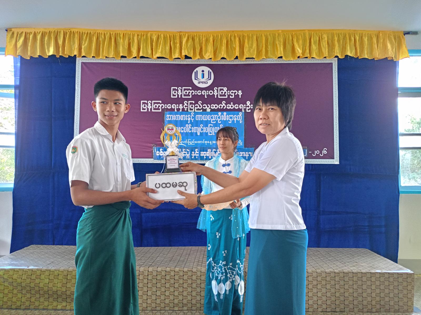 အဆိုပါပြိုင်ပွဲတွင် ကျောင်းသား/ကျောင်းသူ ၂၀ တို့ပါဝင်ယှဉ်ပြိုင်ခဲ့ကြပြီး ယနေ့ညနေ ၃ နာရီတွင် ဗိုလ်လုပွဲနှင့် ဆုချီးမြှင့်ပွဲအခမ်းအနားကိုကျင်းပရာ ခရိုင်အား/ကာဦးစီးမှူး ဒေါ်ထက်ထက်ဝင့်၊ ခရိုင်ပြန်/ဆက်ဦးစီးမှူး ဒေါ်သိမ့်သိမ့်မျိုးနှင့် တာဝန်ရှိသူများက ဆုရရှိသူများအား ဆုများ ပေးအပ်ချီးမြှင့်ခဲ့ကြကြောင်းသိရသည်။