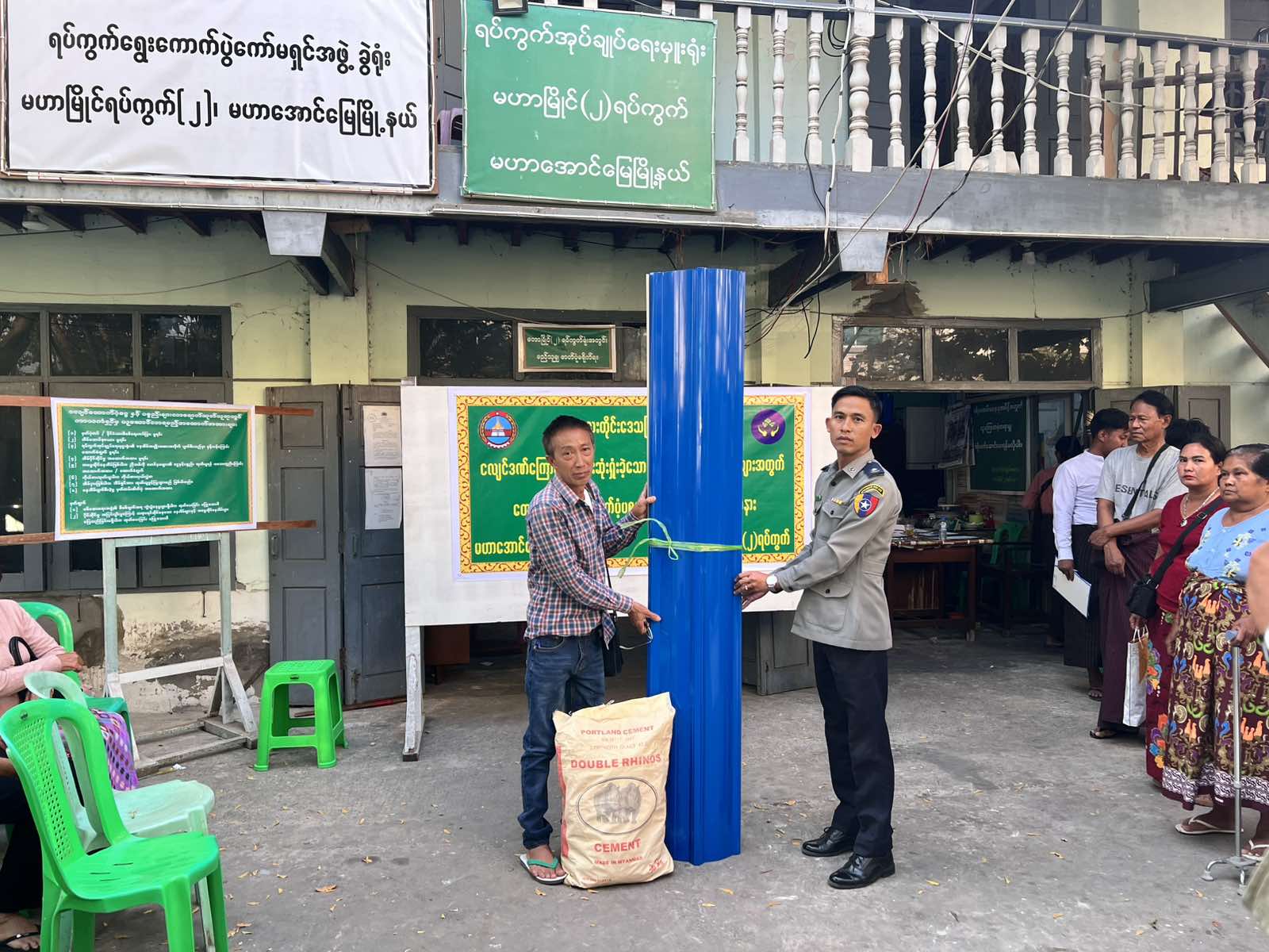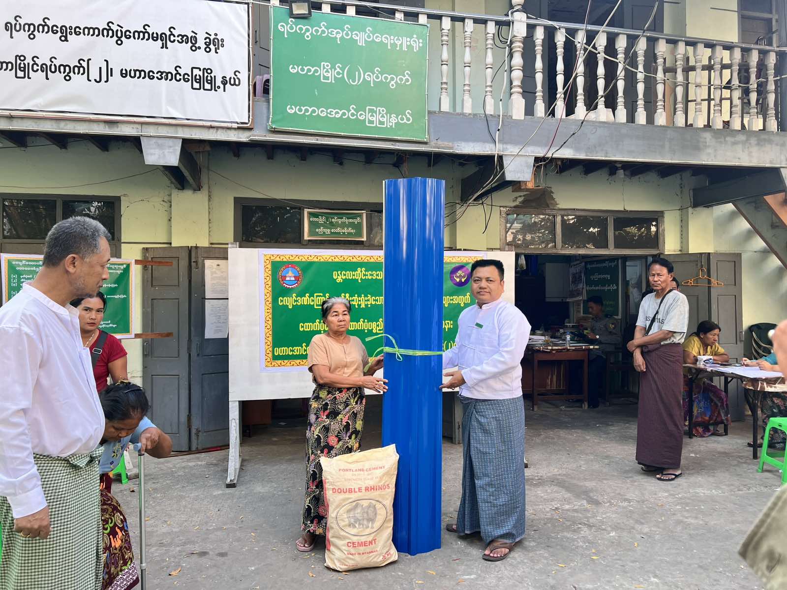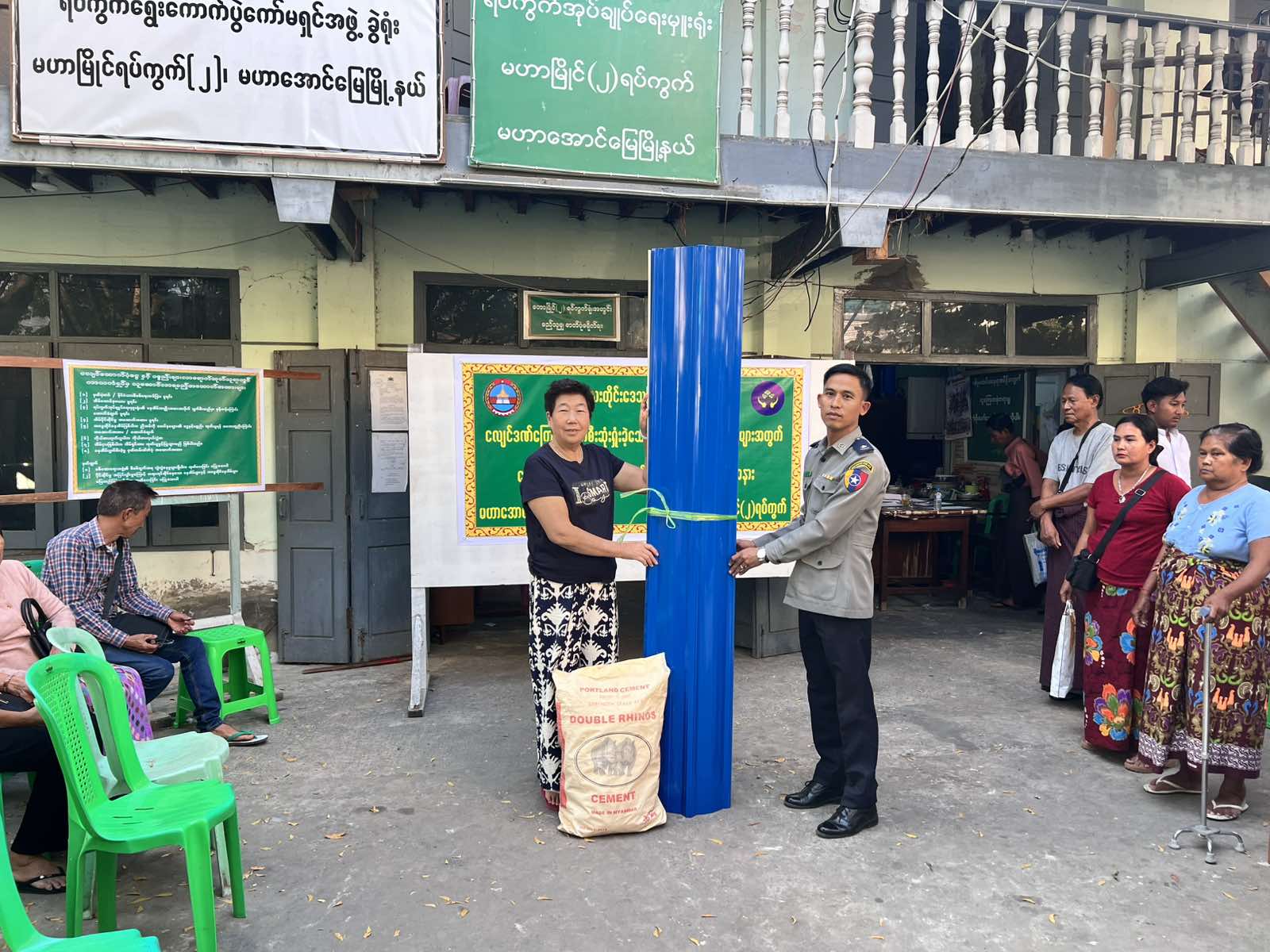 မန္တလေးတိုင်းဒေသကြီး၊ မဟာအောင်မြေ မြို့နယ်၊မဟာမြိုင်ရပ်ကွက်(၂)၌ ယနေ့ နံနက် ၁၀ နာရီက နိုင်ငံတော်မှ ထောက်ပံ့ပေးအပ်သည့် မန္တလေးငလျင်ဒဏ်ကြောင့်ပျက်စီးဆုံးရှုံးခဲ့သော နေအိမ်အဆောက်အဦးများအတွက်(၁၈)ရပ်ကွက်အတွင်းရှိ ကျန်ရှိနေသေးသော ပြည်သူများအား ထောက်ပံ့ငွေနှင့်ပစ္စည်းများပေးအပ်ပွဲကို မြို့နယ်စီမံခန့်ခွဲရေးနှင့်အုပ်ချုပ်ရေးကော်မတီမှကြီးမှူး၍ မဟာမြိုင်ရပ်ကွက်(၂)အုပ်ချုပ်ရေးမှူးရုံး၌ ထောက်ပံ့ပေးအပ်သည်။