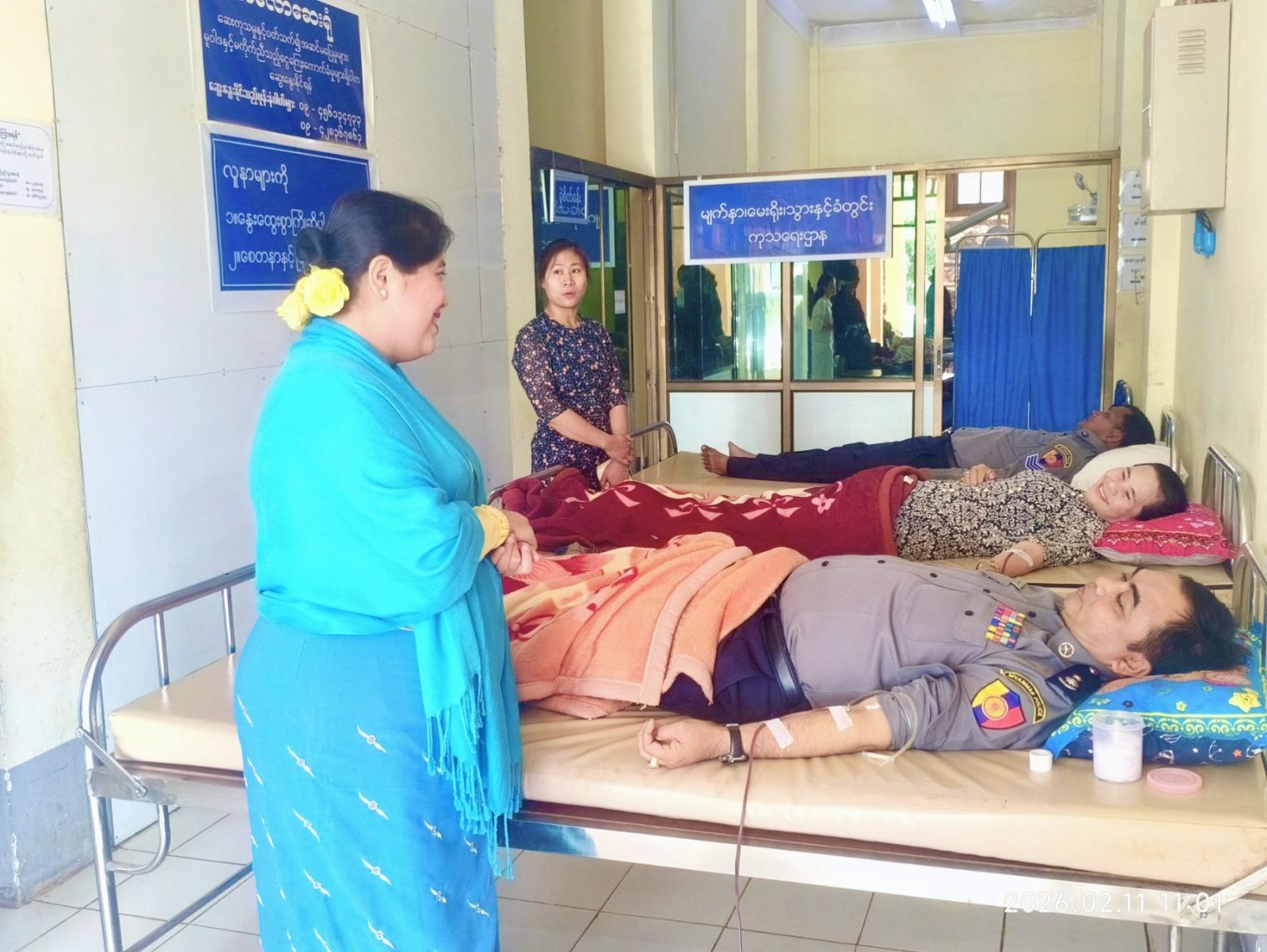 ရှမ်းပြည်နယ်တောင်ပိုင်း၊ ကလောခရိုင် ပြည်သူ့ဆေးရုံ၌ ၂၀၂၆ ခုနှစ်၊ ဖေဖော်ဝါရီလ (၁၂) ရက်နေ့တွင် ကျရောက်မည့် (၇၉)နှစ်မြောက် ပြည်ထောင်စုနေ့ကို ဂုဏ်ပြုသောအားဖြင့် ဖေဖော်ဝါရီလ ၁၁ ရက် နံနက် ၉ နာရီက ကလောခရိုင် ရဲတပ်ဖွဲ့မှူးရုံးမှတပ်ဖွဲ့ဝင်များက ပြည်သူ့ဆေးရုံအတွက် စုပေါင်း၍ သွေးလှူဒါန်းခဲ့ကြောင်း သိရသည်။