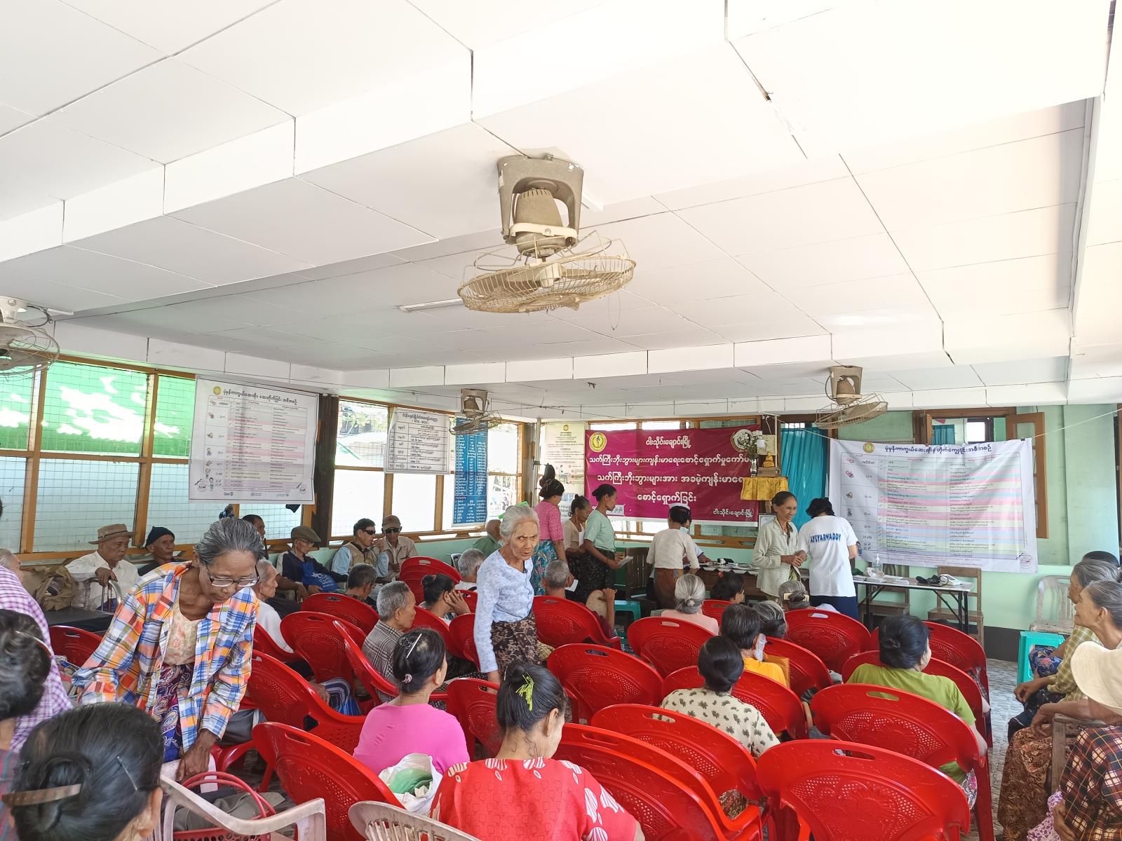 ထိုသို့ဆောင်ရွက်ရာတွင် မြို့အုပ်ချုပ်ရေးမှူး ဦးရဲထက်အောင်၏ ဦးဆောင်မှုဖြင့် မြို့ပြည်သူ့ကျန်းမာရေးဦးစီးဌာနမှ မြို့ဆရာဝန် ဒေါက်တာဦးသန့်ဇော်ထွန်းနှင့် ကျန်းမာရေး ဝန်ထမ်းများက အဘိုးအဘွားများအား သွေးပေါင်ချိန်ခြင်း၊ ဆေးပေးခြင်း၊ ဆေးထိုးခြင်းစသည့် လုပ်ငန်းများ ဆောင်ရွက်ခဲ့ကြပြီး မြို့မိခင်နှင့် ကလေးစောင့်ရှောက်ရေးအသင်းနှင့် အမျိုးသမီးရေးရာအဖွဲ့ဥက္ကဋ္ဌ ဒေါ်နှင်းဝေလွင်နှင့် အလှူရှင်များမှ အလှူငွေများနှင့် အာဟာရများ ကျွေးမွေးလှူဒါန်းခဲ့ကြသည်။