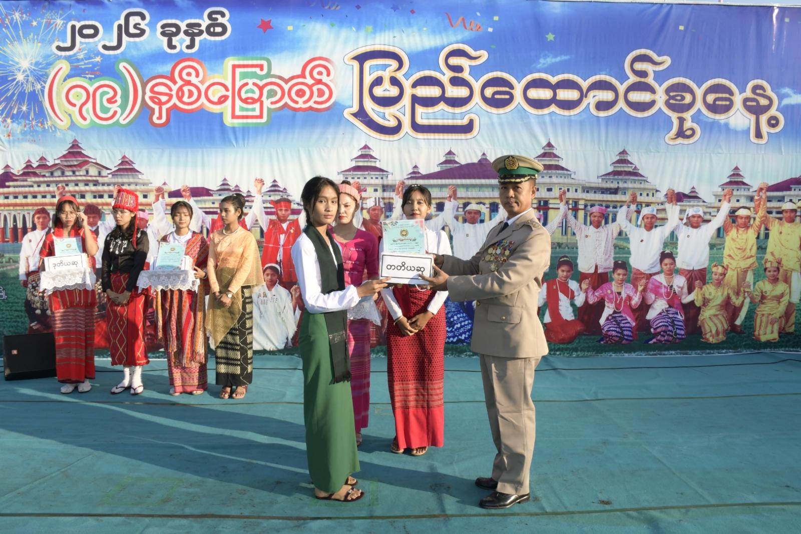 ဦးစွာ (၇၉) နှစ်မြောက် ပြည်ထောင်စုနေ့ အထိမ်းအမှတ် အလံတင်အခမ်းအနားကို တောင်ငူမြို့၊ ခရိုင်အားကစားကွင်း၌ ယနေ့နံနက် (၅:၃၀) နာရီတွင် မြန်မာနိုင်ငံ ရဲတပ်ဖွဲ့ဝင်များမှ အလံတင်ခရာမှုတ်၍ ကျင်းပရာ တောင်ငူခရိုင် စီမံခန့်ခွဲရေးနှင့် အုပ်ချုပ်ရေးကော်မတီဥက္ကဋ္ဌ ဦးစောထွန်းဦးနှင့် အဖွဲ့ဝင်များ၊ မြို့နယ်စီမံခန့်ခွဲရေးနှင့် အုပ်ချုပ်ရေးကော်မတီဥက္ကဋ္ဌ ဦးဉာဏ်လင်းအောင်နှင့် အဖွဲ့ဝင်များ၊ ခရိုင်နှင့် မြို့နယ်အဆင့် ဌာနဆိုင်ရာ တာဝန်ရှိသူများ တက်ရောက်အလေးပြုသည်။ ဆက်လက်၍ သဝဏ်လွှာဖတ်ကြားပွဲကို ခရိုင်အားကစားကွင်း၌ နံနက် (၇)နာရီတွင် ကျင်းပရာ ပြည်ထောင်စုသမ္မတမြန်မာနိုင်ငံတော် ယာယီသမ္မတ၊ နိုင်ငံတော်လုံခြုံရေးနှင့် အေးချမ်းသာယာရေးကော်မရှင်ဥက္ကဋ္ဌ ဗိုလ်ချုပ်မှူးကြီး သတိုးမဟာသရေစည်သူသတိုးသီရိသုဓမ္မ မင်းအောင်လှိုင်ထံမှ ၂၀၂၆ ခုနှစ်၊ (၇၉) နှစ်မြောက် ပြည်ထောင်စုနေ့ အခမ်းအနားသို့ ပေးပို့သည့် သဝဏ်လွှာအား ခရိုင်စီမံခန့်ခွဲရေးနှင့်အုပ်ချုပ်ရေးကော်မတီဥက္ကဋ္ဌ ဦးစောထွန်းဦးက ဖတ်ကြားသည်။ ထို့နောက် ခရိုင်စီမံခန့်ခွဲရေးနှင့် အုပ်ချုပ်ရေးကော်မတီဥက္ကဋ္ဌနှင့် တာဝန်ရှိသူများက (၇၉)နှစ်မြောက် ပြည်ထောင်စုနေ့ အထိမ်းအမှတ် ခရိုင်အဆင့် စာစီစာကုံး၊ ကဗျာ၊ ပန်းချီပြိုင်ပွဲများတွင် ဆုရရှိသူများအား ဆုများ အသီးသီးပေးအပ်ချီးမြှင့်ခဲ့ကြောင်းနှင့် တောင်ငူခရိုင် ပြန်ကြားရေးနှင့်ပြည်သူ့ဆက်ဆံရေးဦးစီးဌာနမှ ဝန်ထမ်းများက (၇၉)နှစ်မြောက် ပြည်ထောင်စုနေ့ အထိမ်းအမှတ် သတင်းစကား လက်ကမ်းစာစောင်များ ဖြန့်ဝေပေးခဲ့ကြောင်း သိရသည်။