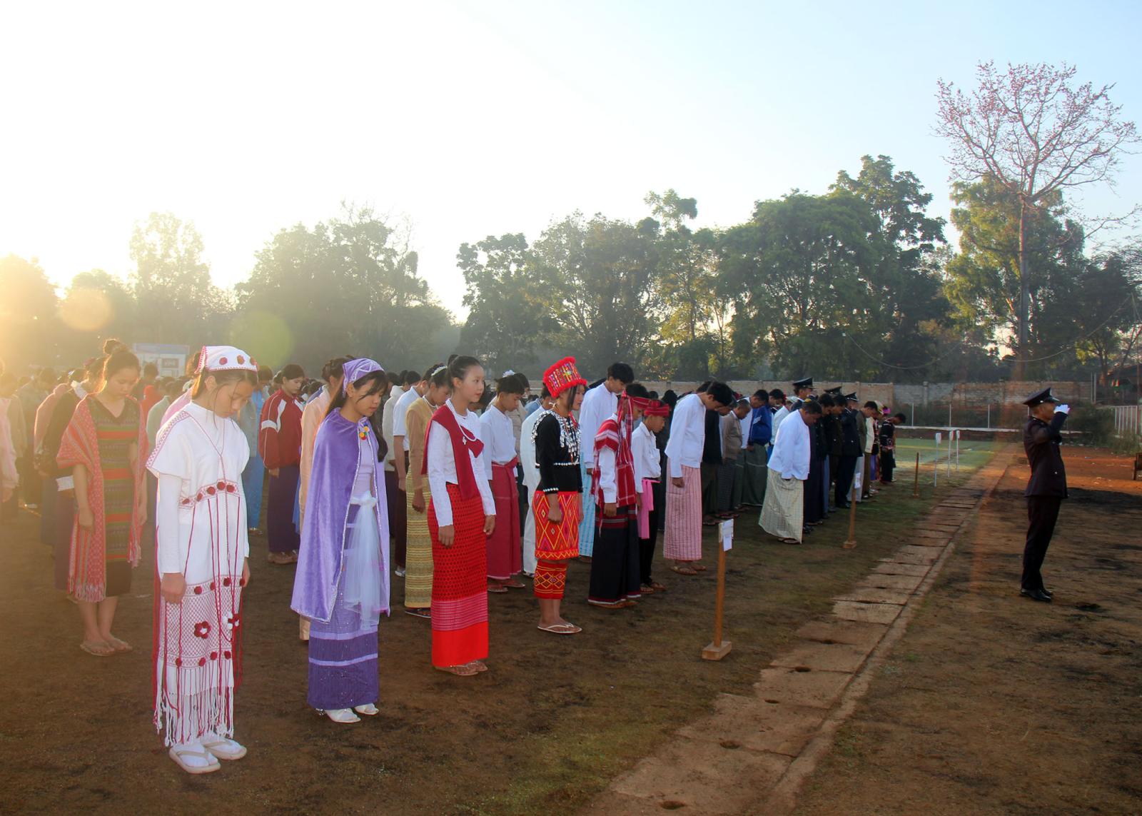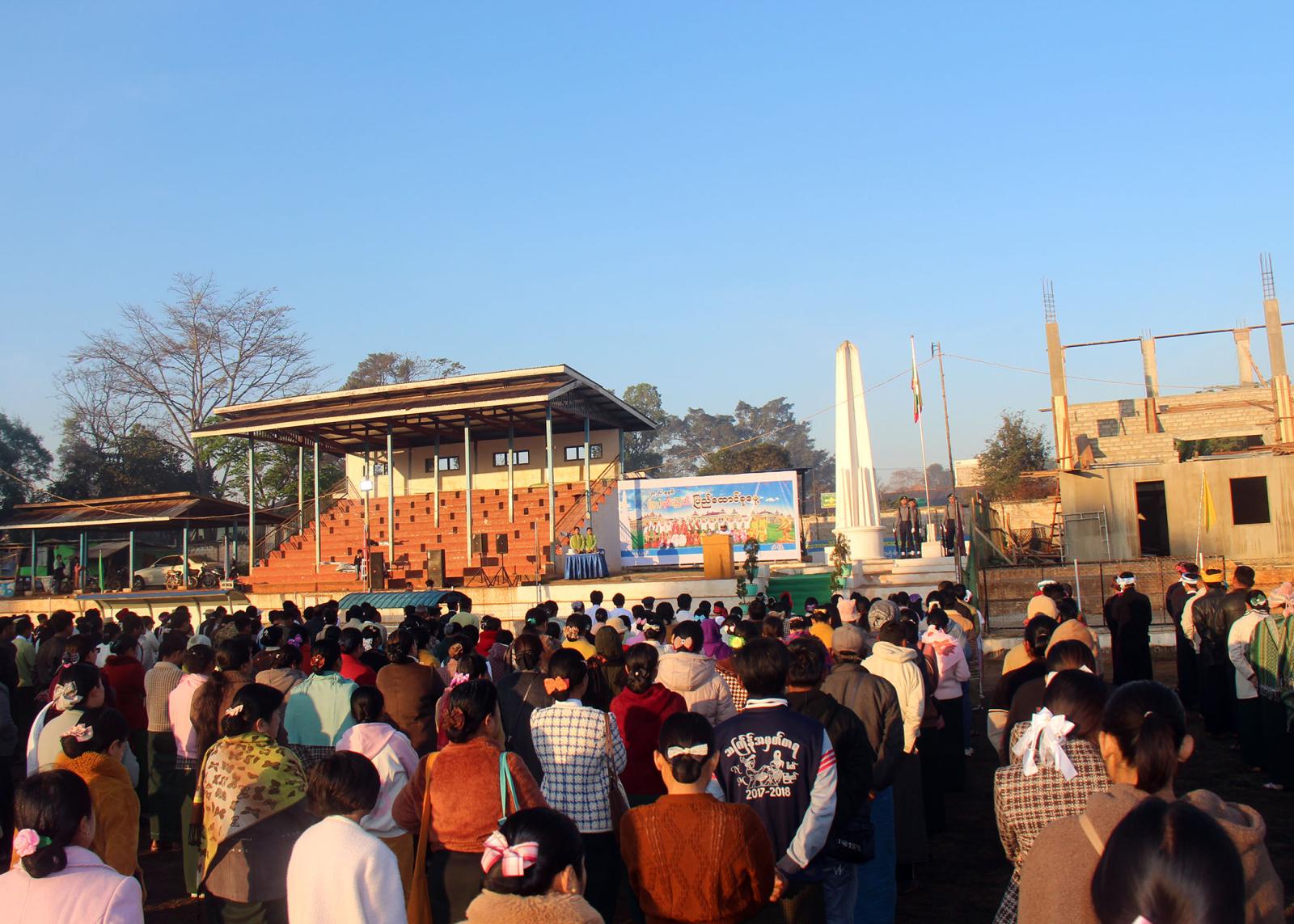 ရှမ်းပြည်နယ်တောင်ပိုင်း၊ နမ့်စန်ခရိုင်၊ နမ့်စန်မြို့နယ်တွင် (၇၉) နှစ်မြောက် ပြည်ထောင်စုနေ့ သဝဏ်လွှာဖတ်ပွဲ အခမ်းအနားကို ယနေ့နံနက် ၇ နာရီ၌ မြို့နယ်ကျောက်တိုင်အားကစားကွင်းတွင် ကျင်းပခဲ့သည်။
