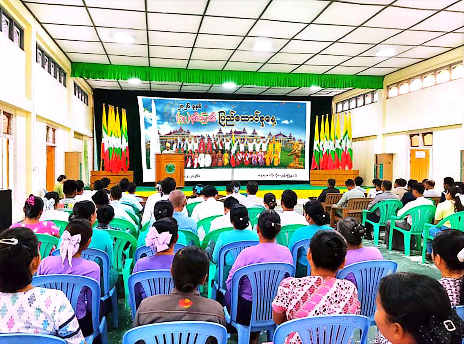 ထို့နောက် ပြည်ထောင်စုသမ္မတမြန်မာ နိုင်ငံတော်ယာယီသမ္မတနိုင်ငံတော်လုံခြုံရေးနှင့် အေးချမ်းသာယာရေး ကော်မရှင်ဥက္ကဌဗိုလ်ချုပ်မှူးကြီး သတိုးမဟာသရေစည်သူ သတိုးသီရိသုဓမ္မ မင်းအောင်လှိုင်ထံမှပေးပို့သော (၇၉) နှစ်မြောက် ပြည်ထောင်စုနေ့သဝဏ်လွှာကို မြို့နယ် စီမံခန့်ခွဲရေးနှင့်အုပ်ချုပ်ရေး ကော်မတီဥက္ကဋ္ဌ ဦးညီညီစောမှဖတ်ကြားပြီး အခမ်းအနားကိုရုတ်သိမ်းခဲ့သည်။