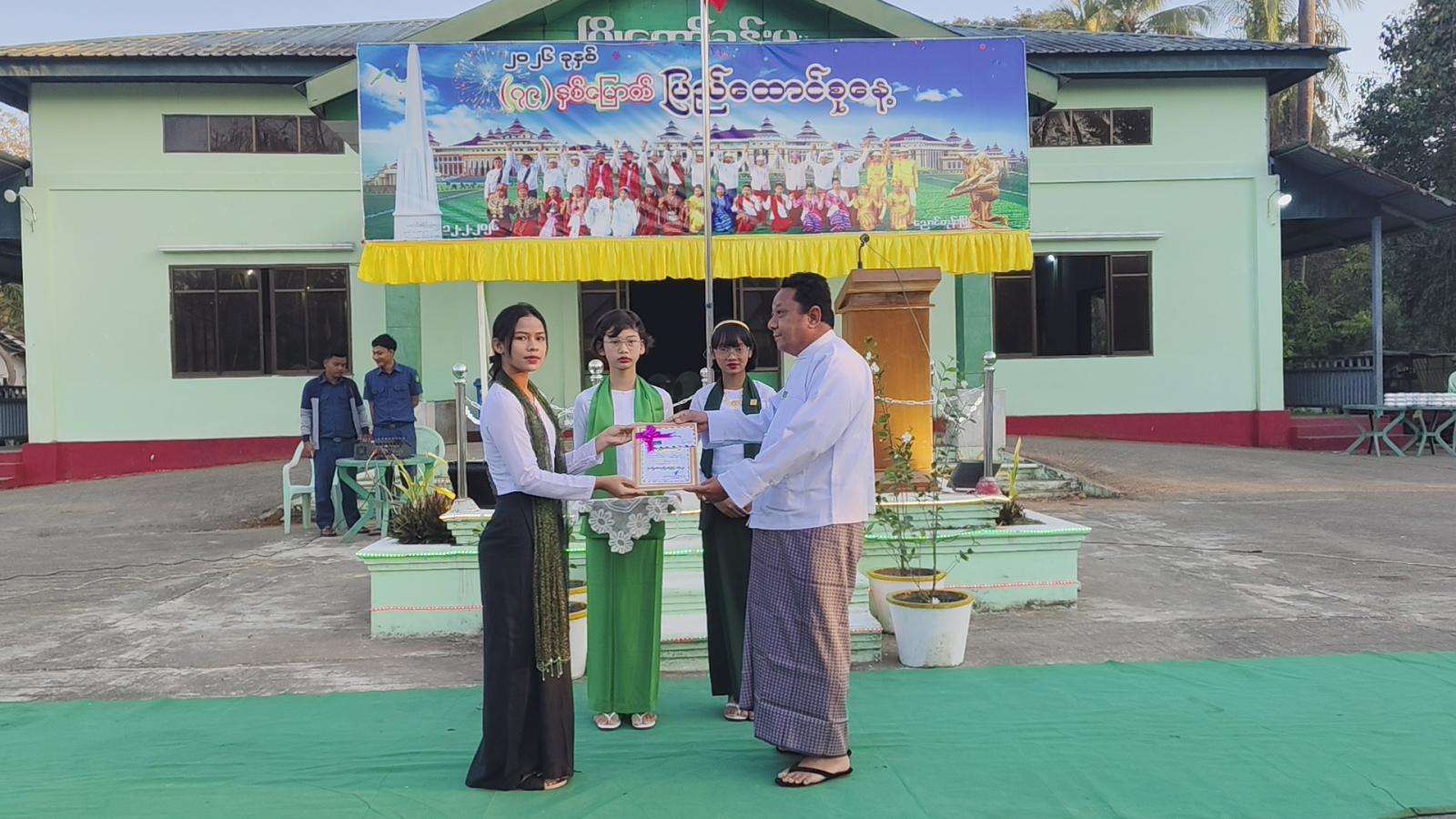 ထို့နောက် (၇၉)နှစ်မြောက် ပြည်ထောင်စုနေ့အထိမ်းအမှတ် အခြေခံပညာအထက်တန်းအဆင့်၊ အလယ်တန်းအဆင့်၊ မူလတန်းအဆင့် စာစီစာကုံးပြိုင်ပွဲ၊ ပန်းချီပြိုင်ပွဲနှင့် ကဗျာပြိုင်ပွဲတို့တွင် ဆုရရှိကြသည့် ကျောင်းသား၊ကျောင်းသူများကို တာဝန်ရှိသူများက ဂုဏ်ပြုဆုများပေးအပ်ချီးမြှင့်ခဲ့ပြီး မြို့နယ်ပြန်ကြားရေးနှင့်ပြည်သူ့ဆက်ဆံရေးဦးစီးဌာနမှ (၇၉)နှစ်မြောက် ပြည်ထောင်စုနေ့အထိမ်းအမှတ် သတင်းစကားလက်ကမ်းစာစောင်များ ဖြန့်ဝေပေးခဲ့ကြောင်း သိရသည်။