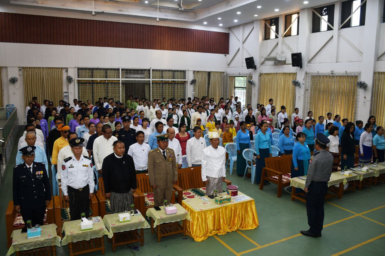 အခမ်းအနားသို့ မြို့နယ်စီမံခန့်ခွဲရေးနှင့်အုပ်ချုပ်ရေးကော်မတီဥက္ကဋ္ဌနှင့်အဖွဲ့ဝင်များ၊ မြို့နယ်ဌာနဆိုင်ရာအကြီးအကဲများနှင့်ဝန်ထမ်းများ၊ မီးသတ်တပ်ဖွဲ့ဝင်များ၊ မြို့နယ်အမျိုးသမီးရေးရာအဖွဲ့ အဖွဲ့ဝင်များ၊ မြို့နယ်မိခင်နှင့်ကလေးစောင့်ရှောက်ရေးအသင်း အဖွဲ့ဝင်များ၊ မြို့နယ်ကြက်ခြေနီတပ်ဖွဲ့ဝင်များ၊ ရပ်ကွက်/ကျေးရွာအုပ်စုအုပ်ချုပ်ရေးမှူးများနှင့် စာရေးဝန်ထမ်းများ စုစုပေါင်းအင်အား (၂၅၀)ဦးခန့် တက်ရောက်ခဲ့ကြသည်။