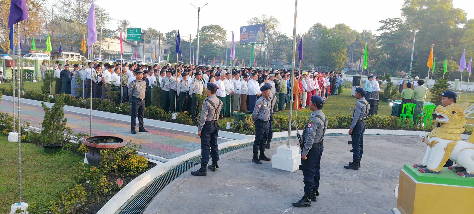 အခမ်းအနားသို့ မြို့နယ်စီမံခန့်ခွဲရေးနှင့်အုပ်ချုပ်ရေးကော်မတီဥက္ကဋ္ဌ ဦးပြည့်ဖြိုးမောင်နှင့် အဖွဲ့ဝင်များ၊ ဌာနဆိုင်ရာ အကြီးအကဲများ၊ ရပ်ကွက်/ကျေးရွာ အုပ်ချုပ်ရေးမှူးများ၊ လူမှုရေးအသင်းအဖွဲ့နှင့် တိုင်းရင်းသားများ စုစုပေါင်းအင်အား (၄၀၀) ဦးကျော် တက်ရောက်ခဲ့ကြောင်းနှင့် တက်ရောက်လာသူများအား ပြန်ကြားရေးနှင့်ပြည်သူ့ဆက်ဆံရေးဦးစီးဌာနမှ ထုတ်ဝေသော (၇၉) နှစ်မြောက် အထိမ်း အမှတ် "သတင်းစကား" လက်ကမ်းစာစောင်များအား ဖြန့်ဝေပေးခဲ့ကြောင်း သိရသည်။