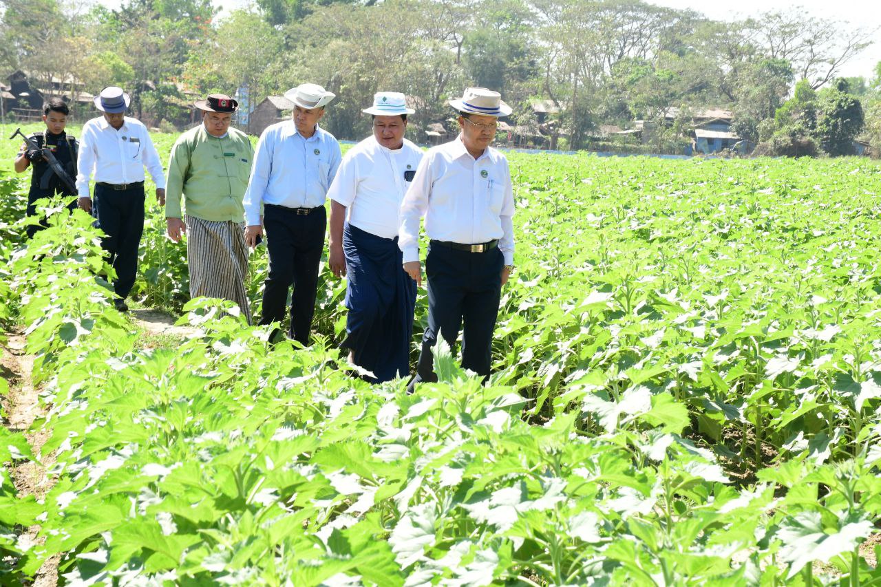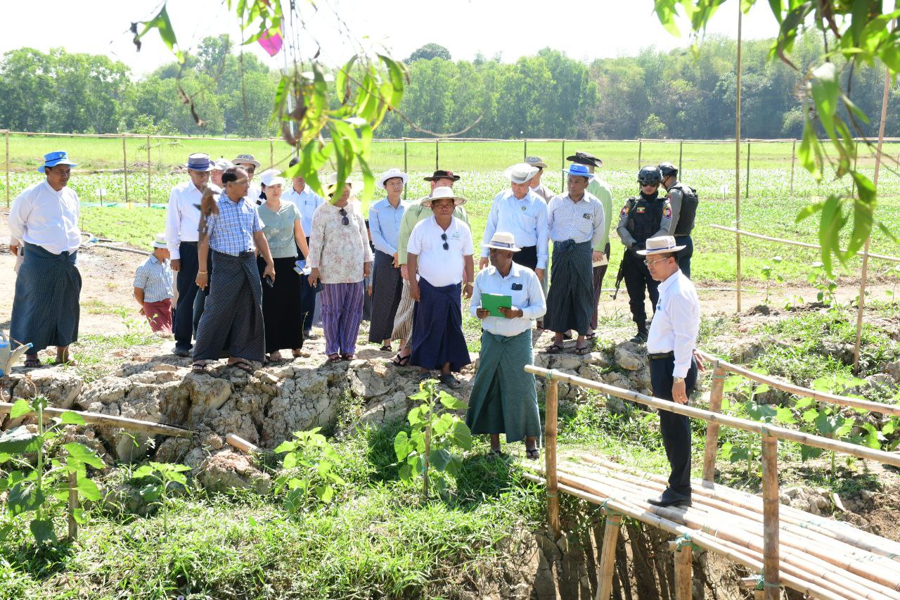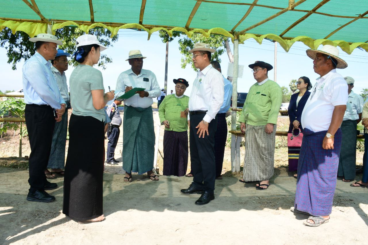 ဦးစွာ တိုင်းဒေသကြီးဝန်ကြီးချုပ်သည် ပုသိမ်မြို့နယ်၊ မရမ်းချောင်းကျေးရွာသို့သွားရောက်၍ (၆၄)နှစ်မြောက်တောင်သူလယ်သမားနေ့ အခမ်းအနားကျင်းပမည့် ပုသိမ်မြို့နယ်၊ မရမ်းချောင်းကျေးရွာကွင်းသို့သွားရောက်၍ စိုက်ပျိုးရေးဦးစီးဌာနမှ ကြိုတင်ပြင်ဆင် ဆောင်ရွက်ထားရှိမှုအခြေအနေများနှင့် နေကြာစံပြစိုက်ခင်း(၇)ဧကတွင် အိန္ဒိယနေကြာမျိုး (Suryakiran) စိုက်ပျိုးထားရှိမှုများကို ကြည့်ရှုစစ်ဆေးခဲ့ရာ တာဝန်ရှိသူများ၏ ရှင်းလင်းတင်ပြချက်များအပေါ် သီးပင်စားပင်များ အချိန်မီသီးပွင့်စေရေး၊ သစ်ပင်ပန်းမာန်များ စိမ်းလမ်းစိုပြေနေစေရေးနှင့် အချိန်မီဖူးပွင့်စေရေး၊ စိုက်ပျိုးရေးလုပ်ငန်းများအပြင် မိသားစုတနိုင်တပိုင် မွေးမြူရေးလုပ်ငန်းများကိုပါ တောင်သူများအား အသိပညာပေးပြသနိုင်ရေးအပြင် တောင်သူလယ်သမားနေ့အထိမ်းအမှတ် လမ်းညွှန်ဆိုင်းဘုတ်များအား ပြည်သူများအလွယ်တကူ မြင်တွေ့စေနိုင်ရေး စနစ်တကျ တပ်ဆင်ဆောင်ရွက်ကြရန်နှင့် အခြားလိုအပ်သည်များကို ဖြည့်စွက်မှာကြားခဲ့သည်။