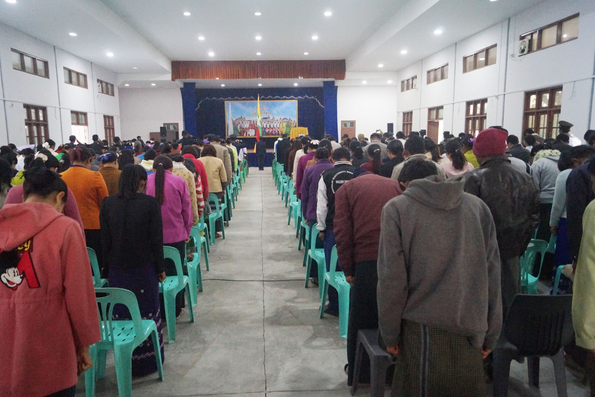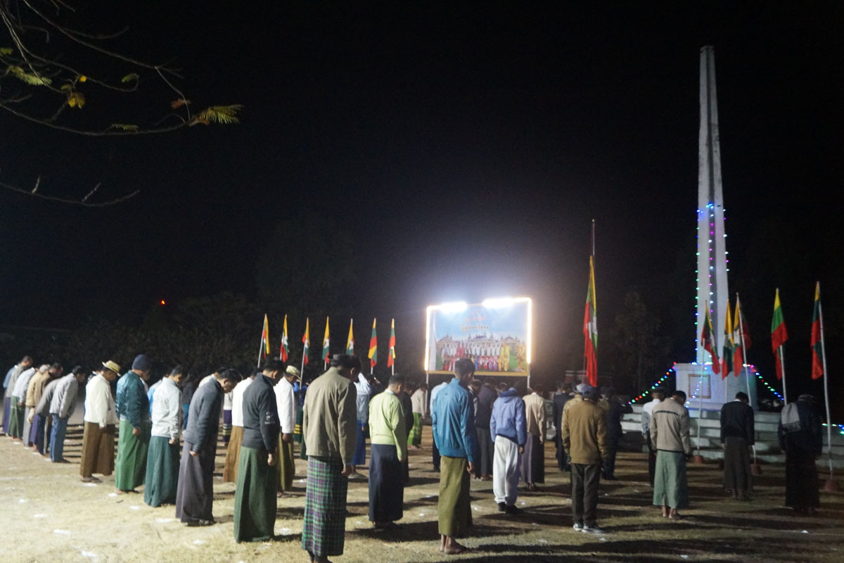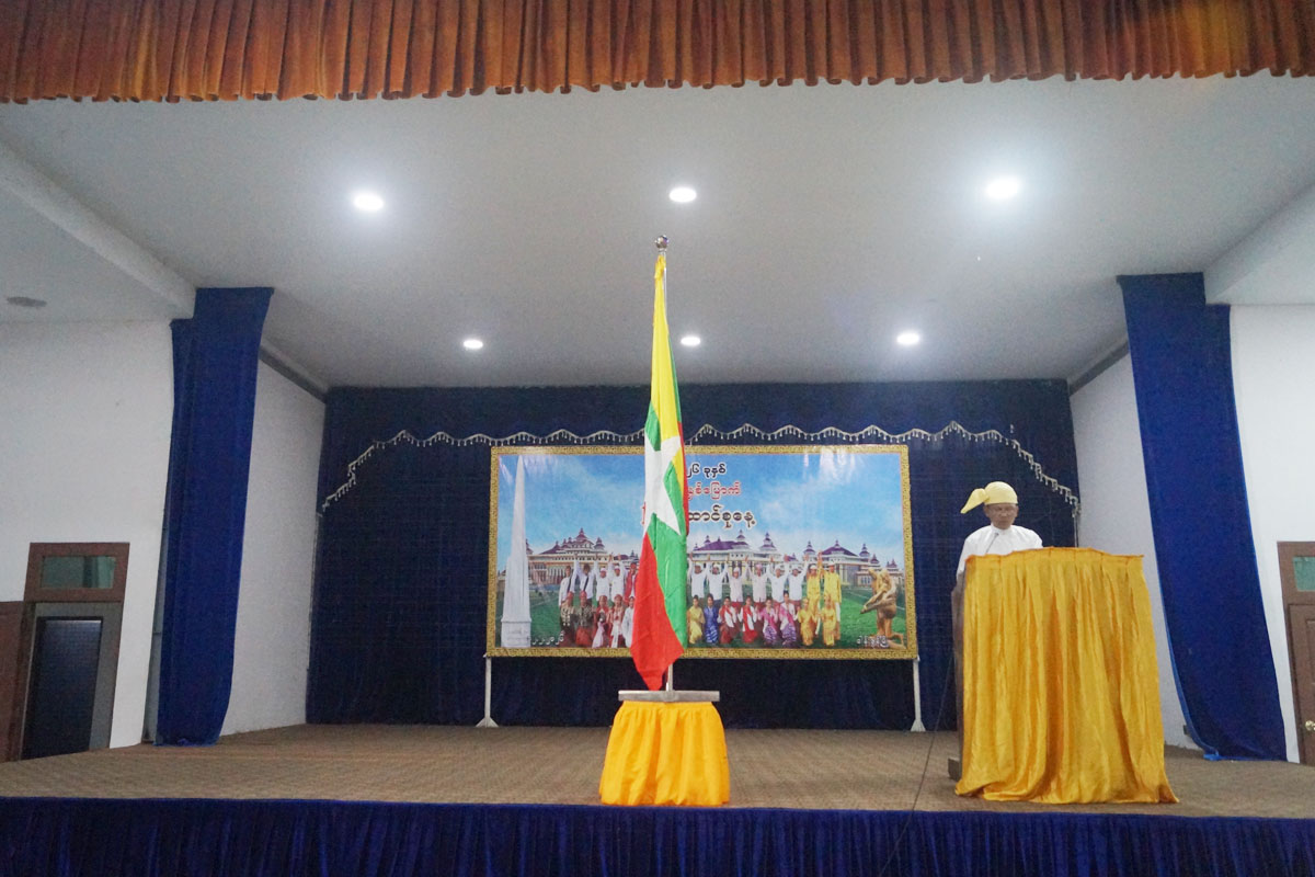 ဆက်လက်၍ နံနက် ၇ နာရီအချိန်တွင် လွတ်လပ်ရေးကျောက်တိုင်ကွင်းအတွင်းရှိ လောကနတ်ခန်းမ၌ မြို့နယ်အဆင့်ဌာနဆိုင်ရာအကြိးအကဲများနှင့် ဝန်ထမ်းများ၊ ကျောင်းသားကျောင်းသူများနှင့် မြို့ပေါ်ရပ်ကွက်များမှ ပြည်သူများက မြို့နယ်ရဲတပ်ဖွဲ့၏ ဦးဆောင်မှုဖြင့် နိုင်ငံတော်အလံအား အလေးပြုခြင်း၊ ကျဆုံးလေပြီးသော ရဲဘော်အပေါင်းအား အလေးပြုခြင်း ဆောင်ရွက်ကြသည်။
