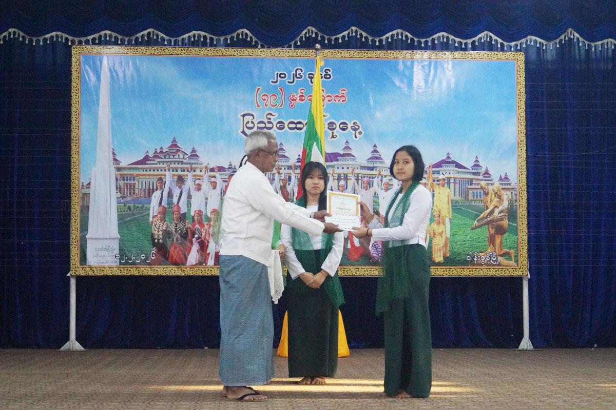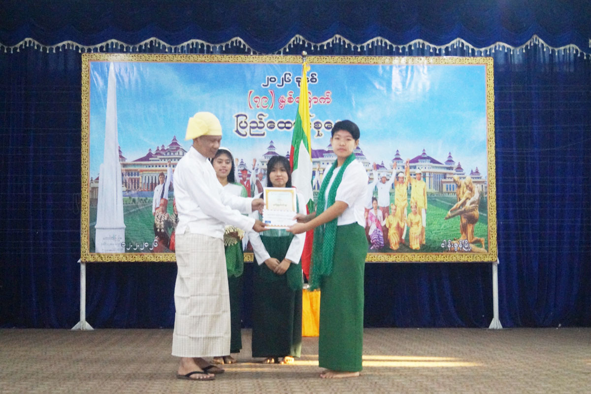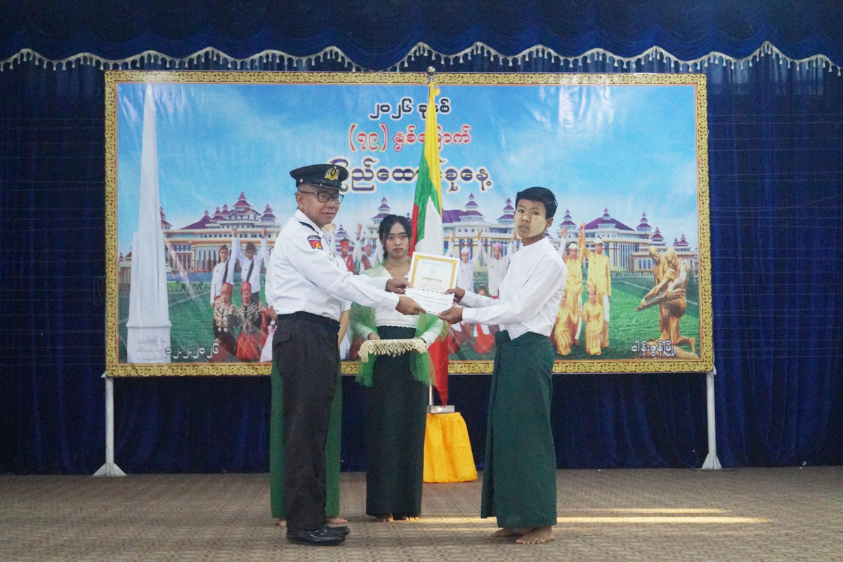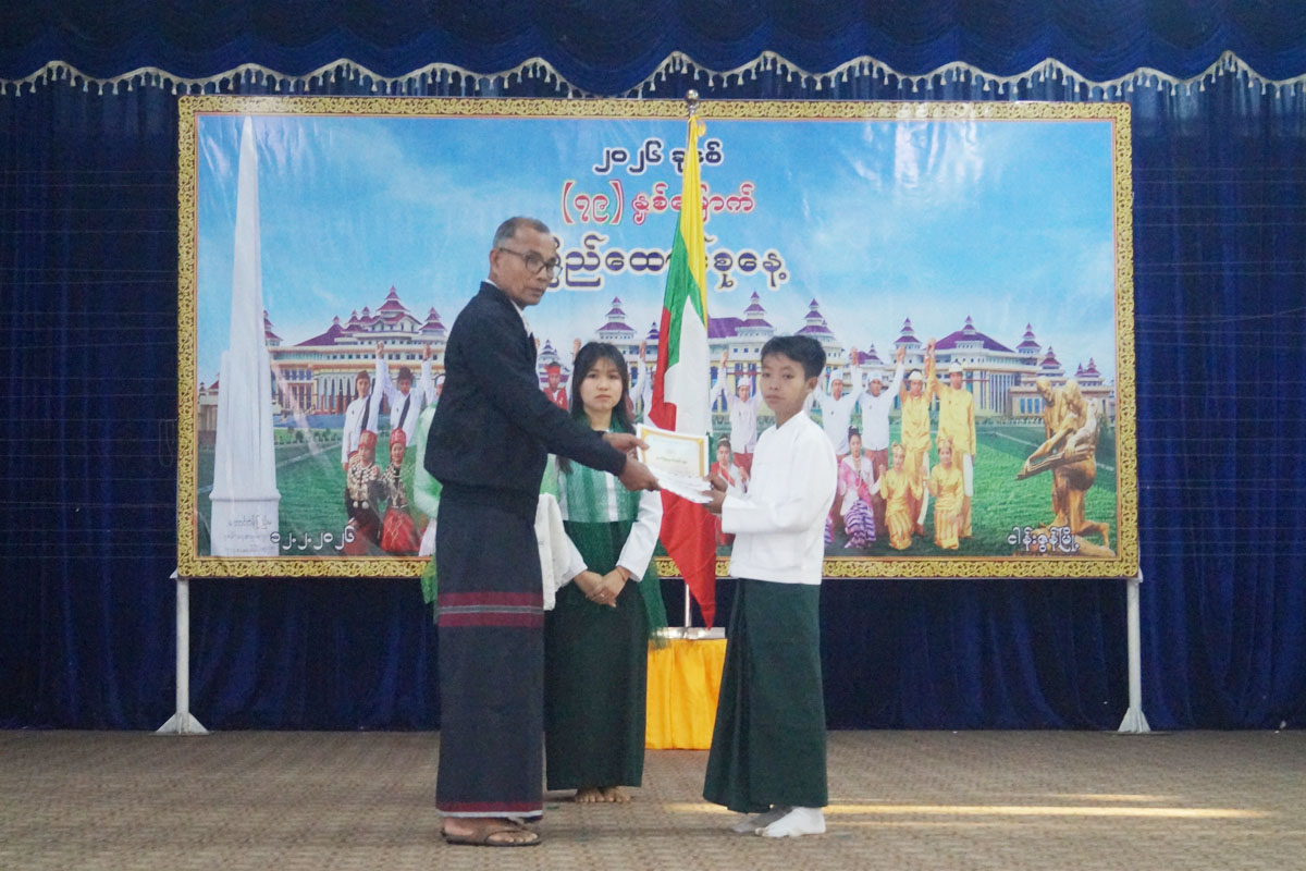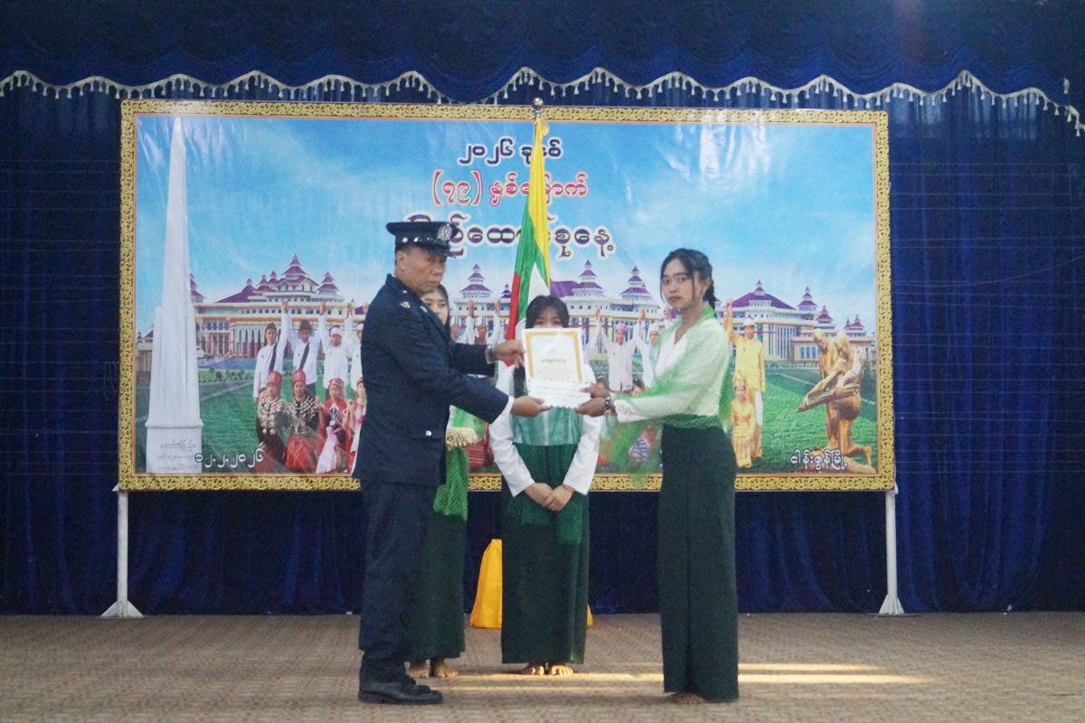 ထို့နောက် ပြည်ထောင်စုသမ္မတမြန်မာနိုင်ငံတော် ယာယီသမ္မတ နိုင်ငံတော်လုံခြုံရေးနှင့် အေးချမ်းသာယာရေးကော်မရှင်ဥက္က ဗိုလ်ချုပ်မှူးကြီး သတိုးမဟာသရေစည်သူ သတိုးသီရိသုဓမ္မ မင်းအောင်လှိုင်ထံမှပေးပို့ သော၂၀၂၆.ခုနှစ် (၇၉)နှစ်မြောက် ပြည်ထောင်စုနေ့ သဝဏ်လွှာအား မြို့နယ်စီမံခန့်ခွဲရေးနှင့် အုပ်ချုပ်ရေးကော်မတီဥက္က ဦးမျိုးမင်းသိန်းကဖတ်ကြားခဲ့ပြီး (၇၉)နှစ်မြောက် ပြည်ထောင်စုနေ့အထိမ်းအမှတ် အလယ်တန်းနှင့် မူလတန်းဆင့် ကဗျာ၊၊ စာစီစာကုံးနှင့် ကဗျာရွတ်ပြိုင်ပွဲများတွင် ဆုရရှိသူကျောင်းသား ကျောင်းသူများအား မြို့နယ်စီမံခန့်ခွဲရေးနှင့် အုပ်ချုပ်ရေးကော်မတီဉက္ကနှင့် တာဝန်ရှိသူများက ဆုများအသီးသီး ချီးမြှင့်ပေးအပ်ခဲ့ကြောင်း သိရသည်။