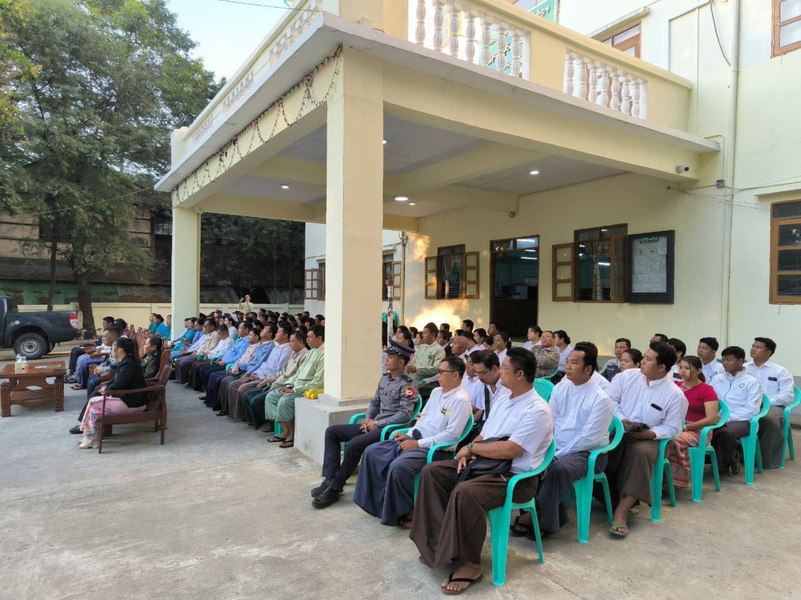 ရှေးဦးစွာ နံနက် ၇ နာရီတွင် သဝဏ်လွှာဖတ်ပွဲအခမ်းအနားကိုကျင်းပရာ အခမ်းအနားတက်ရောက်လာကြသူများက ပြည်ထောင်စုသမ္မတ မြန်မာနိုင်ငံ တော်အလံအား အလေးပြုကြသည်။ ထို့နောက် ပြည်ထောင်စုသမ္မတမြန်မာ နိုင်ငံတော် ယာယီသမ္မတ နိုင်ငံတော်လုံခြုံရေးနှင့်အေးချမ်းသာယာရေးကော်မရှင်ဥက္ကဌ ဗိုလ်ချုပ်မှူးကြီး သတိုးမဟာသရေစည်သူ သတိုးသီရိသုဓမ္မမင်းအောင်လှိုင်ထံမှပေးပို့သော (၇၉) နှစ်မြောက် ပြည်ထောင်စုနေ့သဝဏ်လွှာကို မြို့နယ်စီမံခန့်ခွဲရေးနှင့် အုပ်ချုပ်ရေးကော်မတီဥက္ကဋ္ဌ ဦးဘုန်းခန့်အောင်ကဖတ်ကြားပြီး အခမ်းအနားကိုရုတ်သိမ်းခဲ့သည်။