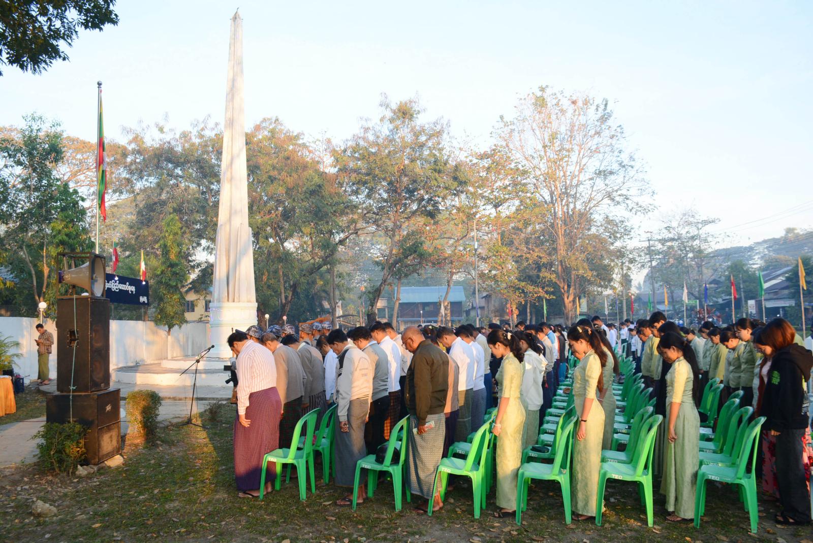 ၂၀၂၆ ခုနှစ် (၇၉) နှစ်မြောက် ပြည်ထောင်စုနေ့ အလံတင်အခမ်းအနားနှင့် သဝဏ်လွှာဖတ်ကြားပွဲကို ဧရာဝတီတိုင်းဒေသကြီး၊ မြန်အောင်ခရိုင်၊ ကြံခင်းမြို့နယ်၊ ရွှေတောင်စုရပ်ကွက်၊ ကျောက်တိုင်ကွင်းတွင် ယမန်နေ့နံနက်ပိုင်းက ကျင်းပပြုလုပ်ရာ မြို့နယ်စီမံခန့်ခွဲရေးနှင့်အုပ်ချုပ်ရေးကော်မတီ ဥက္ကဋ္ဌနှင့်အဖွဲ့ဝင်များ၊ မြို့နယ်အဆင့်ဌာနဆိုင်ရာတာဝန်ရှိသူများ၊ နိုင်ငံရေးပါတီများ၊ လူမှုရေးအသင်းအဖွဲ့များ၊ မြို့မိ/မြို့ဖများ ဆရာ၊ ဆရာမများ၊ ကျောင်းသား၊ ကျောင်းသူများနှင့် ဒေသခံပြည်သူများ စုစုပေါင်း ၂၂၅ ဦးခန့် တက်ရောက်ကြသည်။