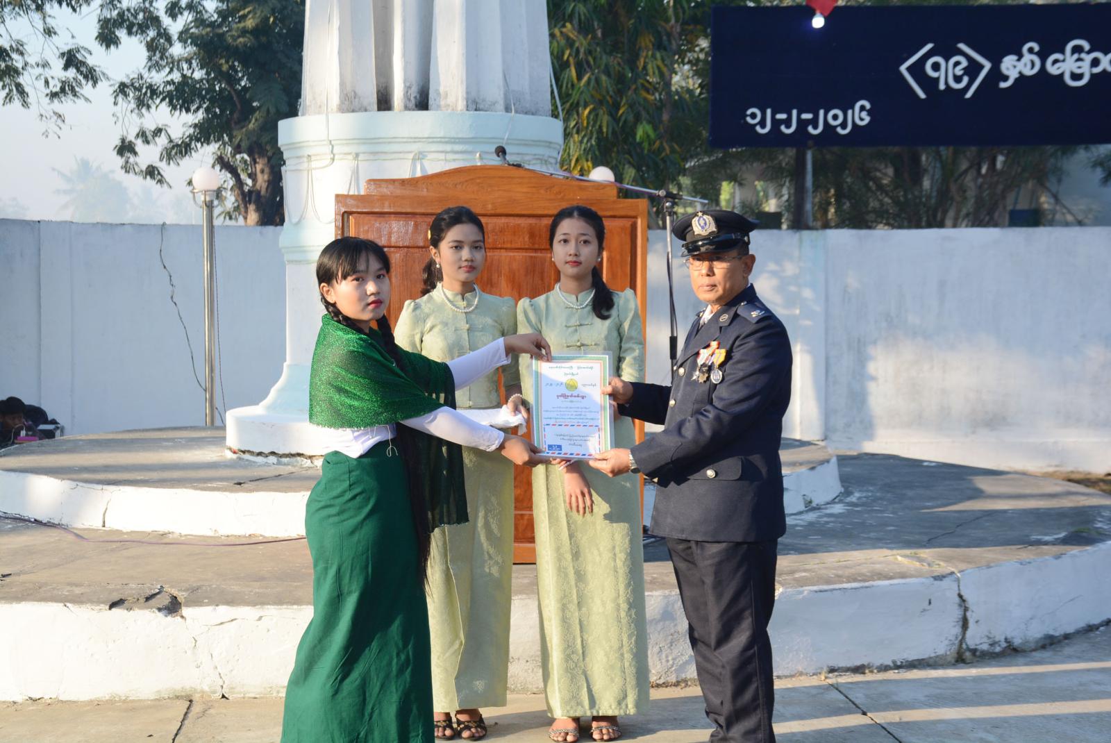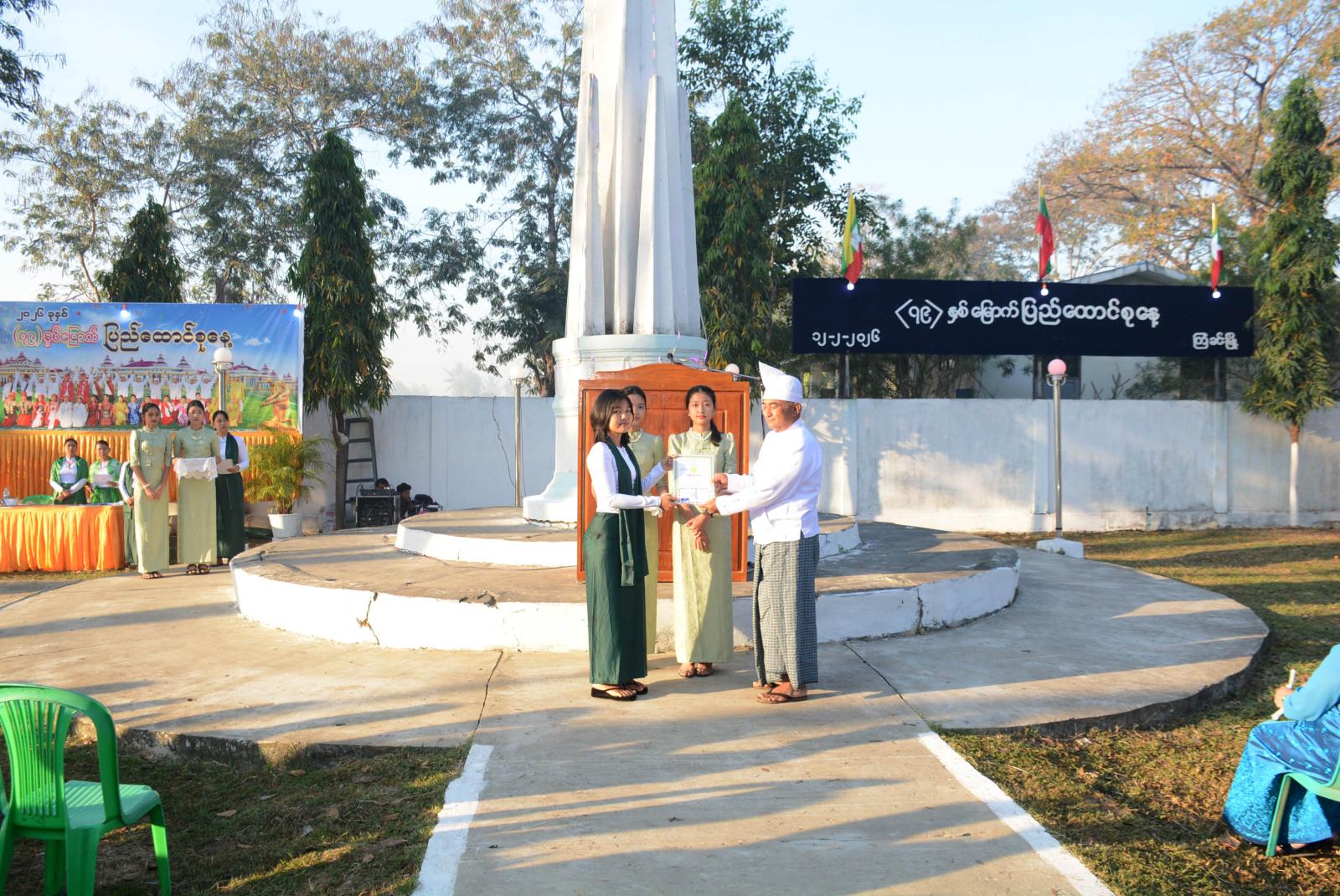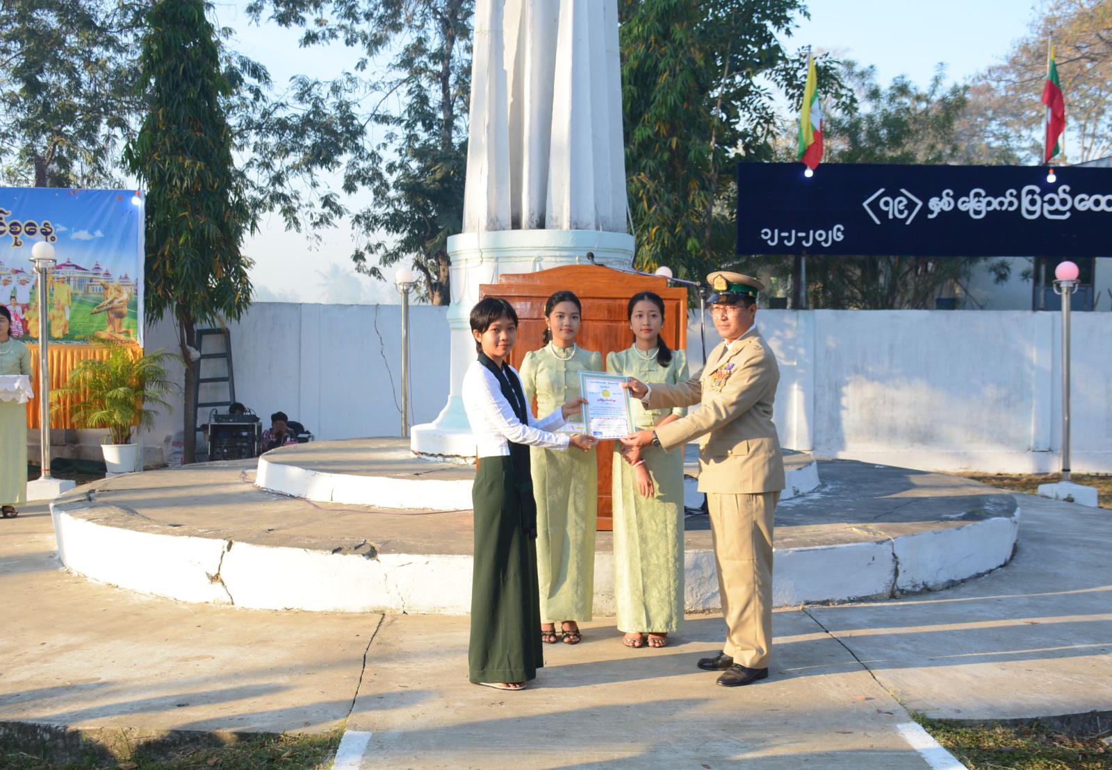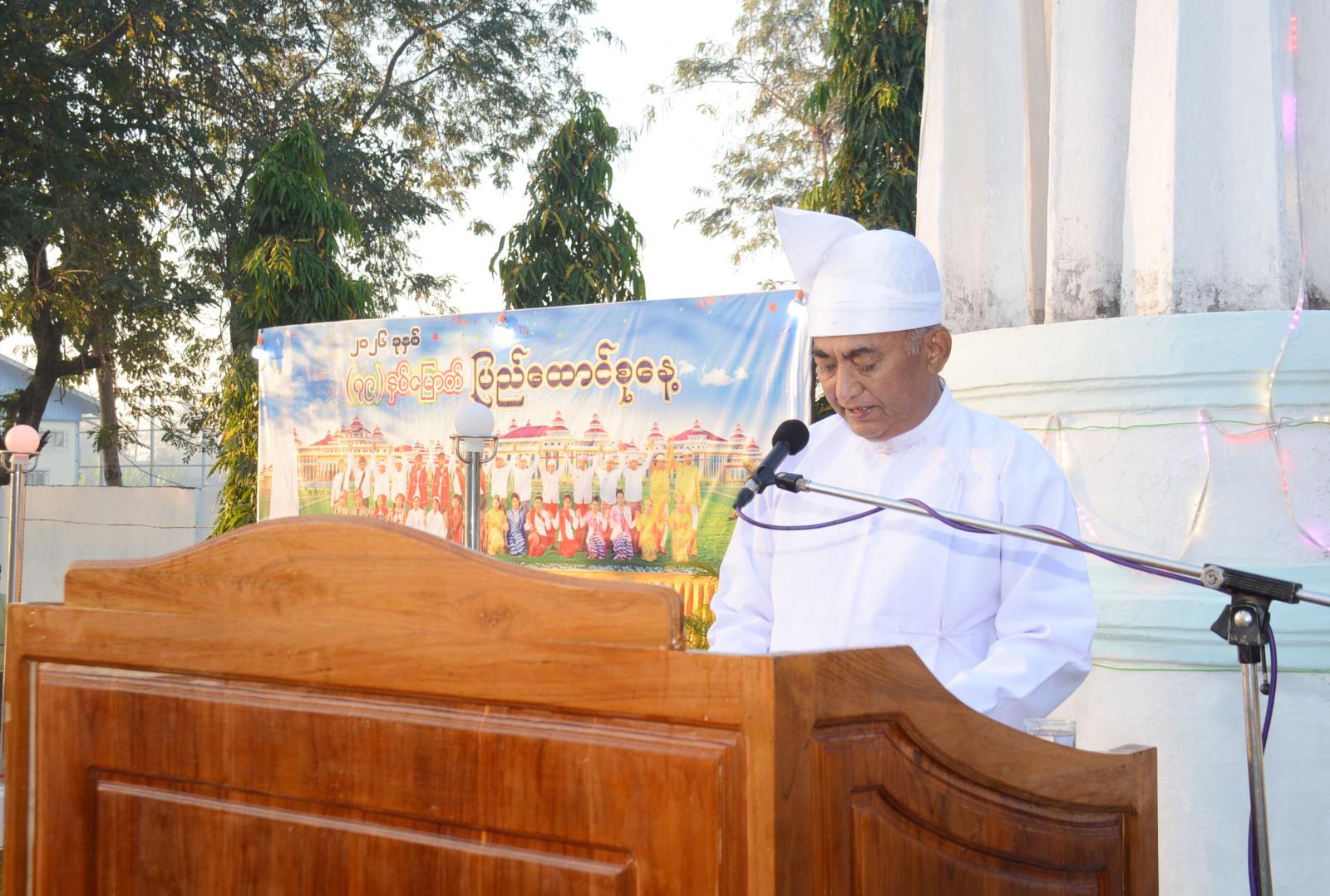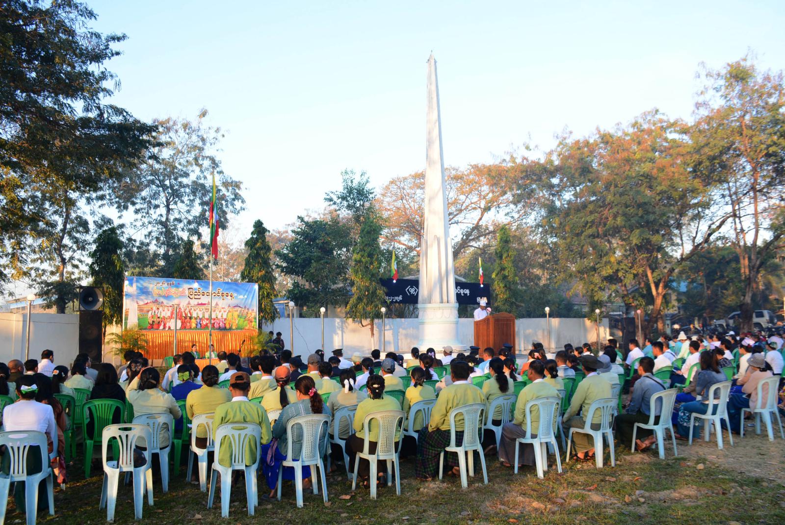ရှေးဦးစွာ မြန်မာနိုင်ငံရဲတပ်ဖွဲ့ ဂုဏ်ပြုတပ်ဖွဲ့မှဦးဆောင်၍ မြို့နယ်စီမံခန့်ခွဲရေးနှင့်အုပ်ချုပ်ရေးကော်မတီဥက္ကဋ္ဌနှင့် အခမ်းအနားသို့ တက်ရောက်လာကြသူများက ပြည်ထောင်စုသမ္မတ မြန်မာနိုင်ငံတော်အလံအား အလေးပြုခြင်း၊ ကျဆုံးလေပြီးသော အာဇာနည်ခေါင်းဆောင်ကြီးများနှင့် ရဲဘော်အပေါင်းအား အလေးပြုခြင်းများ ဆောင်ရွက်ကြပြီး၊ ပြည်ထောင်စုသမ္မတမြန်မာနိုင်ငံတော် ယာယီသမ္မတ၊ နိုင်ငံတော်လုံခြုံရေးနှင့်အေးချမ်းသာယာရေးကော်မရှင်ဥက္ကဋ္ဌ ဗိုလ်ချုပ်မှူးကြီး သတိုးမဟာသရေစည်သူ သတိုးသီရိသုဓမ္မ မင်းအောင်လှိုင်ထံမှ ပေးပို့သော (၇၉) နှစ်မြောက် ပြည်ထောင်စုနေ့သဝဏ်လွှာအား မြို့နယ်စီမံခန့်ခွဲရေးနှင့်အုပ်ချုပ်ရေးကော်မတီဥက္ကဋ္ဌ ဦးဝင်းလှိုင်က ဖတ်ကြားသည်။ ဆက်လက်၍ (၇၉) နှစ်မြောက် ပြည်ထောင်စုနေ့ အထိမ်းအမှတ် (ထက်၊ လယ်၊ မူ)အဆင့် စာစီစာကုံး၊ ကဗျာ၊ ပန်းချီပြိုင်ပွဲများတွင် ဆုရရှိကြသော ကျောင်းသား၊ ကျောင်းသူ ၁၃ ဦးအား တာဝန်ရှိသူများက ဆုများအသီးသီးပေးအပ်ချီးမြှင့်ကြသည်။ ယင်းနောက် အခမ်းအနားတက်ရောက်လာကြသူများအား မြို့နယ်အထွေထွေအုပ်ချုပ်ရေးဦးစီးဌာနမှ ကောက်ညှင်းပေါင်း၊ ဆီထမင်းများဖြင့် ကျွေးမွေးခဲ့ကြသည်။