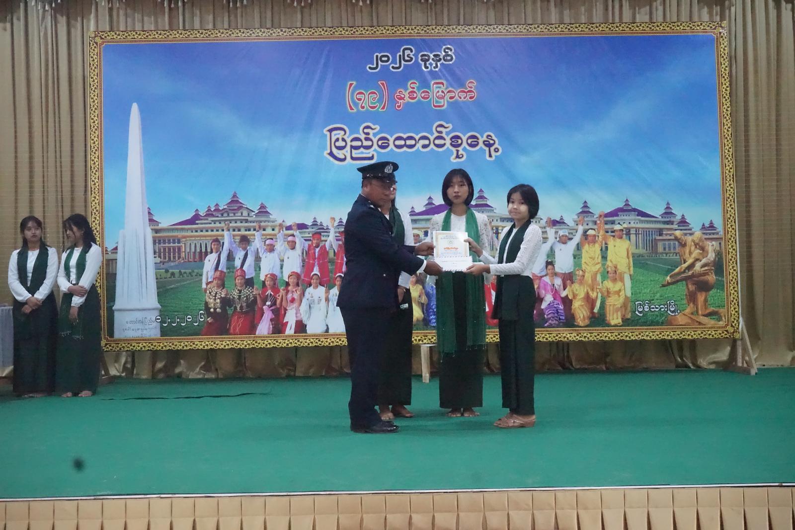 ဆက်လက်၍ (၇၉) နှစ်မြောက် ပြည်ထောင်စုနေ့အထိမ်းအမှတ် ပြိုင်ပွဲများတွင် အခြေခံပညာကျောင်းများမှ အထက်တန်း၊ အလယ်တန်း၊ မူလတန်းအဆင့် စာစီစာကုံးပြိုင်ပွဲ၊ ကဗျာပြိုင်ပွဲ၊ ပန်းချီပြိုင်ပွဲနှင့် ဉာဏ်စမ်းပဟေဠိပြိုင်ပွဲများတွင် ဆုရရှိသောကျောင်းသား၊ ကျောင်းသူများအား ဆုချီးမြှင့်ခြင်း၊ စစ်တုရင်ပြိုင်ပွဲ၌ အကြီးတန်းအဆင့်နှင့် အငယ်တန်းအဆင့် ပြိုင်ပွဲများတွင် ဆုရရှိသူများအား ဆုချီးမြှင့်ခြင်း၊ မြစ်သားမြို့နယ် ပါတီစုံဒီမိုကရေစီအထွေထွေရွေးကောက်ပွဲ အပိုင်း(၃)တွင် မဲပေးမှုရာခိုင်နှုန်းအများဆုံးရရှိပြီး အောင်မြင်စွာပူးပေါင်းဆောင်ရွက်ခဲ့ကြသော ကျေးရွာအုပ်စု ၂၃ အုပ်စုမှ အုပ်ချုပ်ရေးမှူးများနှင့် စာရေးဝန်ထမ်းများအား ဂုဏ်ပြုမှတ်တမ်းလွှာ ပေးအပ်ချီးမြှင့်ခြင်းနှင့် (၇၉)နှစ်မြောက် ပြည်ထောင်စုနေ့အထိမ်းအမှတ် မြို့နယ်စီမံခန့်ခွဲရေးနှင့်အုပ်ချုပ်ရေးကော်တီဥက္ကဋ္ဌဖလား အမျိုးသားဘောလီဘောပြိုင်ပွဲတွင် ဆုရရှိသူများအား မြို့နယ်စီမံခန့်ခွဲရေးနှင့်အုပ်ချုပ်ရေးကော်တီဥက္ကဋ္ဌနှင့် အဖွဲ့ဝင်များ၊ မြို့နယ်အဆင့် ဌာနဆိုင်ရာအကြီးအကဲများနှင့် အလှူရှင်များက ဆုများအသီးသီး ပေးအပ်ချီးမြှင့်ခဲ့ကြောင်း သိရသည်။