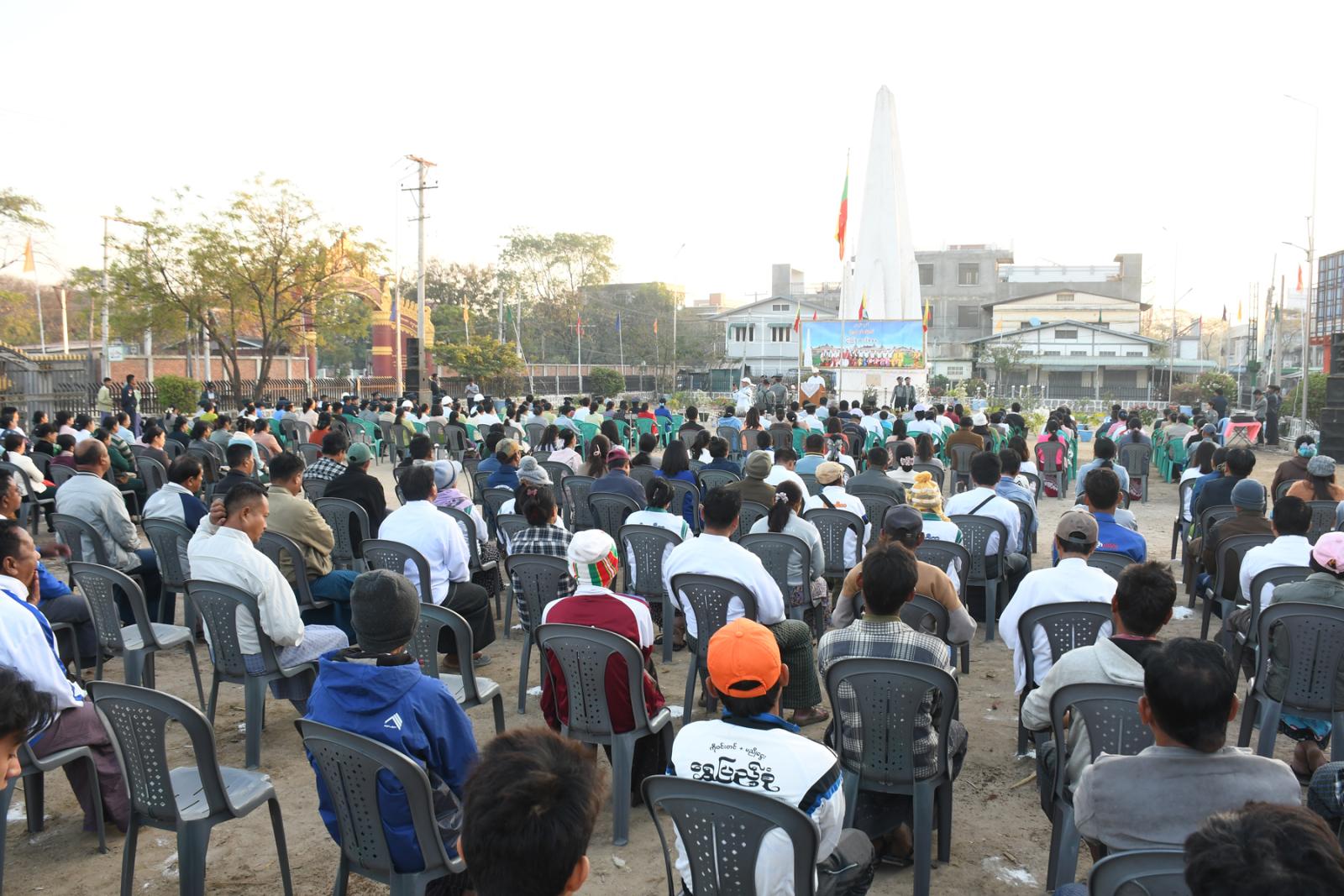 ရမည်းသင်းခရိုင်၊ ပျော်ဘွယ်မြို့နယ်၌ (၇၉)နှစ်မြောက် ပြည်ထောင်စုနေ့အထိမ်းအမှတ် နိုင်ငံတော်အလံတင်အခမ်းအနား၊ အလေးပြုခြင်း၊ သဝဏ်လွှာဖတ်ကြားခြင်းနှင့် ပိုက်ကျော်ခြင်းပြိုင်ပွဲတွင် ဆုရရှိသူများအား ဆုချီးမြှင့်ပွဲကို ယမန်နေ့ နံနက် ၇ နာရီက မြင်းဘက်ရပ်ကွက်ရှိ လွတ်လပ်ရေးကျောက်တိုင်ကွင်းတွင် ကျင်းပခဲ့ကြောင်း သိရသည်။