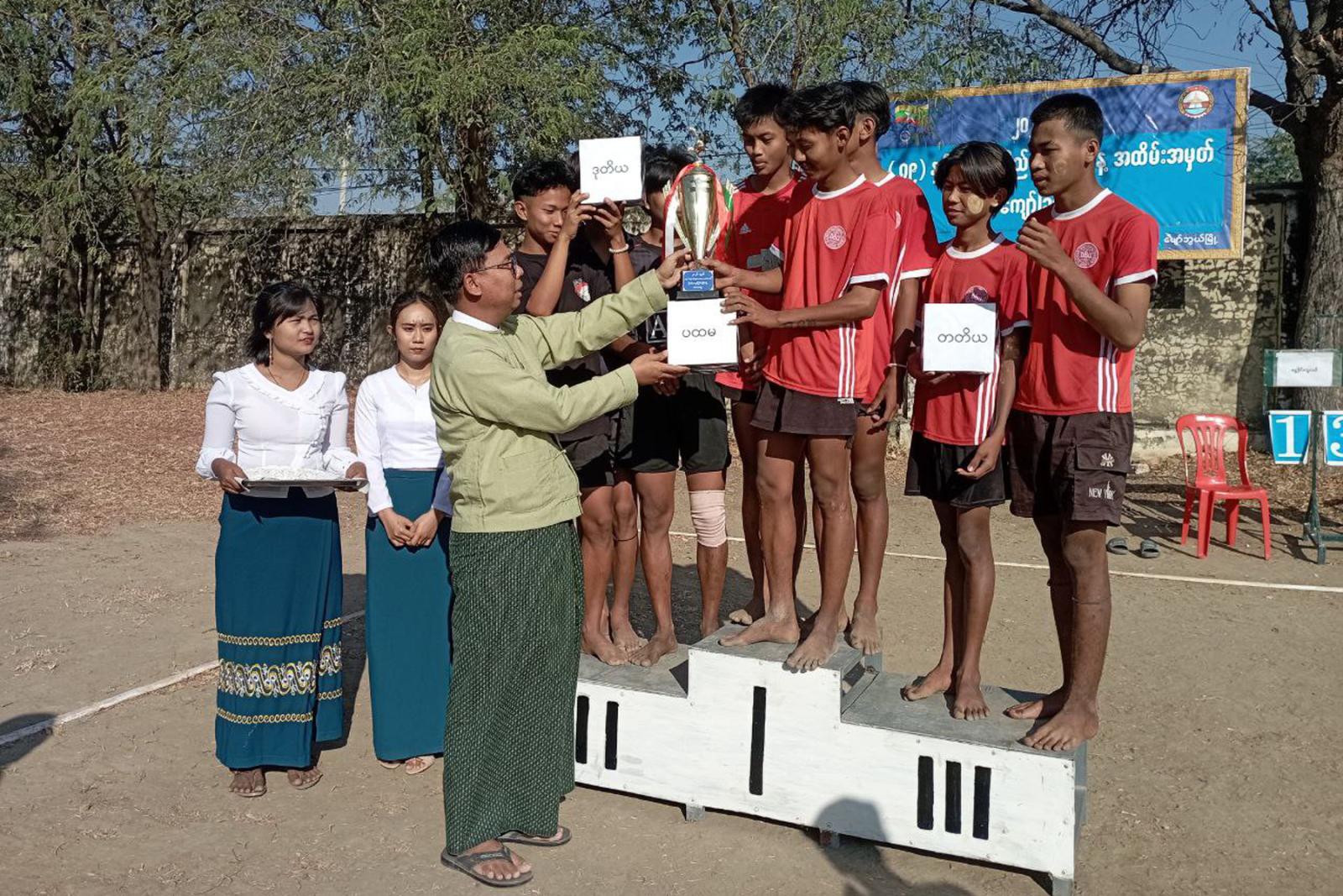 ဆက်လက်၍ မြို့နယ်အားကစားကွင်းတွင် (၇၉)နှစ်မြောက် ပြည်ထောင်စုနေ့အထိမ်းအမှတ် ပိုက်ကျော်ခြင်းပြိုင်ပွဲ ဗိုလ်လုပွဲကိုကျင်းပပြီး ဆုရရှိသည့်အသင်းများကို မြို့နယ်စီမံခန့်ခွဲရေးနှင့်အုပ်ချုပ်ရေးကော်မတီဥက္ကဋ္ဌ ဦးအာကာစိုး၊ မြို့နယ်အားကစားမှူး ဒေါ်ခင်မျိုးဝင်းနှင့်တာဝန်ရှိသူများက ဆုများပေးအပ်ချီးမြှင့်ခဲ့ကြောင်း သိရသည်။