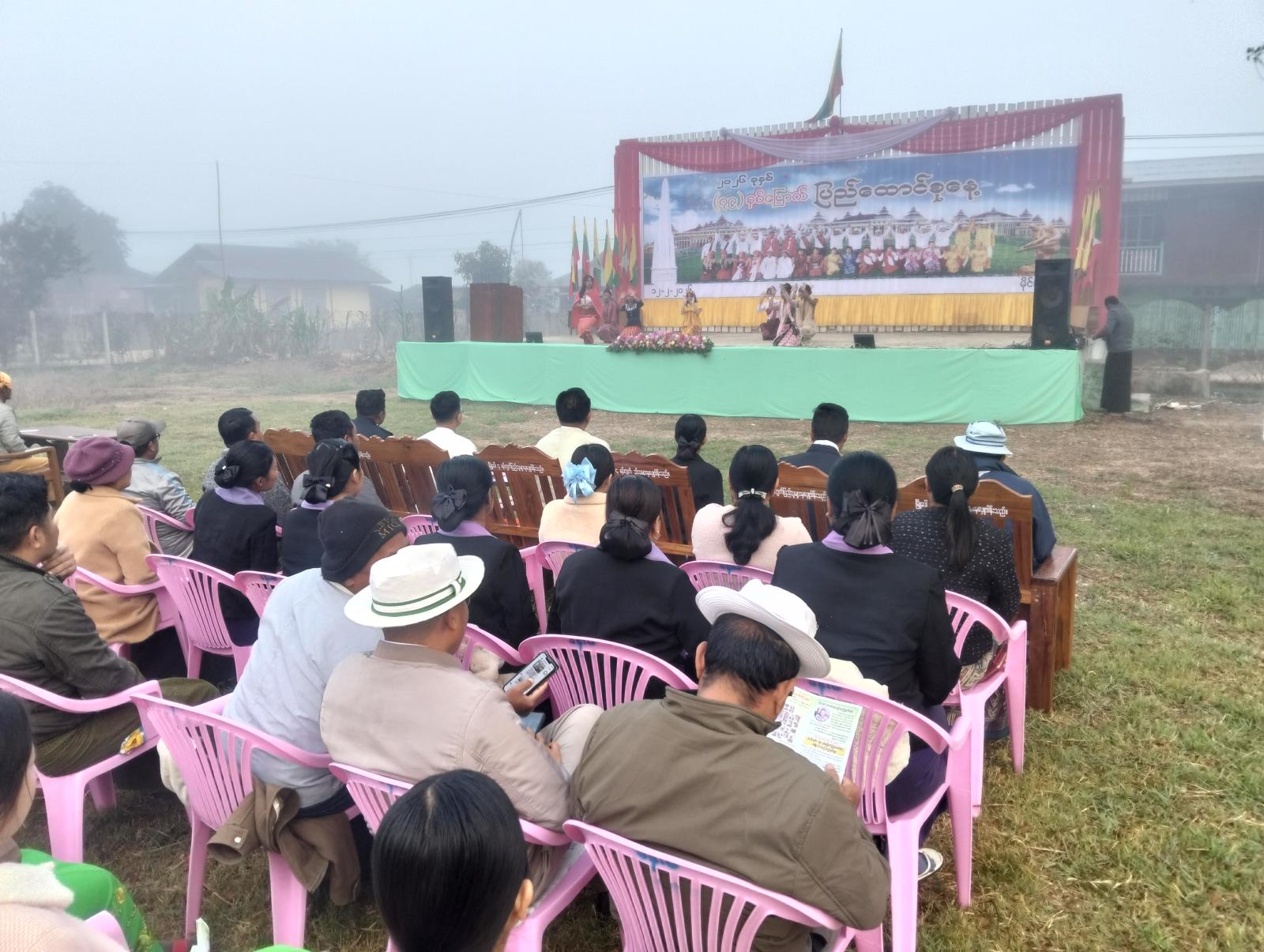 ၂၀၂၆ ခုနှစ်၊ ဖေဖော်ဝါရီလ (၁၂) ရက် တွင်ကျရောက်သည့် (၇၉) နှစ်မြောက် ပြည်ထောင်စုနေ့အထိမ်းအမှတ် သဝဏ်လွှာဖတ်ကြားခြင်းအခမ်းအနားကို ရှမ်းပြည်နယ် (တောင်ပိုင်း)၊ လင်းခေးခရိုင်၊ မိုင်းပန်မြို့နယ် စဝ်ကောလီခန်းမပန်းခြံ၌ ယမန်နေ့နံနက် ၇ နာရီက ကျင်းပခဲ့ကြောင်း သိရသည်။