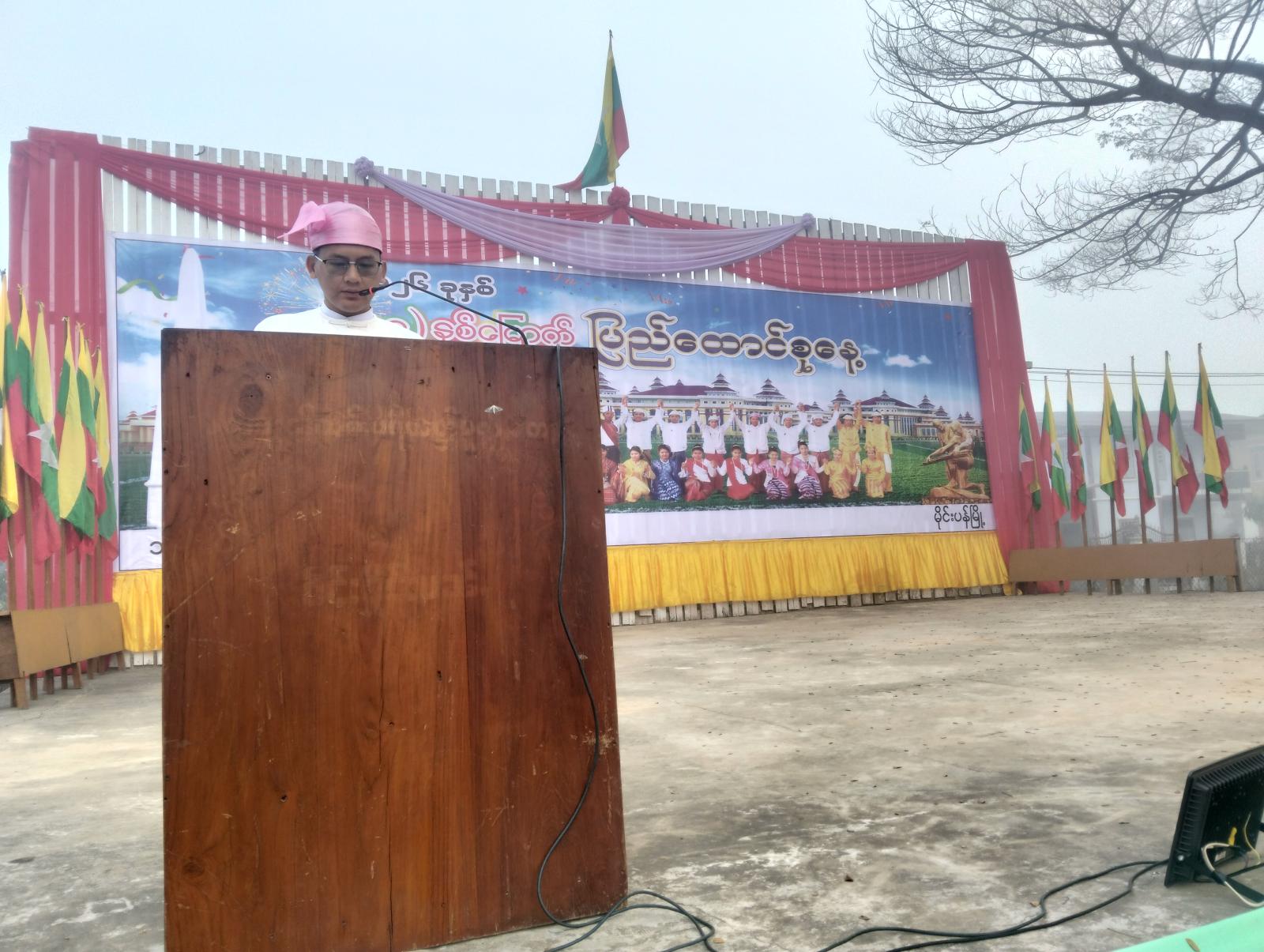 အခမ်းအနားတွင် မြို့နယ်ရဲတပ်ဖွဲ့နှင့် အခမ်းအနားတက်ရောက်သူများက နိုင်ငံတော်အလံတင်အလေးပြုခဲ့ကြပြီး ကျောင်းသား/သူများက (၇၉)နှစ်မြောက် ပြည်ထောင်စုနေ့အထိမ်းအမှတ် ဂုဏ်ပြုသီချင်းသီဆိုခဲ့ကြသည်။ ထို့နောက် မြို့နယ်စီမံအုပ်ချုပ်ရေးနှင့် စီမံခန့်ခွဲရေးကော်မတီအဖွဲ့ဝင်၊ မြို့နယ်လူဝင်မှုကြီးကြပ်ရေးနှင့်ပြည်သူ့အင်အားဦးစီးဌာန၊ ဦးစီးအရာရှိ ဦးမင်းသူအောင်က နိုင်ငံတော်လုံခြုံရေးနှင့် အေးချမ်းသာယာရေးကော်မရှင်ဥက္ကဋ္ဌ ဗိုလ်ချုပ်မှူးကြီး သတိုးမဟာသရေစည်သူ၊ သတိုးသီရိသုဓမ္မ မင်းအောင်လှိုင်ထံမှ ပေးပို့သော (၇၉) နှစ်မြောက် ပြည်ထောင်စုနေ့အထိမ်းအမှတ် သဝဏ်လွှာအားဖတ်ကြားခဲ့သည်။