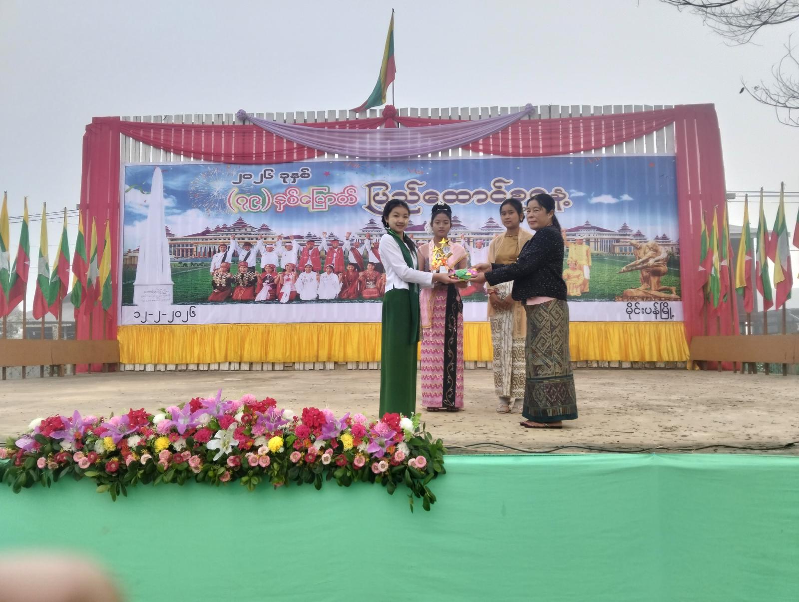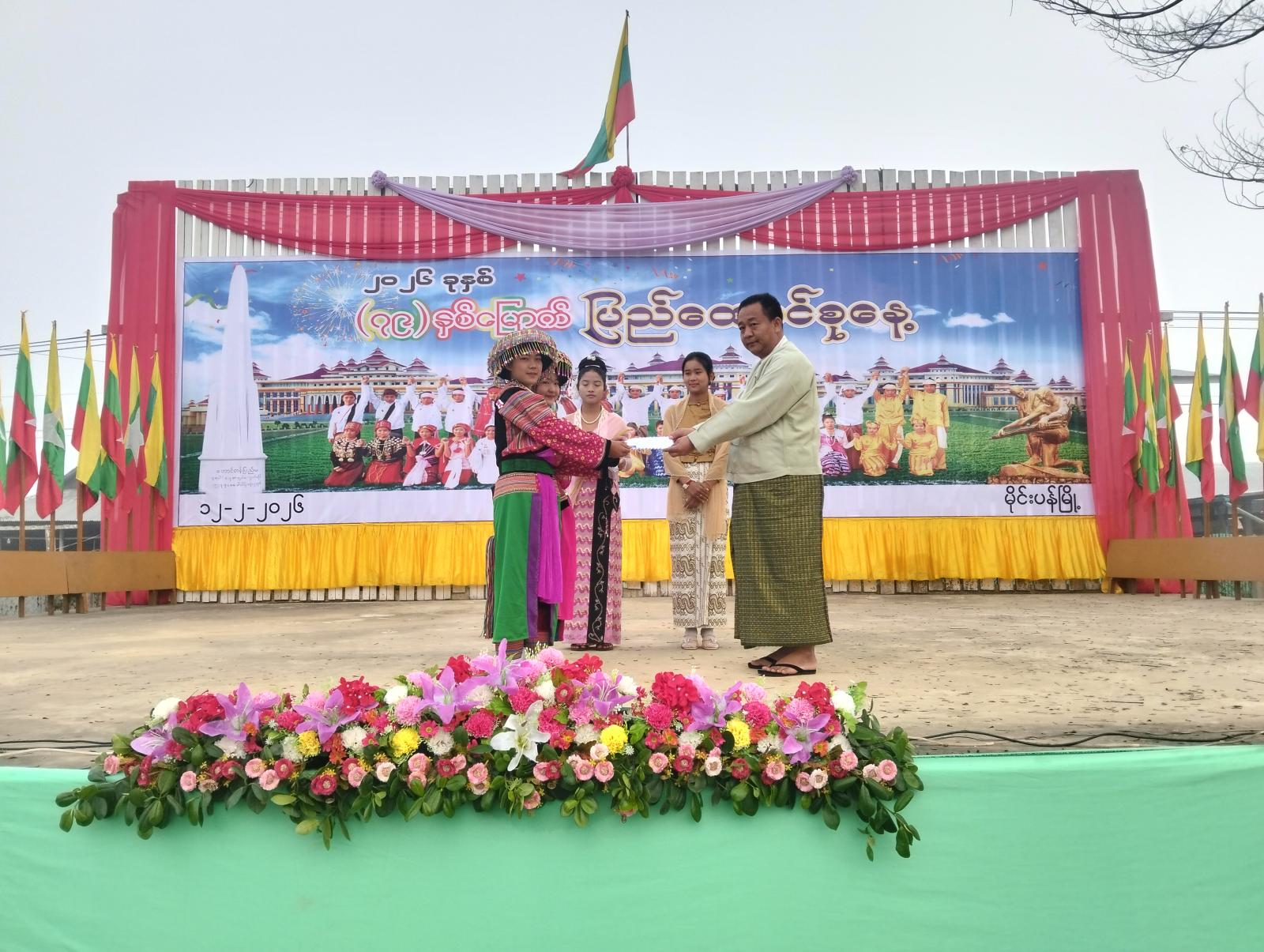 ဆက်လက်၍ (၇၉)နှစ်မြောက် ပြည်ထောင်စုနေ့အထိမ်းအမှတ် ကဗျာ၊ စာစီစာကုံး၊ ဆောင်းပါး တွင်ဆုရရှိသော ကျောင်းသား/သူများအား ဆုများချီးမြှင့်ခဲ့ကြပြီး ပြန်ကြားရေးနှင့်ပြည်သူ့ဆက်ဆံရေးဦးစီးဌာနမှ လက်ကမ်းစာစောင်များ ဖြန့်ဝေခြင်း၊ စာအုပ်စာစောင်များပြသခြင်းနှင့် နံရံကပ်စာစောင်များပြသခဲ့ကြောင်း သိရသည်။