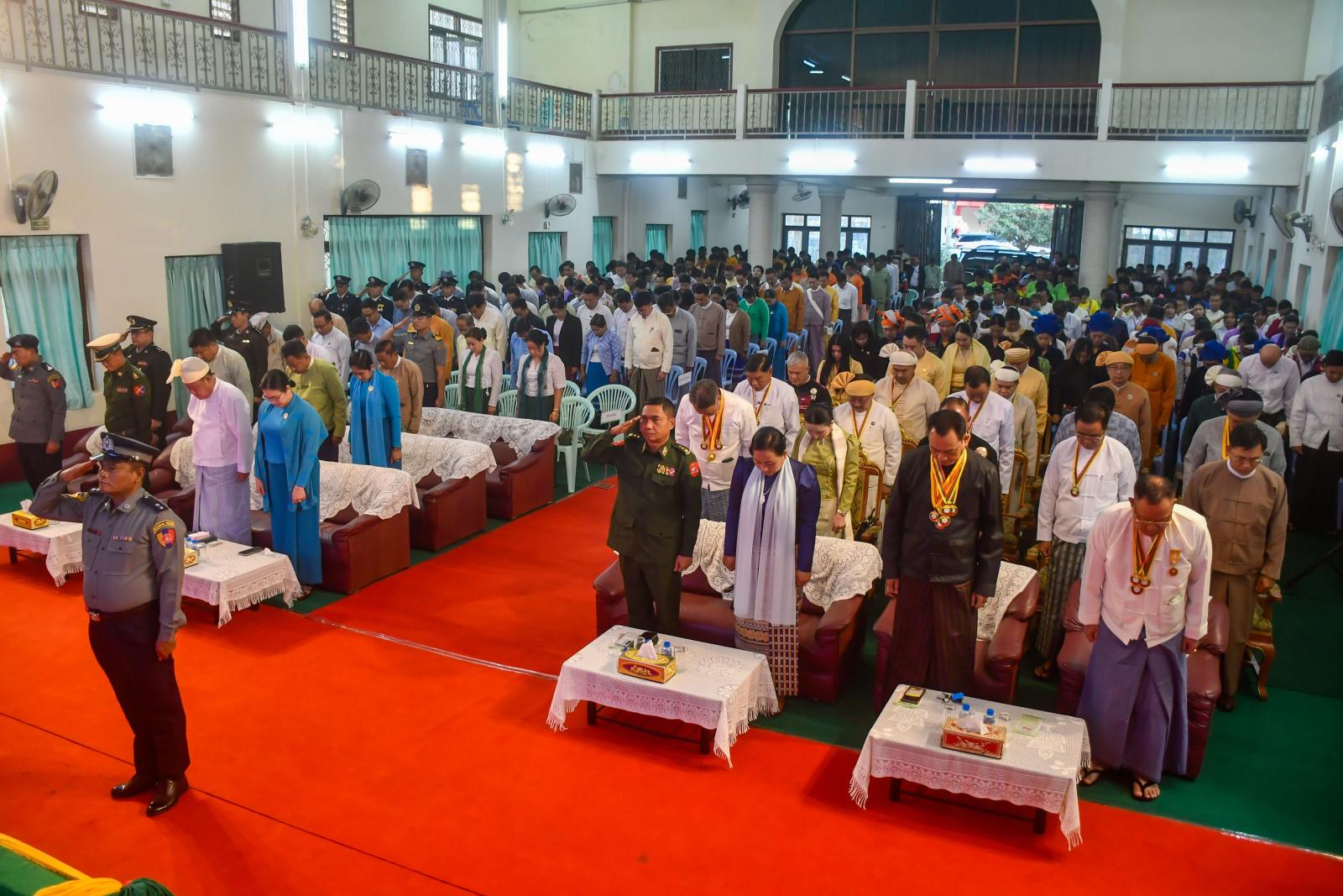 ရှမ်းပြည်နယ်(အရှေ့ပိုင်း)၊ တာချီလိတ်မြို့၌ (၇၉) နှစ်မြောက် ပြည်ထောင်စုနေ့ သဝဏ်လွှာဖတ်ကြားခြင်းနှင့် ထူးချွန်ဆုရရှိသူများအား ထပ်ဆင့်ဂုဏ်ပြုချီးမြှင့်ခြင်း အခမ်းအနားကို ယနေ့ နံနက် ၇ နာရီက မကာဟိုခမ်းရပ်ကွက်၊ အောင်မြတ်ခန်းမတွင် ကျင်းပသည်။