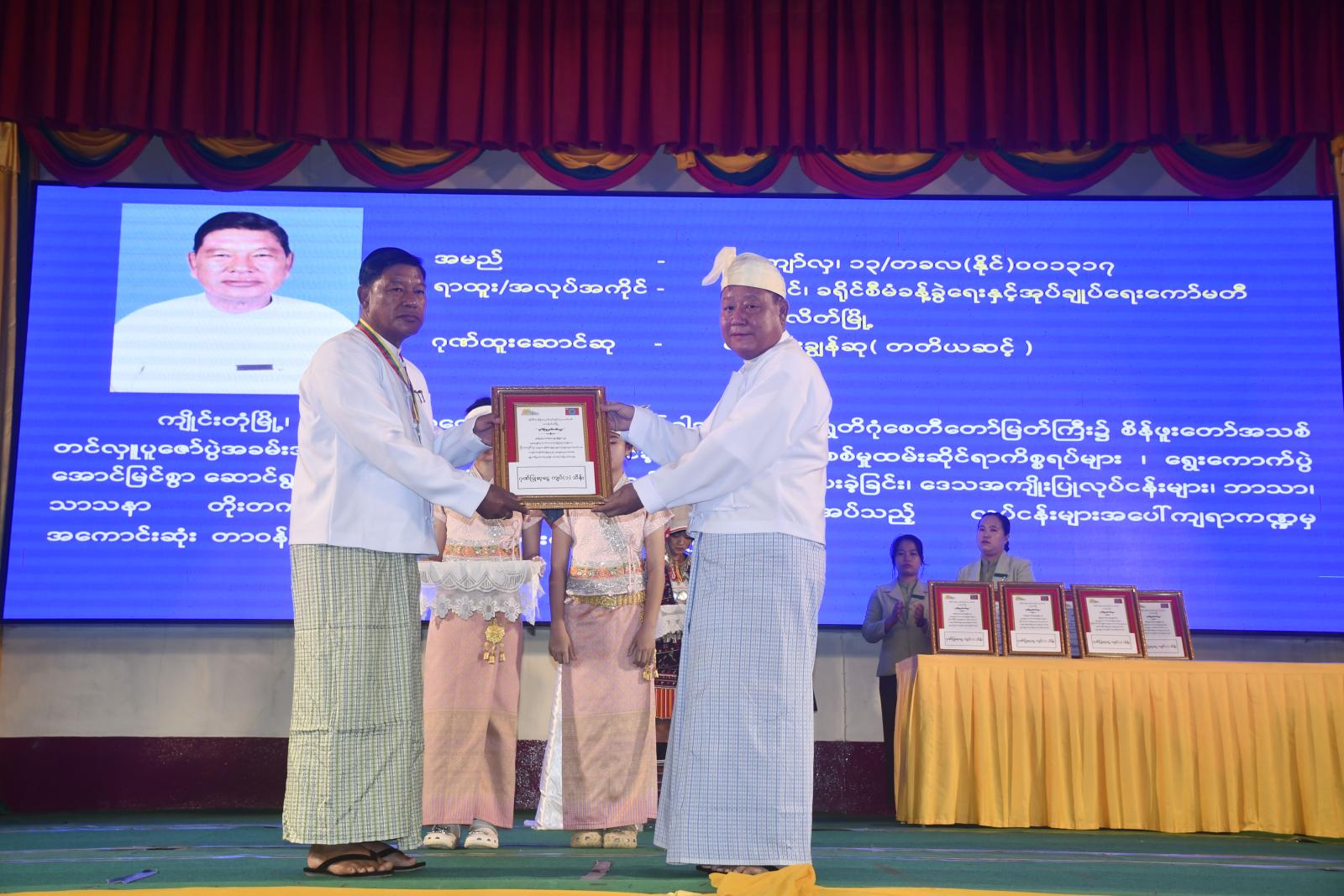 ထို့နောက် စစ်ဗျူဟာအဖွဲ့ (အခြေချ)တာချီလိတ်မှ စစ်ဗျူဟာမှူး ဗိုလ်မှူးကြီး ကျော်မင်းထွန်းနှင့် တာဝန်ရှိသူများက ၂၀၂၆ ခုနှစ်၊ (၇၈)နှစ်မြောက် လွတ်လပ်ရေးနေ့၌ ပြည်ထောင်စုသမ္မတ မြန်မာနိုင်ငံတော် ယာယီသမ္မတမှ ချီးမြှင့်ပေးအပ်သည့် သာသနာတော်ဆိုင်ရာ ဘွဲ့တံဆိပ်တော် ရရှိသည့် လူပုဂ္ဂိုလ် ၂ ဦးနှင့် ၂၀၂၆ ခုနှစ်၊ (၇၉)နှစ်မြောက် ရှမ်းပြည်နယ်နေ့တွင် ရှမ်းပြည်နယ်အစိုးရအဖွဲ့မှ ချီးမြှင့်ပေးအပ်သည့် ဘာသာ၊ သာသနာဆိုင်ရာဆုနှင့် လူမှုထူးချွန်ဆုရရှိ ကြသည့် လူပုဂ္ဂိုလ် ၁၄ ဦးနှင့် လူမှုရေးအသင်းအဖွဲ့ ၂ ဖွဲ့တို့အား ထပ်ဆင့်ဂုဏ်ပြုမှတ်တမ်းလွှာများ ချီးမြှင့်ပေးအပ်ပြီး စုပေါင်းမှတ်တမ်းဓာတ်ပုံရိုက်ကူးခဲ့ကြသည်။