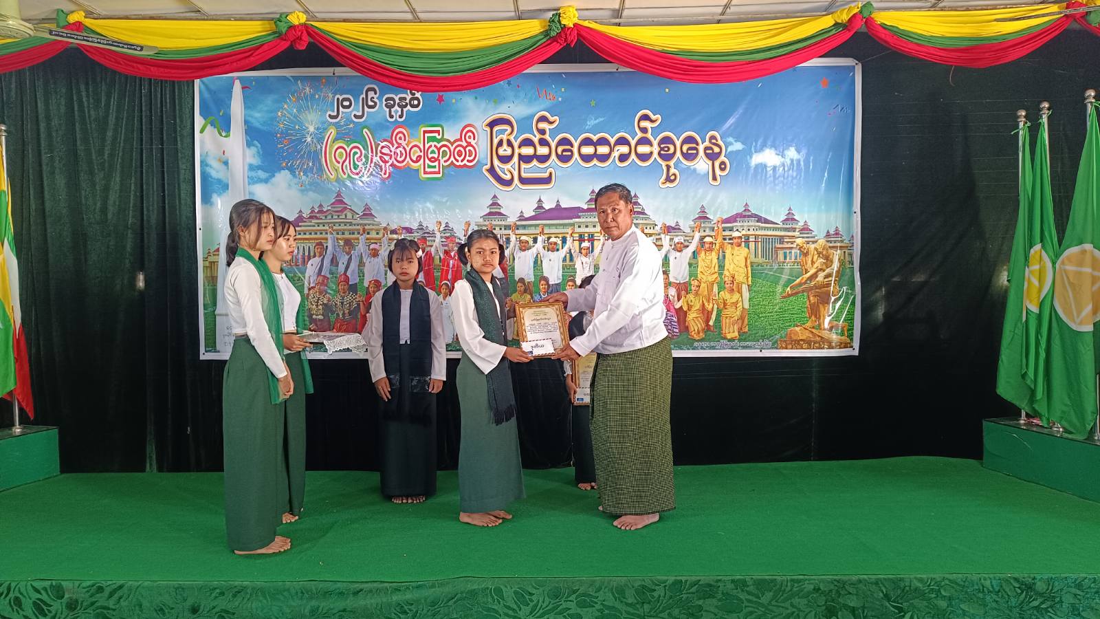 ကရင်ပြည်နယ်၊ ဖာပွန်ခရိုင်၊ ကမမောင်းမြို့တွင် (၇၉) နှစ်မြောက် ပြည်ထောင်စုနေ့ သဝဏ်လွှာဖတ်ကြားခြင်းနှင့် နိုင်ငံတော်အလံ အလေးပြုခြင်းအခမ်းအနားကို ယမန်နေ့နံနက် (၈) နာရီအချိန်က ကမမောင်းမြို့၊ အခြေခံပညာအထက်တန်းကျောင်း၌ ကျင်းပသည်။