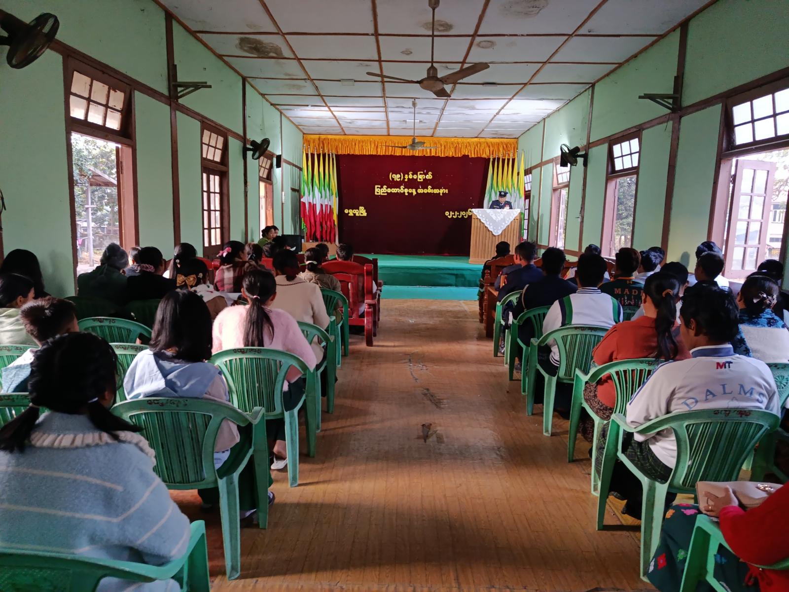 ဆက်လက်၍ နံနက် ၇ နာရီတွင် မြို့နယ်အထွေထွေအုပ်ချုပ်ရေးဦးစီးဌာန၊ အစည်းအဝေးခန်း မ၌ ပြည်ထောင်စုသမ္မတ မြန်မာနိုင်ငံတော်ယာယီသမ္မတ နိုင်ငံတော်လုံခြုံရေးနှင့်အေးချမ်းသာယာ ရေးကော်မရှင်ဥက္ကဋ္ဌ ဗိုလ်ချုပ်မှူးကြီး သတိုးမဟာသရေစည်သူ၊ သတိုးသီရိသုဓမ္မ မင်းအောင်လှိုင် ထံမှပေးပို့သည့် (၇၉)နှစ်မြောက် ပြည်ထောင်စုနေ့အထိမ်းအမှတ် သဝဏ်လွှာကို မြို့နယ်စီမံအုပ်ချုပ် ရေးအဖွဲ့ယာယီဥက္ကဋ္ဌ မြို့နယ်ရဲမှူးမြင့်ဇော်က ဖတ်ကြားခဲ့သည်။