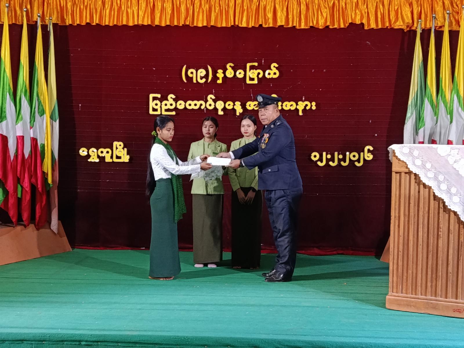 ထို့နောက် (၇၉)နှစ်မြောက် ပြည်ထောင်စုနေ့ အထိမ်းအမှတ် ဉာဏစွမ်းရည်ပြိုင်ပွဲများဖြစ်သည့် စာစီစာကုံးပြိုင်ပွဲ၊ ကဗျာရေးစပ်ပြိုင်ပွဲ၊ ပန်းချီပြိုင်ပွဲများတွင် ဆုရရှိခဲ့ကြသည့် ကျောင်းသား၊ ကျောင်း သူများအား တာဝန်ရှိသူများက ဆုများ အသီးသီးပေးအပ်ချီးမြှင့်ခဲ့ကြသည်။
