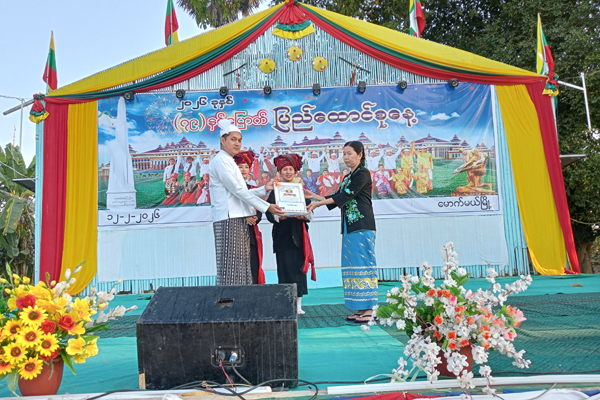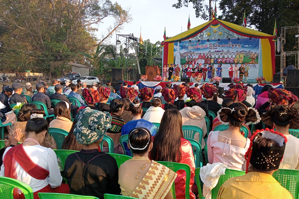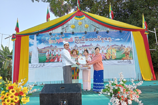 ရှေးဦးစွာ မြန်မာနိုင်ငံရဲဂုဏ်ပြုတပ်ဖွဲ့ကဦးဆောင်၍ ပြည်ထောင်စုသမ္မတမြန်မာနိုင်ငံတော်အလံကို အလေးပြုကြပြီး ပြည်ထောင်စုသမ္မတမြန်မာနိုင်ငံတော် ယာယီသမ္မတ နိုင်ငံတော်လုံခြုံရေးနှင့် အေးချမ်းသာယာရေးကော်မရှင်ဥက္ကဋ္ဌ ဗိုလ်ချုပ်မှူးကြီး သတိုးမဟာသရေစည်သူ သတိုးသီရိသုဓမ္မ မင်းအောင်လှိုင်ထံမှ (၇၉) နှစ်မြောက် ပြည်ထောင်စုနေ့အခမ်းအနားသို့ ပေးပို့လာသောသဝဏ်လွှာကို မြို့နယ်စီမံခန့်ခွဲရေးနှင့်အုပ်ချုပ်ရေးကော်မတီဥက္ကဋ္ဌ မြို့နယ်အုပ်ချုပ်ရေးမှူး ဦးမင်းသက်နိုင်က ဖတ်ကြားခဲ့ပြီး ပြည်ထောင်စုနေ့အထိမ်းအမှတ် လူမှုရည်ချွန်ထူးချွန်ဆု၊ လူမှုထူးချွန်ဆု၊ စံပြထူးချွန်ဆုများ၊ အခြေခံပညာအထက်တန်းအဆင့်၊ အလယ်တန်းအဆင့်၊ မူလတန်းအဆင့် စာစီစာကုံးပြိုင်ပွဲ၊ ပန်းချီပြိုင်ပွဲနှင့်ကဗျာပြိုင်ပွဲတွင် ဆုရရှိသူများအား တာဝန်ရှိသူများက ဆုများအသီးသီးချီးမြှင့်ကာ ကျောင်းသား/ကျောင်းသူ လူငယ်လူရွယ်လေးများတို့က တိုင်းရင်းသားရိုးရာ အကအလှလေးများတို့ဖြင့် ကပြဖျော်ဖြေခဲ့ကြပြီး စိုက်ပျိုးရေးဦးစီးဌာနမှ စိုက်ပျိုးရေးပြခန်းနှင့် ပြန်ကြားရေးနှင့်ပြည်သူ့ဆက်ဆံ ရေးဦးစီးဌာနမှ နံရံကပ်စာစောင်နှင့်ဓာတ်ပုံပြပွဲများ ခင်းကျင်းပြသပြီး ဝန်ထမ်းများက လက်ကမ်းစာစောင်များဖြန့်ဝေခဲ့ကြောင်း သိရသည်။