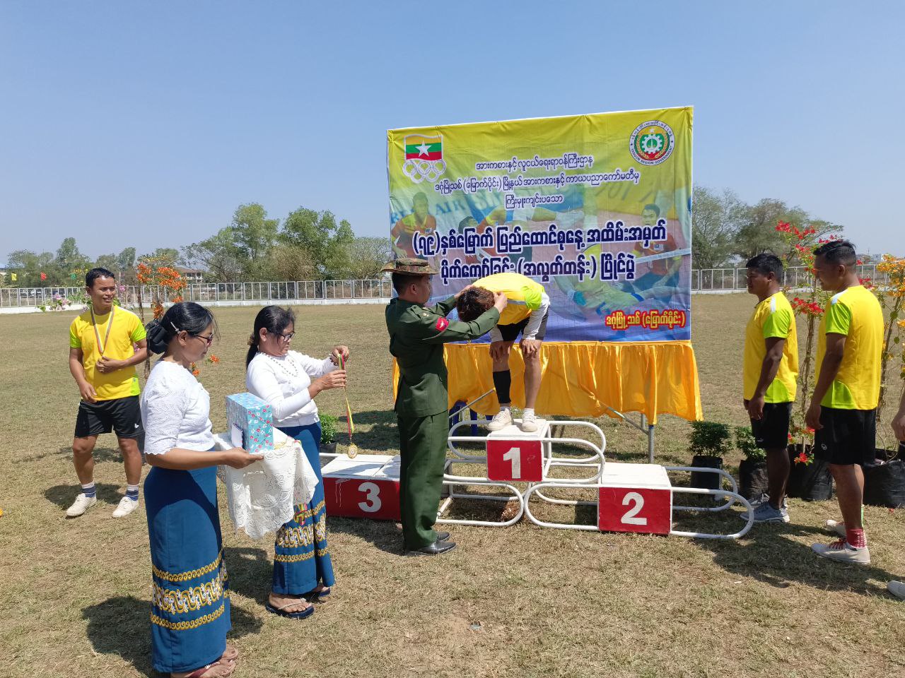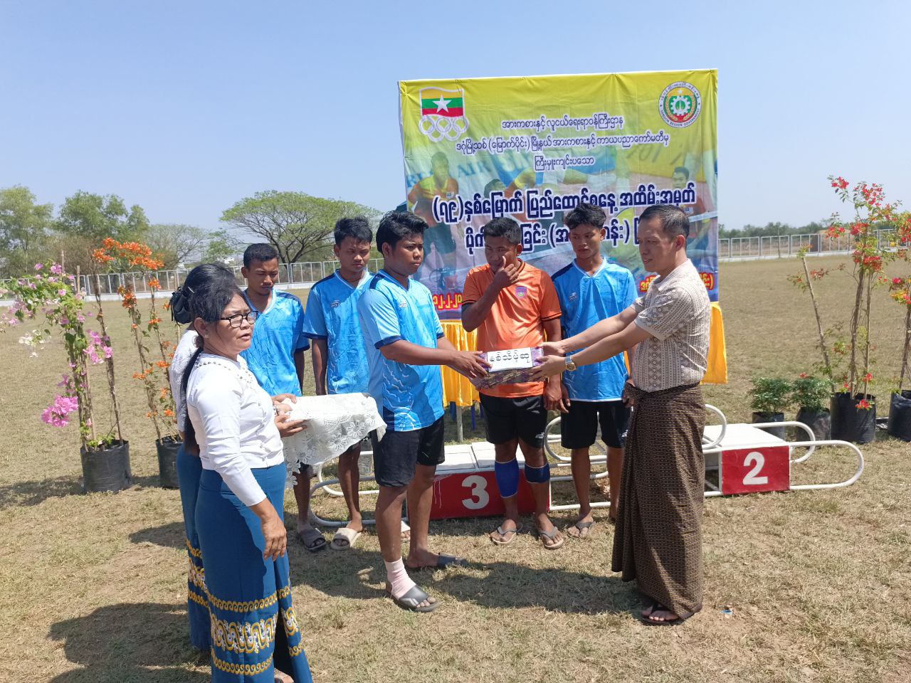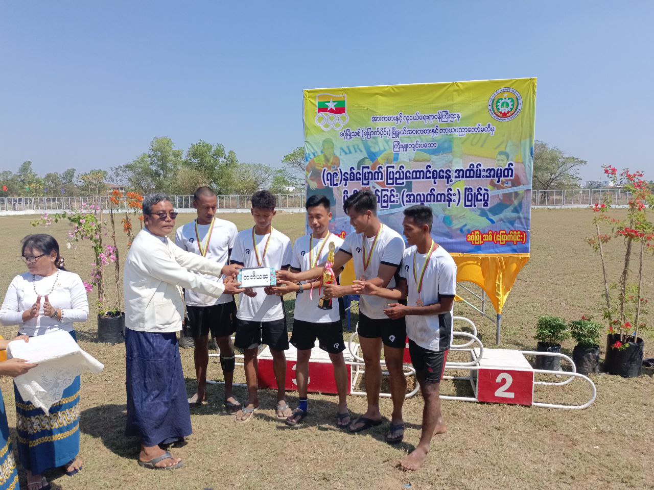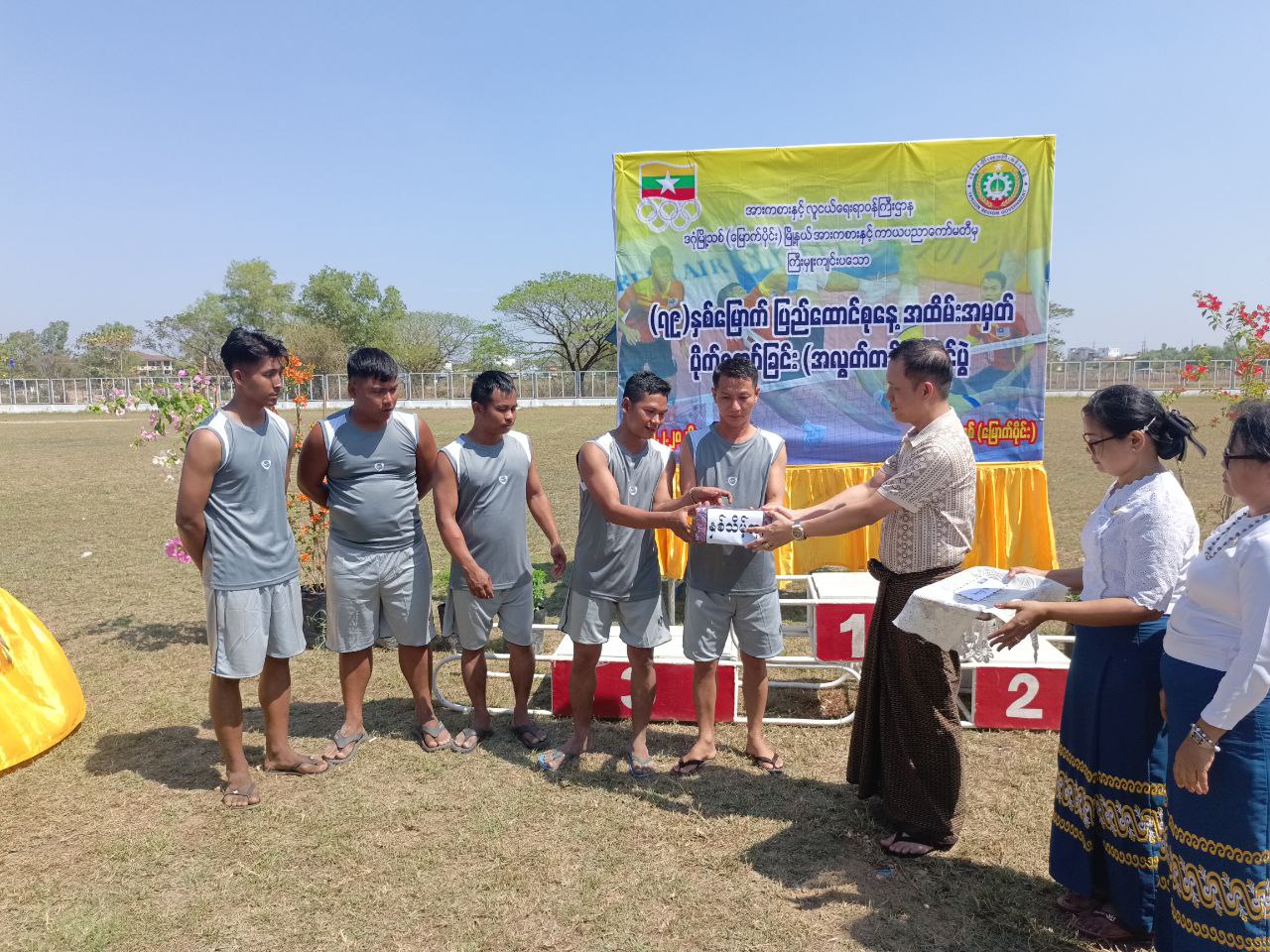 ရှေးဦးစွာ အမျိုးသား(အလွတ်တန်း) ပိုက်ကျော်ခြင်းပြိုင်ပွဲ အသင်း(၆)သင်းမှ ယှဉ်ပြိုင်ကစားကြရာကို ဗိုလ်လုပွဲတွင် မြို့နယ်အားစားနှင့်ကာယပညာဦးစီးဌာနအသင်းနှင့် မြို့နယ်အထွေထွေအုပ်ချုပ်ရေးဦးစီးဌာနအသင်းတို့ ယှဉ်ပြိုင်ကစားကြရာ မြို့နယ်အားစားနှင့်ကာယပညာဦးစီးဌာနအသင်းမှ အနိုင်ရရှိကာ ပထမဆုကို ဆွတ်ခူးရရှိခဲ့သည်။ ဆက်လက်၍ ဆုရရှိသူများအား မြို့နယ်စီမံခန့်ခွဲရေးနှင့်အုပ်ချုပ်ရေး ကော်မတီအဖွဲ့ဝင်များနှင့် တာဝန်ရှိသူများက ဆုတံဆိပ်များနှင့် ငွေသားဆုများ ပေးအပ်ချီးမြှင့်ခဲ့ကြသည်။