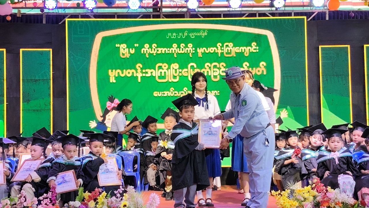 ကရင်ပြည်နယ်၊ မြဝတီခရိုင်၊ မြဝတီမြို့ ပညာရွှေဖူးကိုယ်ပိုင်အလယ်တန်းကျောင်းတွင် ယနေ့နံနက် (၈) အချိန်၌ မြို့မကိုယ့်အားကိုယ်ကိုး မူလတန်းကြိုကျောင်း၏ ၂၀၂၅-၂၀၂၆ပညာသင်နှစ် မူလတန်းပြီးမြောက်ခြင်း လက်မှတ်ပေးအပ်သည့်အခမ်းအနားကိုကျင်းပခဲ့ရာ ခရိုင်စီမံခန့်ခွဲရေးနှင့်အုပ်ချုပ်ရေးကော်မတီ၊ အဖွဲ့ဝင် ၂ ဦးစိန်သောင်း၊ မြို့နယ်စီမံခန့်ခွဲရေးနှင့်အုပ်ချုပ်ရေးကော်မတီဥက္ကဋ္ဌ မြို့နယ်အုပ်ချုပ်ရေးမှူး ဦးဇော်မော်အောင်၊ ခရိုင်ပညာရေးမှူး ဦးစောဝါးလယ်ထူး၊ မြို့နယ်ပညာရေးမှူး ဦးမိုးကျော်၊ မြို့နယ်စည်ပင်သာယာရေးအဖွဲ့ အမှုဆောင်အရာရှိ ဒုတိယညွှန်ကြားရေးမှူး ဦးကျော်ကျော်ဦးနှင့် ခရိုင်အဆင့်ဌာနဆိုင်ရာတာဝန်ရှိသူများနှင့် ပညာရွှေဖူးကိုယ်ပိုင်အလယ်တန်းကျောင်း founder ဦးသန်းရွှေနှင့် ဆရာ၊ဆရာမများ၊ ကျောင်းသား၊ ကျောင်းသူများ၊ ကျောင်းသားမိဘများ၊ ကျောင်းအကျိုးတော်ဆောင်များ တက်ရောက်ခဲ့ကြသည်။
