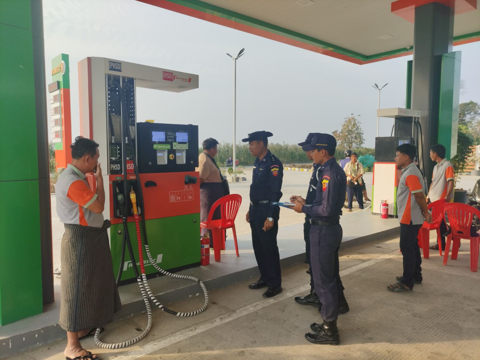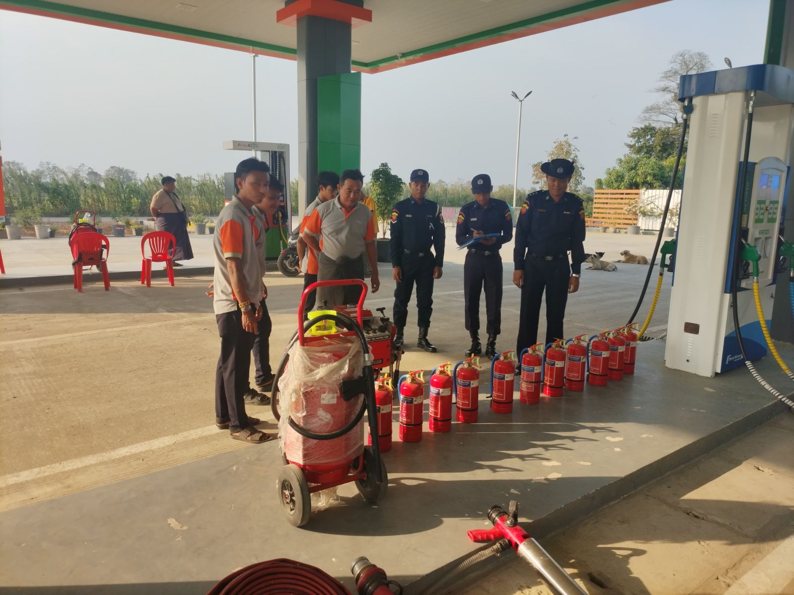 ဧရာဝတီတိုင်းဒေသကြီး၊ မြန်အောင်ခရိုင်၊ အင်္ဂပူမြို့နယ်၊ အောက်ရွာကြီးကျေးရွာအုပ်စု၊ ကြို့ကုန်းကျေးရွာရှိ Power-9 စက်သုံးဆီဆိုင်တွင် မီးဘေးအန္တရာယ် ကြိုတင်ကာကွယ်ရေး ဆောင်ရွက်ထားမှုများကို ယနေ့ နံနက်ပိုင်းက ကွင်းဆင်းစစ်ဆေးခဲ့သည်။