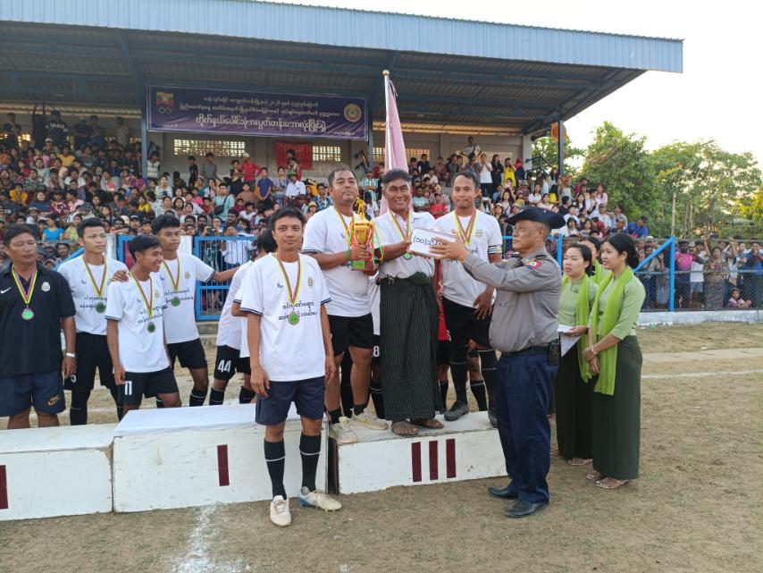 ထို့နောက် ဆုရရှိသည့် အသင်းများအား ဆုချီးမြှင့်ခဲ့ကြရာ ပထမဆုရရှိသည့် အနောက်ပိုင်း FC အသင်းအား ဆုကြေးငွေကျပ် သိန်း ၃၀ နှင့် ဆုဖလားအား မြို့နယ်စီမံခန့်ခွဲရေးနှင့် အုပ်ချုပ်ရေးကော်မတီဥက္ကဋ္ဌ ဦးဘုန်းခန့်အောင်မှ ချီးမြှင့်ခဲ့ပြီး ဒုတိယရရှိခဲ့သော ကမာကလုတ် FC အသင်းအား ဆုကြေးငွေ ကျပ်သိန်း ၂၀ နှင့် ဆုဖလားအား မြို့နယ်စီမံခန့်ခွဲရေးနှင့် အုပ်ချုပ်ရေးကော်မတီအဖွဲ့ဝင် ဗိုလ်မှူး ချမ်းမြေ့ဦးမှလည်ကောင်း တတိယဆုရရှိသည့် ကျုံကန်FC အသင်းအား ဆုကြေးငွေကျပ် သိန်း ၁၀ နှင့် ဆုဖလားအား မြို့နယ်စီမံခန့်ခွဲရေးနှင့် အုပ်ချုပ်ရေးကော်မတီ အဖွဲ့ဝင်ရဲမှူးမင်းဇော်မှလည်းကောင်း တစ်ဦးချင်းအား ကစားထူးချွန်ဆု ရရှိသူများအား မြို့နယ်စီမံခန့်ခွဲရေးနှင့်အုပ်ချုပ်ရေးကော်မတီ အဖွဲ့ဝင်များ၊ ဌာနဆိုင်ရာ တာ၀န်ရှိသူများမှ အသီးသီးချီးမြှင့်ခဲ့ကြကြောင်း သိရသည်။