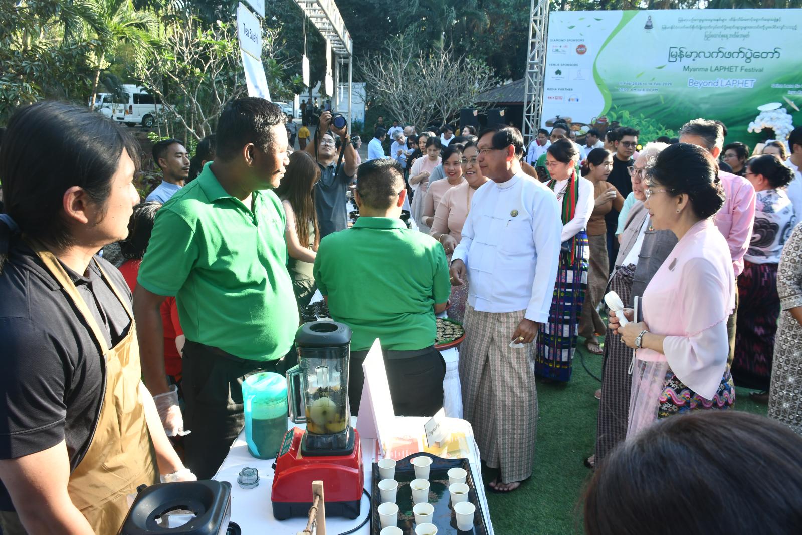 ထိုသို့ ကျင်းပလျက်ရှိရာ ဖေဖော်ဝါရီလ (၁၃)ရက်နေ့ ညနေပိုင်းက Beyond LAPHRT အဖြစ် မြန်မာ့လက်ဖက်စိုဖြင့်တွဲဖက်ပြီး စားသုံးနိုင်သည့် အစားအစားများကို ပြသရာ ရန်ကုန်တိုင်းဒေသကြီး ဝန်ကြီးချုပ် ဦးစိုးသိန်းနှင့် ဇနီး ဒေါ်မော်မော်သန်း၊ တိုင်းဒေသကြီးဝန်ကြီးများနှင့် ၎င်းတို့၏ဇနီးများ၊ မြန်မာနိုင်ငံဆိုင်ရာ သံရုံးများမှ တာဝန်ရှိသူများ၊ မြန်မာ့ယဉ်ကျေးမှု အမွေအနှစ်များထိန်းသိမ်း စောင့်ရှောက်ရေးအဖွဲ့နှင့် မြန်မာနိုင်ငံ လက်ဖက်စိုက်ပျိုးထုတ်လုပ်တင်ပို့ ရောင်းချသူများအသင်းတို့မှ တာဝန်ရှိသူများ၊ ဖိတ်ကြားထားသည့် ဧည့်သည်တော်များနှင့် တာဝန်ရှိသူများ တက်ရောက်ခဲ့ကြသည်။