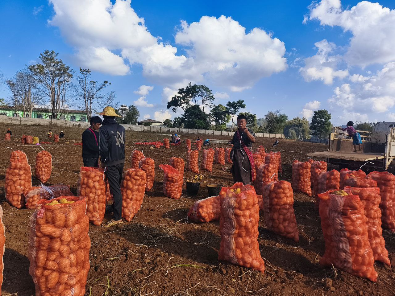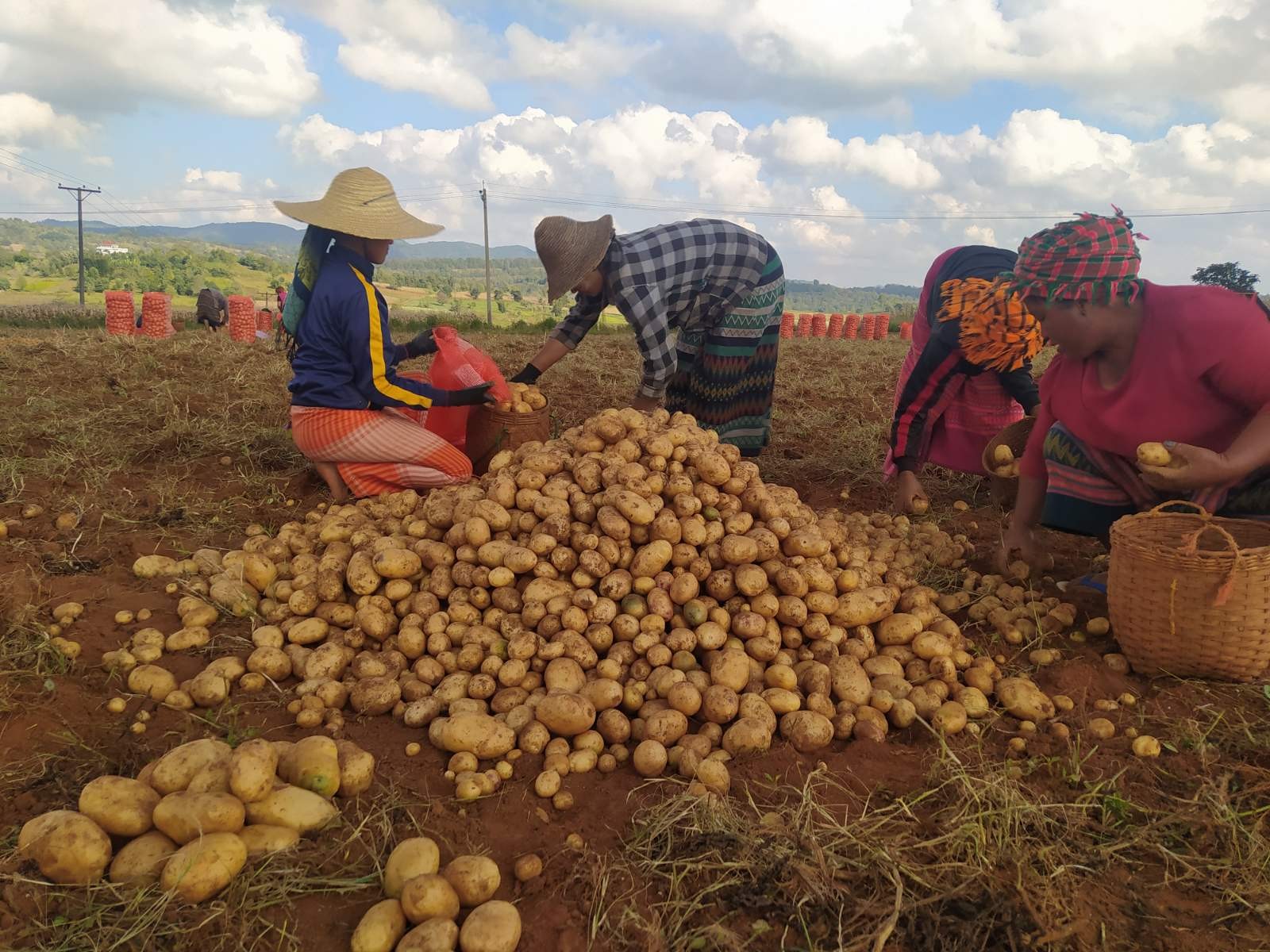 ရှမ်းပြည်နယ်တောင်ပိုင်း၊ ပအိုဝ်းကိုယ်ပိုင်အုပ်ချုပ်ခွင့်ရဒေသ၊ နောင်တရားမြို့အနီး ပတ်ဝန်းကျင်ကျေးရွာများ၌ စက်တင်ဘာလနှင့် အောက်တိုဘာလအတွင်းစိုက်ပျိုးသည့် မိုးနှောင်းအာလူးများကို ဖေဖော်ဝါရီလအတွင်းတွင် တူဖော်လျက်ရှိကြောင်း သိရသည်။
