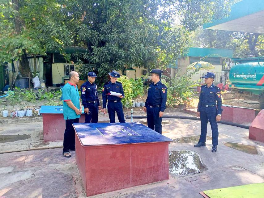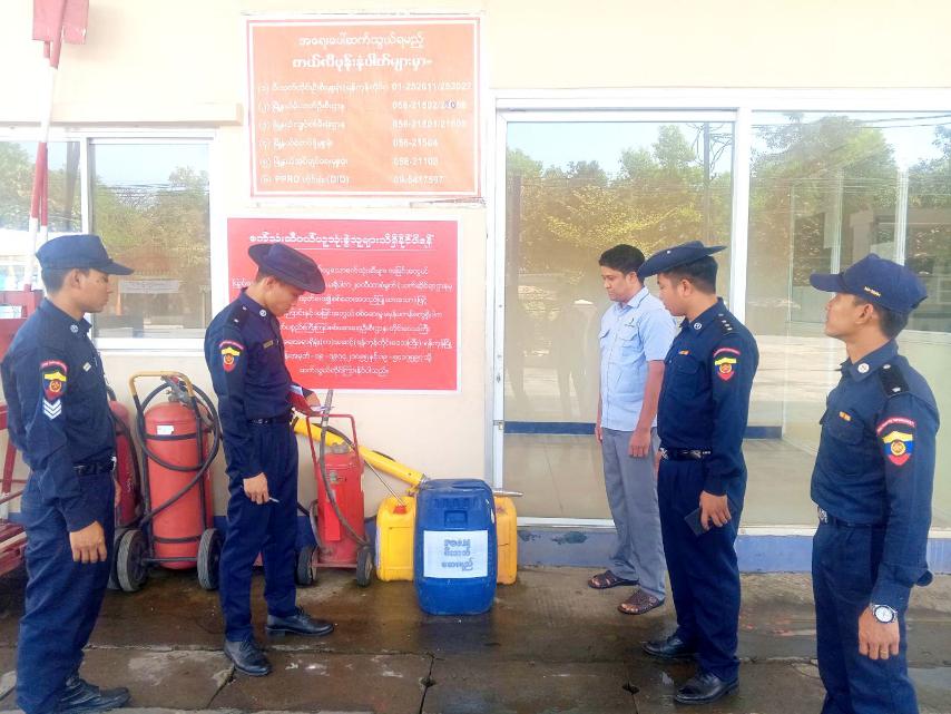 ထိုသို့ စစ်ဆေးရာတွင် စက်သုံးဆီဆိုင်များ၌ မီးသတ်ဆေးဘူးများ ထားရှိမှု၊ ရေ၊ သဲ နှင့် မီးချိပ် မီးကပ်များ စနစ်တကျ ထားရှိမှု၊ အရေးပေါ်မီးလောင်ကြွမ်းမှု ဖြစ်ပွားပါက ဆောင်ရွက်ရမည့် လုပ်ငန်းများကို စက်သုံးဆီအရောင်းဆိုင်များမှ တာဝန်ခံများ၊ ဝန်ထမ်းများအား ရှင်းလင်းဆွေးနွေးမှာကြားသည်။