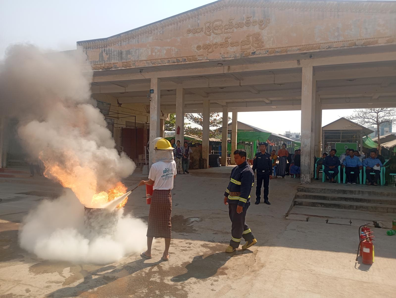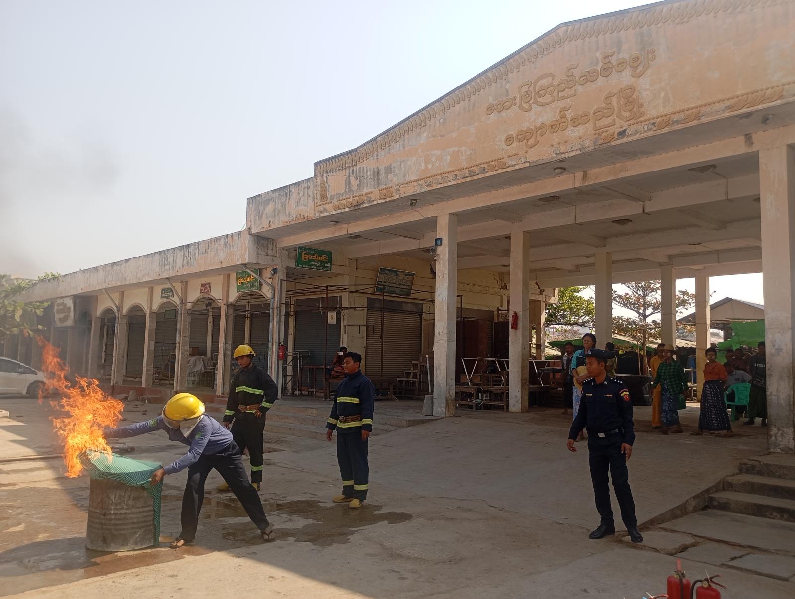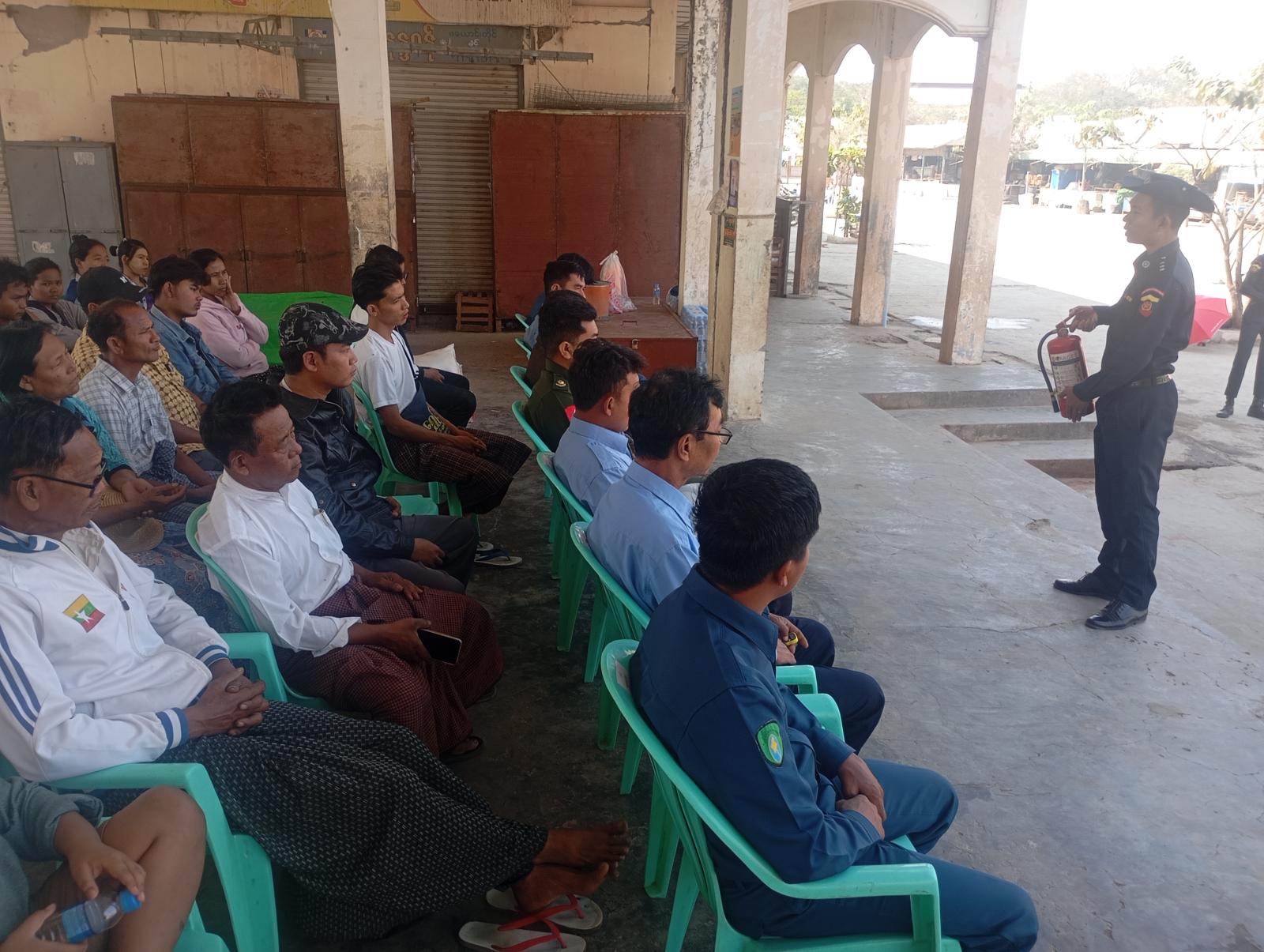 မီးဘေးအန္တရာယ်ကြိုတင်ကာကွယ်ရေး အသိပညာပေးဟောပြောပွဲနှင့် ဇာတ်တိုက်လေ့ကျင့်ပွဲသို့ မြို့နယ်စီမခန့်ခွဲရေးနှင့်အုပ်ချုပ်ရေးကော်မတီဝင်များ၊ မြို့နယ်စည်ပင်သာယာရေးအဖွဲ့မှ တာဝန်ရှိသူ များ၊ မြို့နယ်လျှပ်စစ်မန်နေဂျာရုံးမှ ဝန်ထမ်းများ၊ ဈေးကော်မတီဝင်များ၊ ဈေးသူ/ဈေးသားများ တက် ရောက်ခဲ့ကြောင်း သိရသည်။
