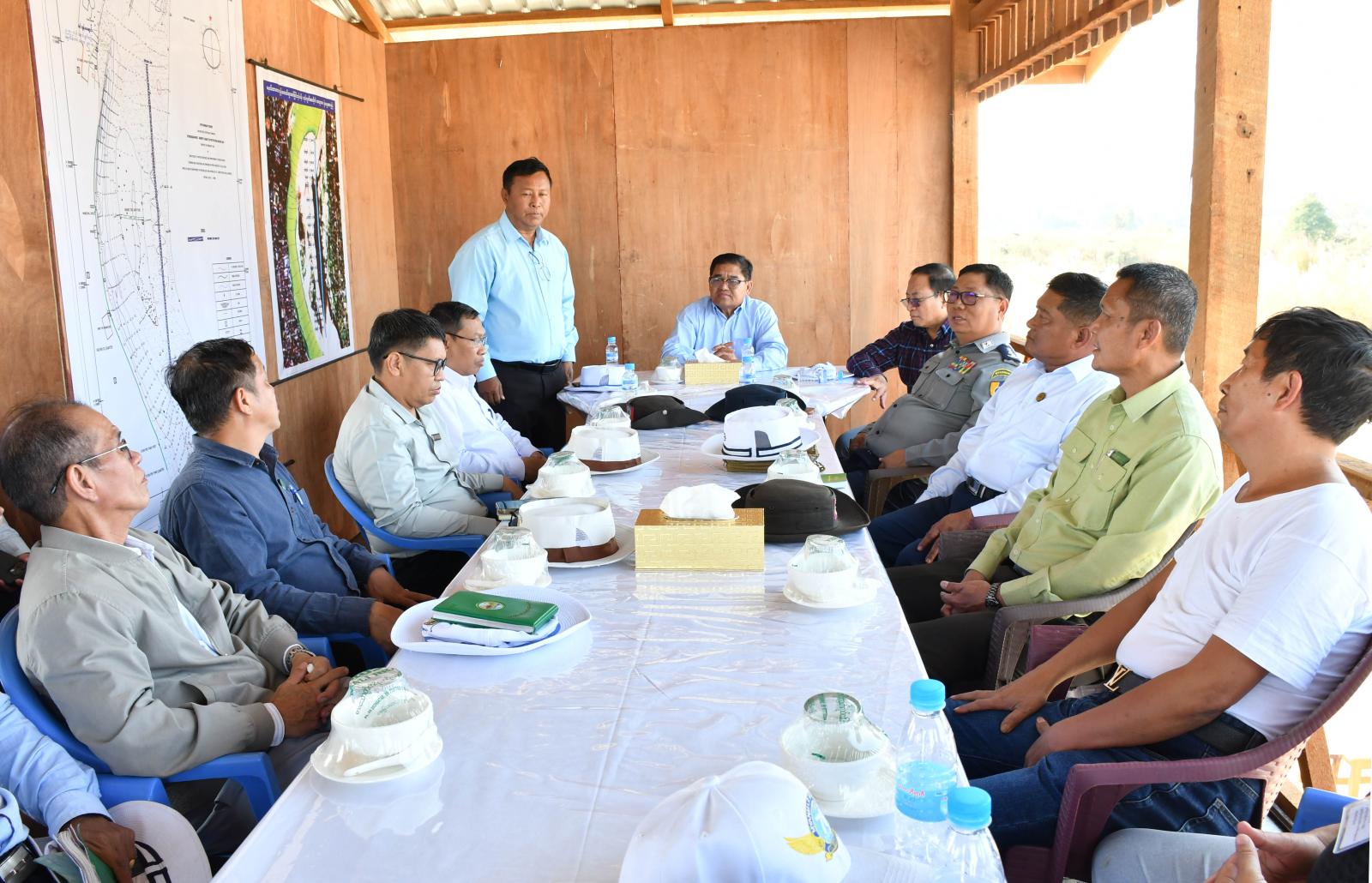 ဆက်လက်၍ တက်ရောက်လာကြသည့် သောင်တူးဖော်ခြင်းလုပ်ငန်းဆောင်ရွက်မည့် ဒေသခံလုပ်ငန်းရှင်များက သောင်တူးဖော်ခြင်းအတွက် လုပ်ငန်းအစီအမံများနှင့် လိုအပ်ချက်များကို တင်ပြကြရာ ပြည်နယ်ဝန်ကြီးများနှင့် ပြည်နယ်အဆင့်ဌာနဆိုင်ရာများက ဖြည့်စွက်သုံးသပ်ရှင်းလင်းဆွေးနွေးပေးကြပြီး ပြည်နယ်ဝန်ကြီးချုပ်က ဧရာဝတီမြစ်ရေကြီးရေလျှံမှုမှ ကာကွယ်ရေးဆောင်ရွက်သည့် လုပ်ငန်းဖြစ်ပြီး ယခုလို ဒေသခံလုပ်ငန်းရှင်များမှ ပူးပေါင်းပါဝင်ဆောင်ရွက်မှုကို ကျေးဇူးတင်ရှိပါကြောင်း၊ သို့သော် လုပ်ငန်းများဆောင်ရွက်ရာတွင် သတ်မှတ်ချက်ပုံစံ၊ သတ်မှတ်ဒီဇိုင်း၊ စည်းမျဉ်း စည်းကမ်းများနှင့်အညီ တူးဖော်ရှင်းလင်းနိုင်ရေးနှင့် လိုအပ်သည်များကို သက်ဆိုင်ရာတာဝန်ရှိသူများနှင့် ပေါင်းစပ်ညှိနှိုင်းဆောင်ရွက်ပေးခဲ့ကြောင်း သိရသည်။