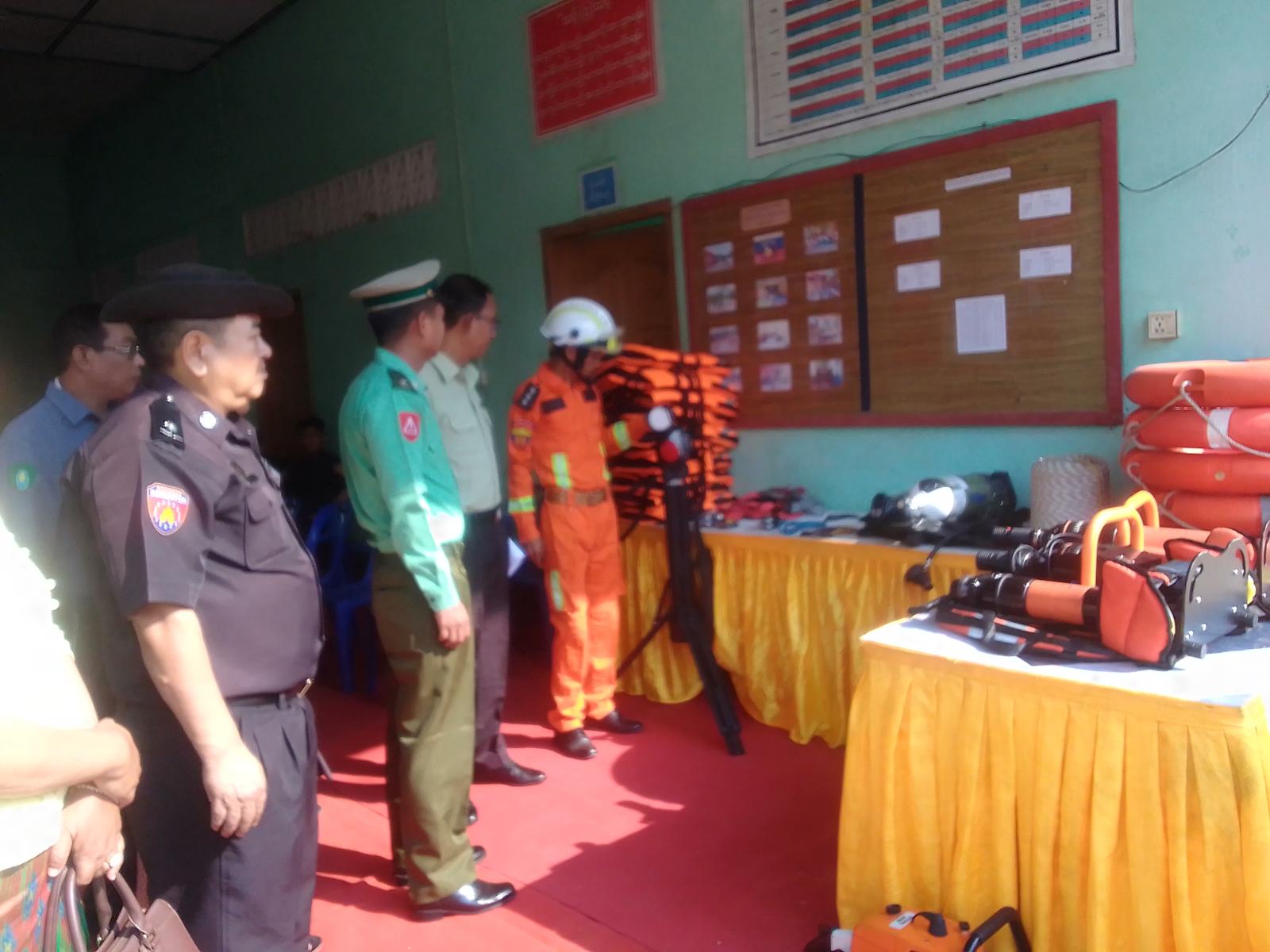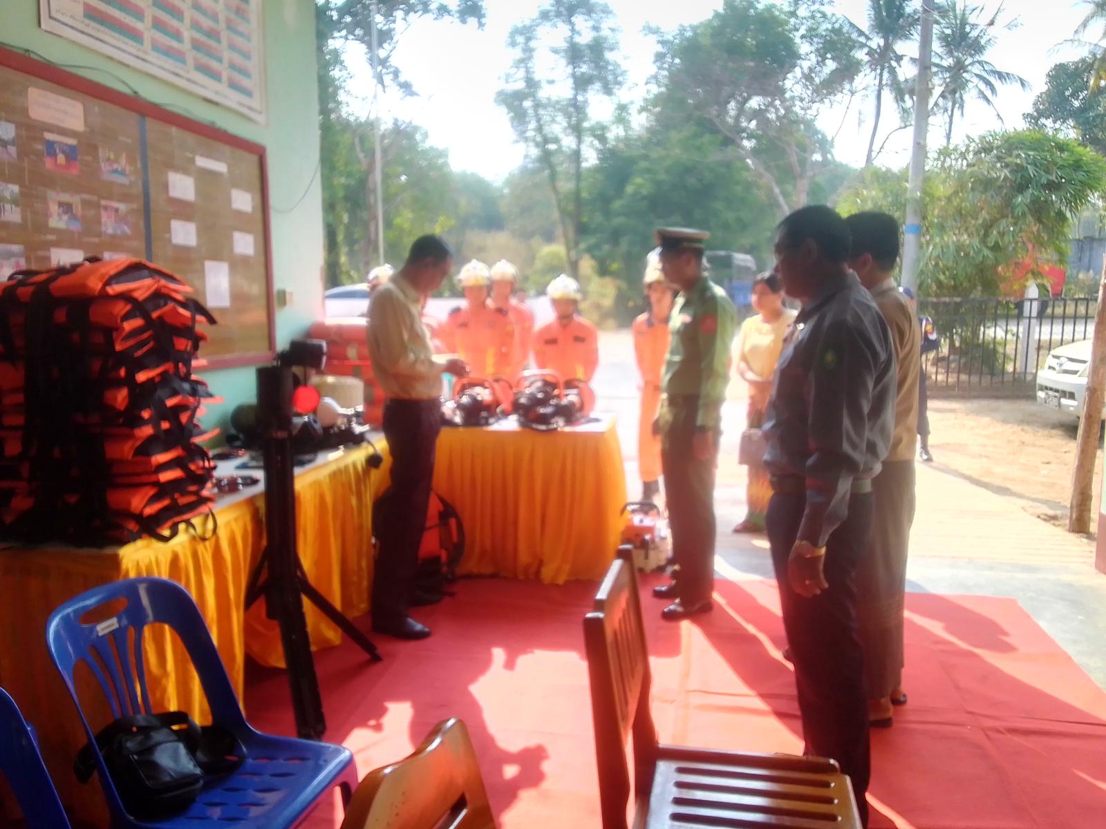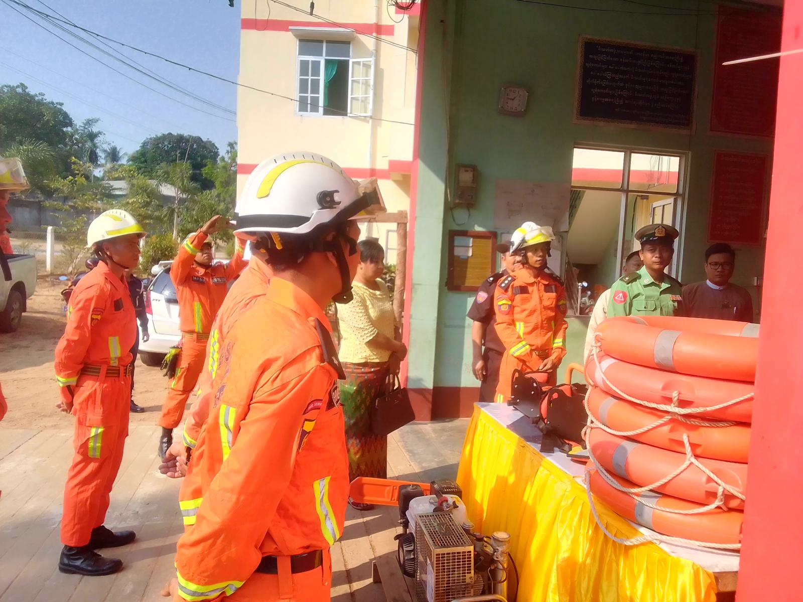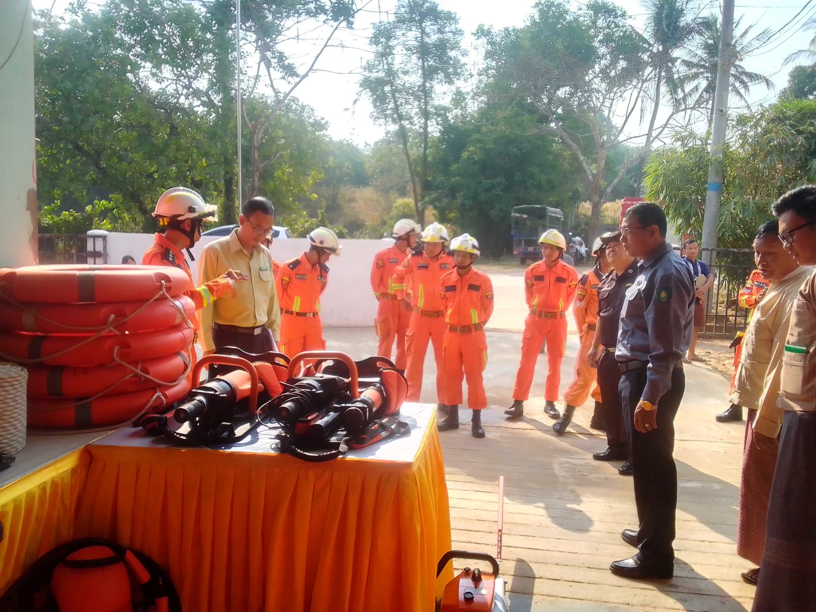 ထို့နောက် လောင်းလုံးမြို့နယ် မီးသတ်ဦးစီးဌာနမှ ဦးစီးအရာရှိ ဦးအောင်အောင်ဦးက သင်တန်းကျင်းပရခြင်း၏ ရည်ရွယ်ချက်အား ရှင်းလင်းပြောကြားပြီး စက်လှေရေယာဉ်တွင် ပါဝင်သည့် ပစ္စည်းအမျိုးအစားနှင့် တပ်ဆင်အသုံးပြုပုံအဆင့်ဆင့်များကို ခင်းကျင်းပြသမှုအား က်ရောက်လာကြသည့် တာဝန်ရှိသူများက ကြည့်ရှုအားပေးခဲ့သည်။