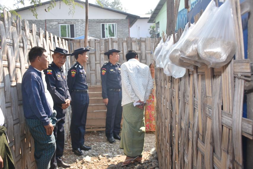 ထိုသို့ တစ်အိမ်တက်ဆင်း စစ်ဆေးရာတွင် ပြည်ကြီးတံခွန်မြို့နယ်၊ သင်းပန်းကုန်းရပ်ကွက်၌ ပြည်ကြီးတံခွန်မြို့နယ် မီးသတ်ဦးစီးမှူး ဦးကျော်ကျော်ဦး ဦးဆောင်၍ တစ်အိမ်တက်ဆင်း မီးဘေးလုံခြုံရေးစစ်ဆေးခြင်းနှင့် 191 Report application ကို ပြည်သူများ အသုံးပြုရေး ကွင်းဆင်းထည့်သွင်းပေးခြင်းများကို တိုင်းဒေသကြီး မီးသတ်ဦးစီးမှူး ညွှန်ကြားရေးမှူး ဦးဇော်ဝင်းထွန်းမှ လိုက်လံကြည့်ရှုစစ်ဆေးခဲ့သည်။