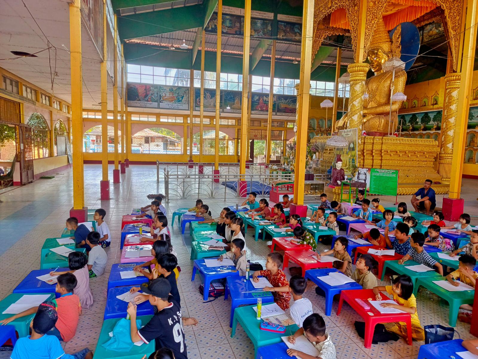 မွန်ပြည်နယ်၊ သထုံမြို့၊ သိမ်ကုန်းရပ်ကွက်ရှိ ကြေးသွန်းဘုရား၀င်းအတွင်း၌ ကျောင်းသား/ကျောင်းသူများ နွေရာသီကျောင်းပိတ်ရက်၌ အချိန်ကိုအကျိုးရှိစွာ အသုံးချနိုင်ရေး အခြေခံပန်းချီရေးဆွဲနည်းနှင့် ဂီတသင်တန်းတို့ကို ယမန်နေ့ မွန်းလွဲပိုင်းက စတင်ကာ အခမဲ့ဖွင့်လှစ်သင်ကြားပေးလျက်ရှိကြောင်း သိရသည်။
