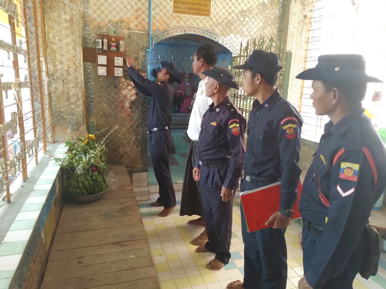 ဆက်လက်ပြီး ရွှေစာရံဘုရားပတ်ဝန်းကျင်ရှိ လူနေအိမ်များအား မီးဘေးကြိုတင်ကာကွယ်ရေး တစ်အိမ်တက်ဆင်း စစ်ဆေးဆောင်ရွက်ခဲ့ကြောင်း သိရှိရသည်။